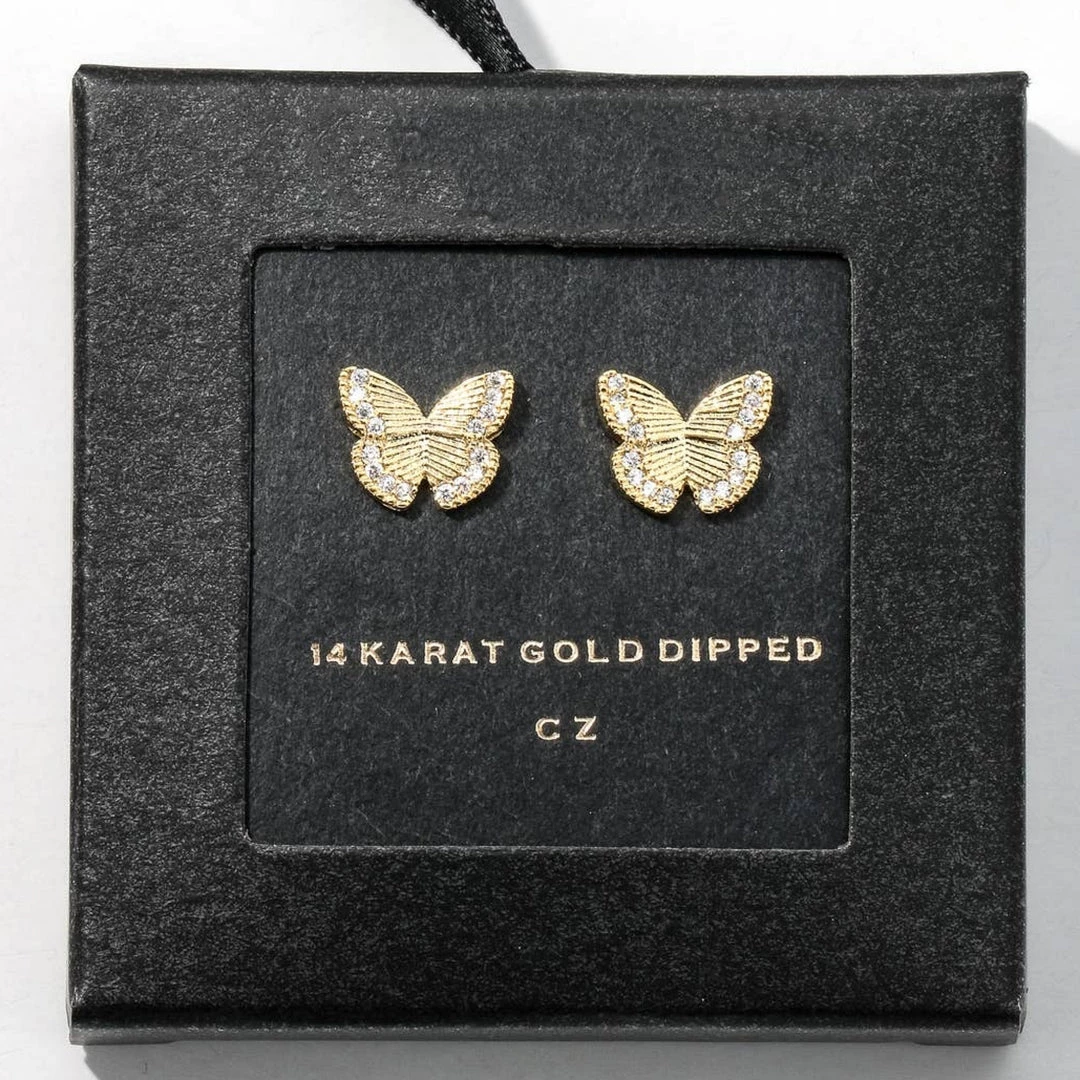 14 karat gold dipped. Earrings approximately 1/2 cm. In need of great accessories? Take a moment to shop our bold collection of necklaces, earrings, bracelets and accessories. Not sure what to wear to your next engagement? Then grab your little black dress and top it off with a pop of jewelry. Truly timeless classic pieces will never go out of style. Great looks to add color or flash to a solid color dress or outfit. Be Bold. Be Beautiful with your favorite item of jewelry from Social Butterfly Collection. Ships from Houston, Texas by Socialbutterflycollection.com