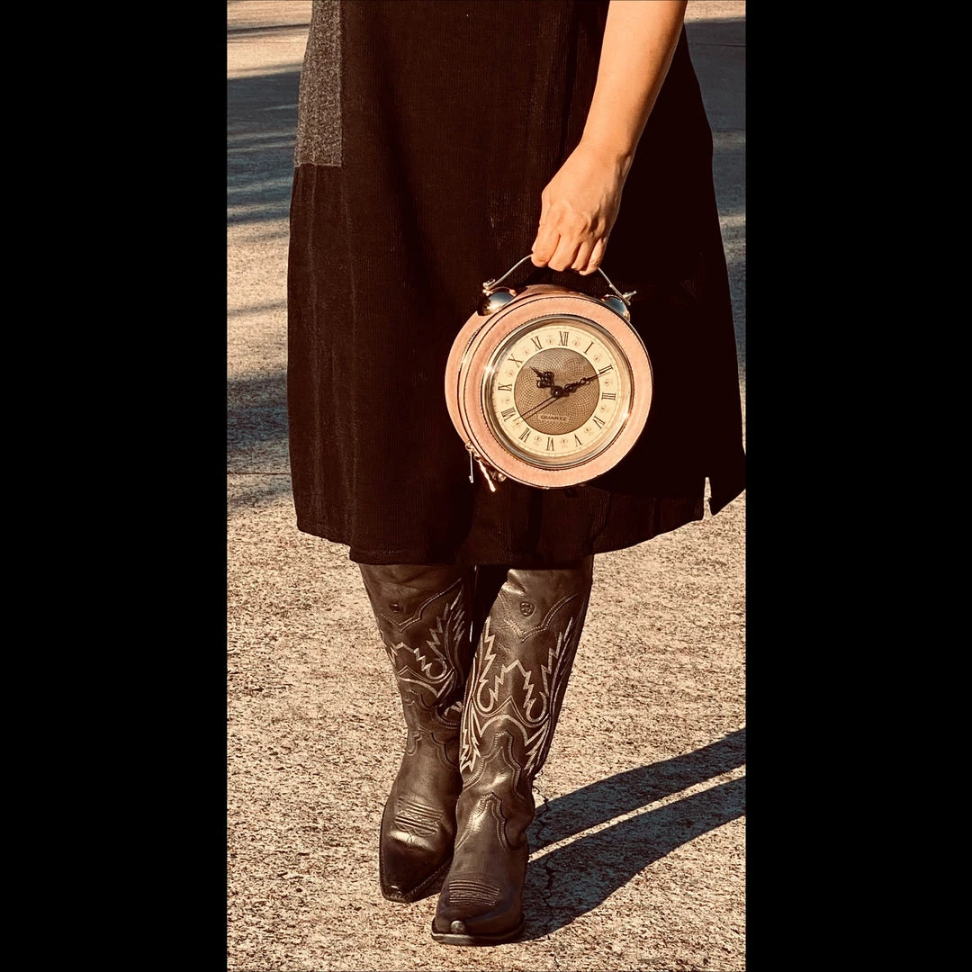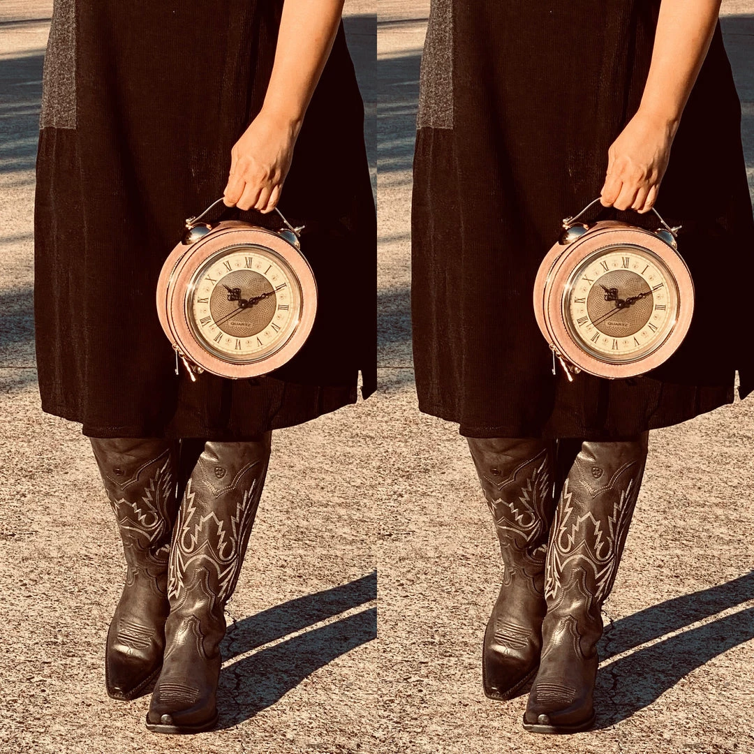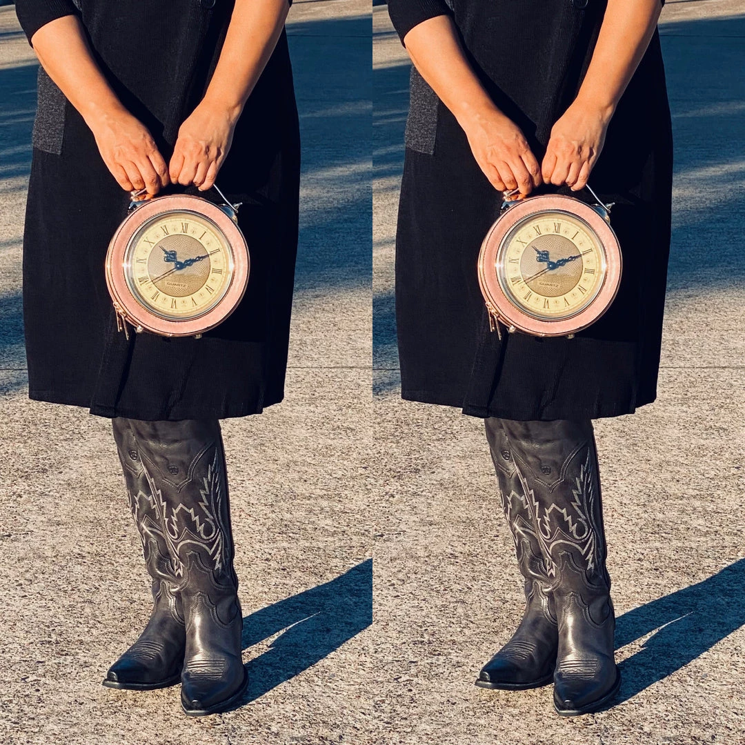 Pink Retro Style Clock Handbag