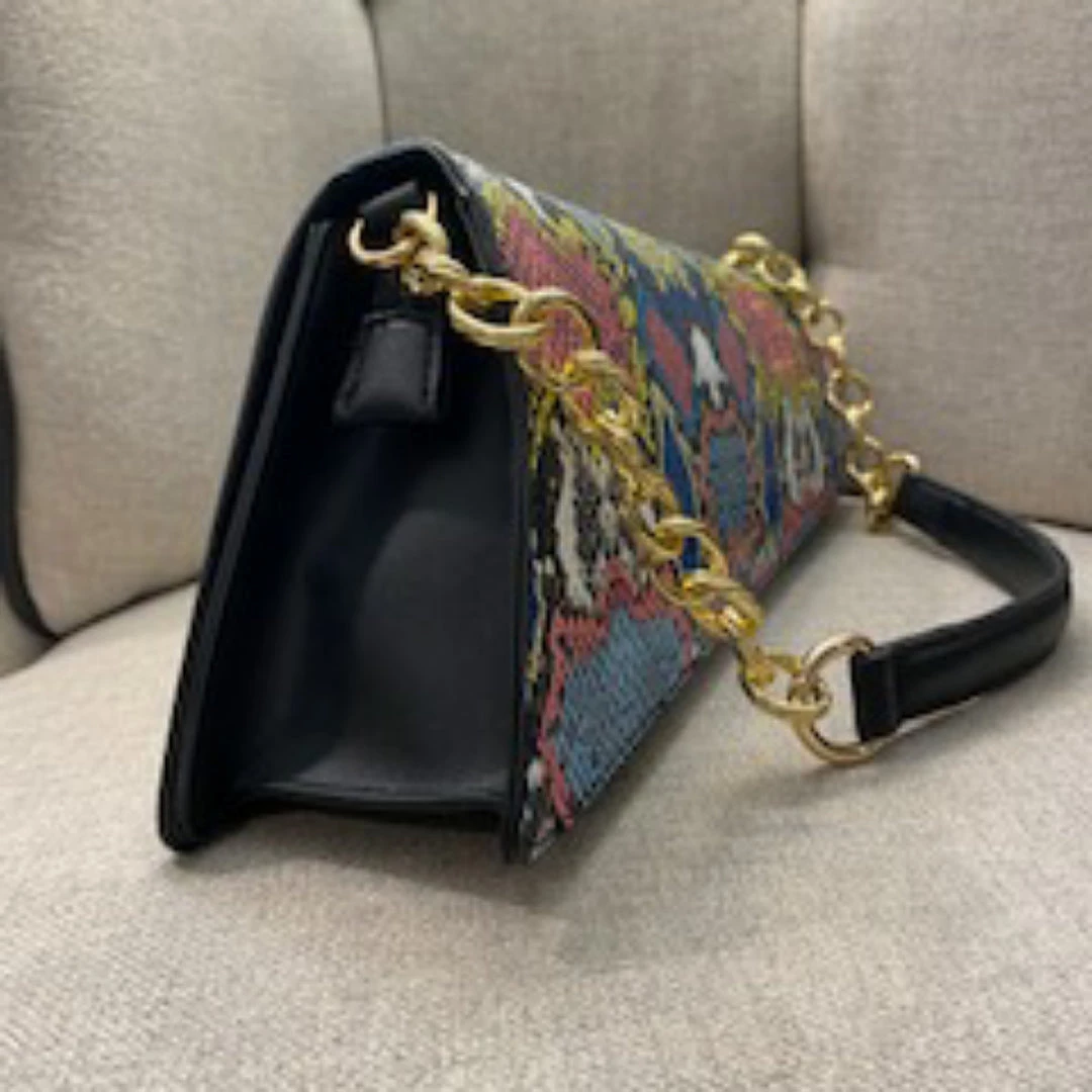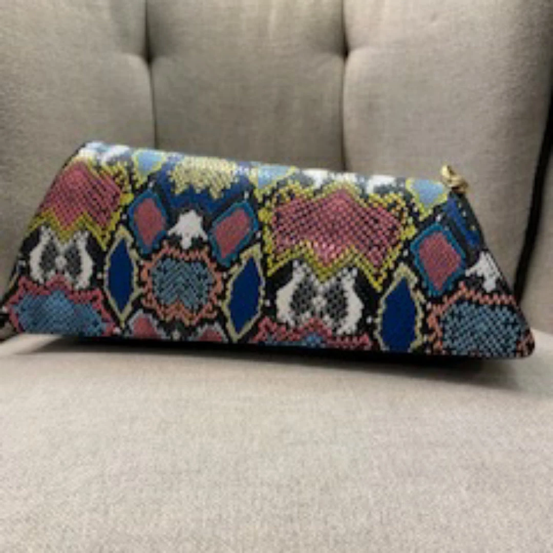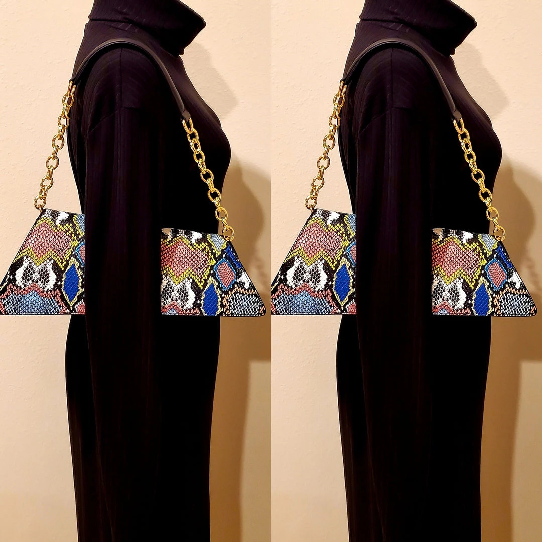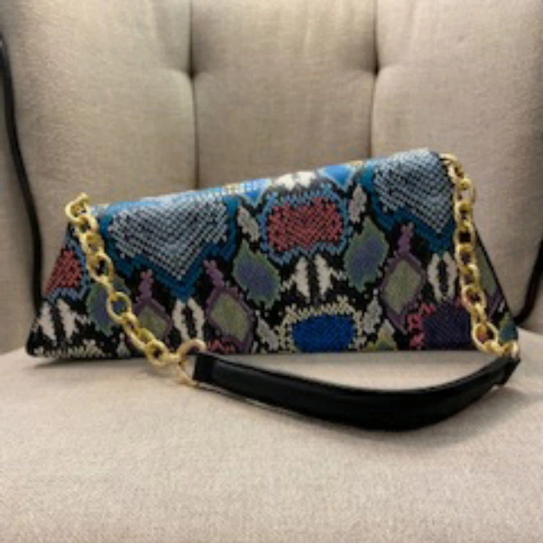 Our rich asymmetric faux leather snake detail blue multi color handbag is must have when the occasion calls for exquisite style. Take a moment to shop our bold collection of handbags, a truly timeless classic pieces will never go out of style. Great look to add color or flash to a solid color dress or outfit. Be Bold. Be Beautiful with your favorite item of accessory from Social Butterfly Collection. Ships from Houston, Texas by Socialbutterflycollection.com
