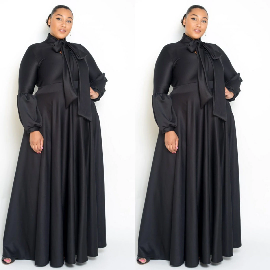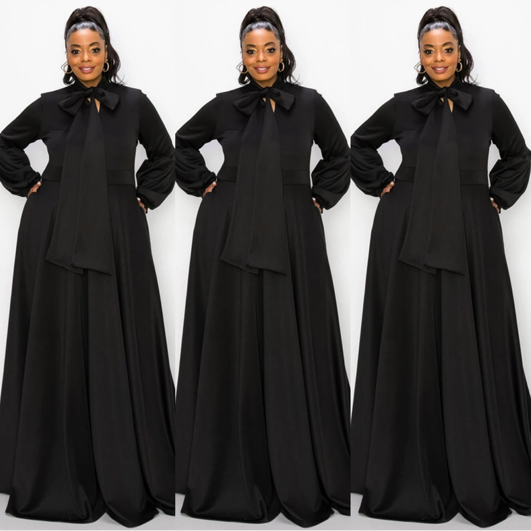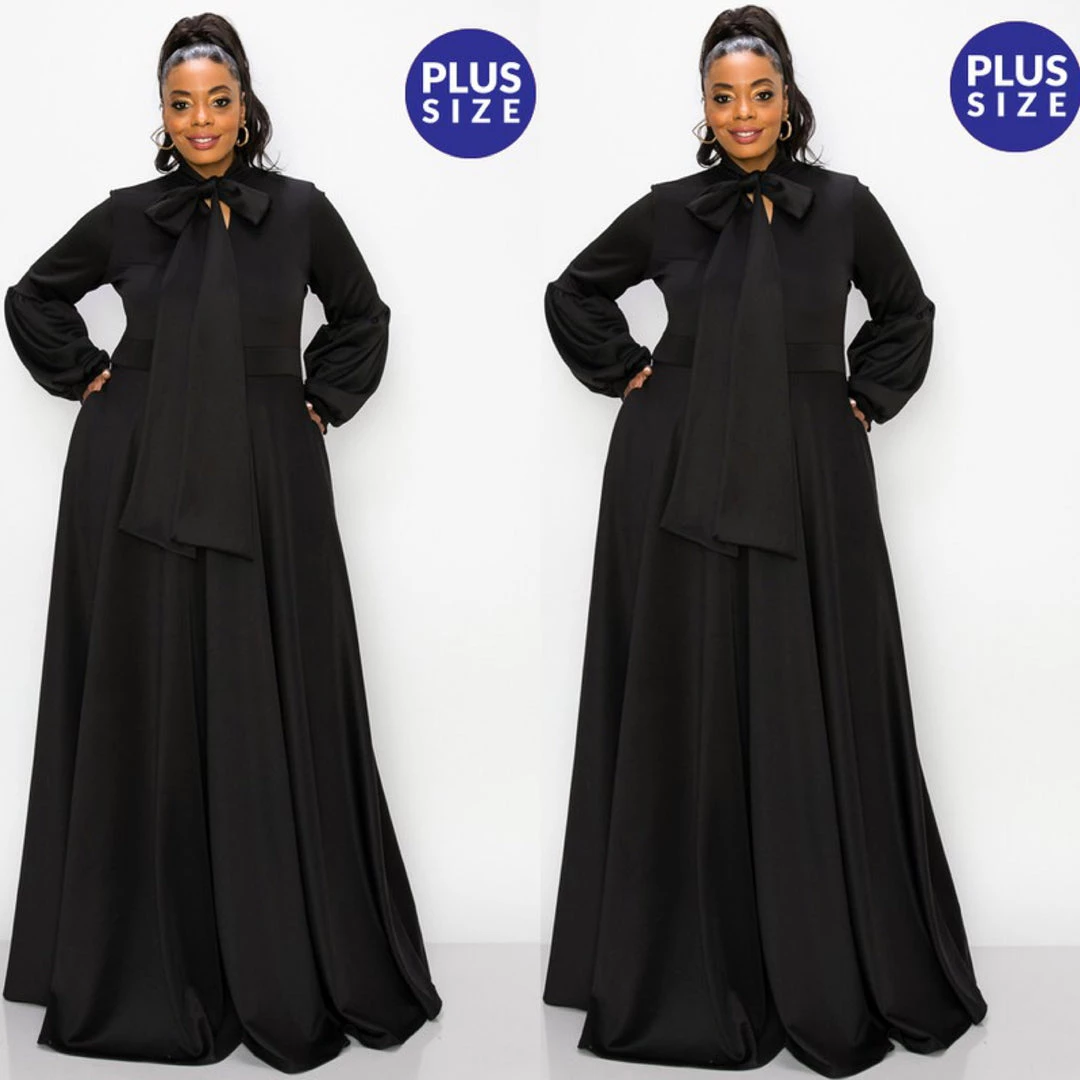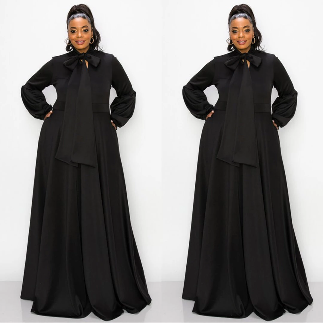 This classic, high necktie style paired with the long, silhouette style gives you a modest and beautiful choice for your special occasion wear. The long, tapered tie on the front adds a touch of class, while the fit brings just the right amount of sophistication to this incredible dress. Dress runs true to size and the fabric is a stretchy blend of polyester and spandex. Perfect dress for a variety of events. Fabric is perfect medium weight and the dress has hidden side pockets. Bottom of the dress has plenty of room and is generous in sizing. Top of the dress is more fitted than the bottom, so when selecting size for this one, it would be best to choose size based on your top body size or bust and arms. Material does have stretch. If you are top heavy and need more room for your arms, stomach or bust then we suggest going up a size but other than that the dress is true to size and fits well. The bottom of the dress is very loose. Ships from Houston, Texas by Social Butterfly Collection.