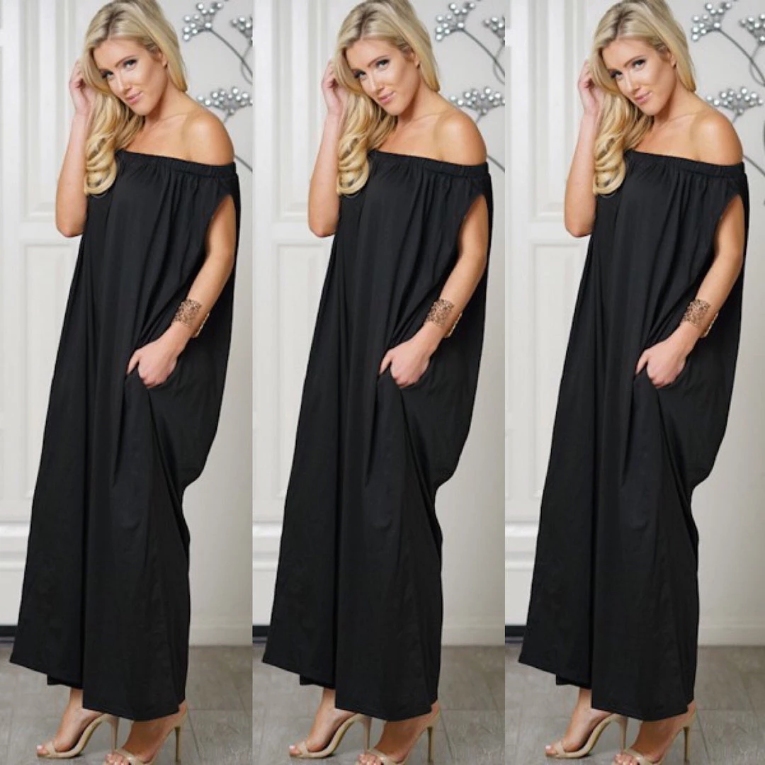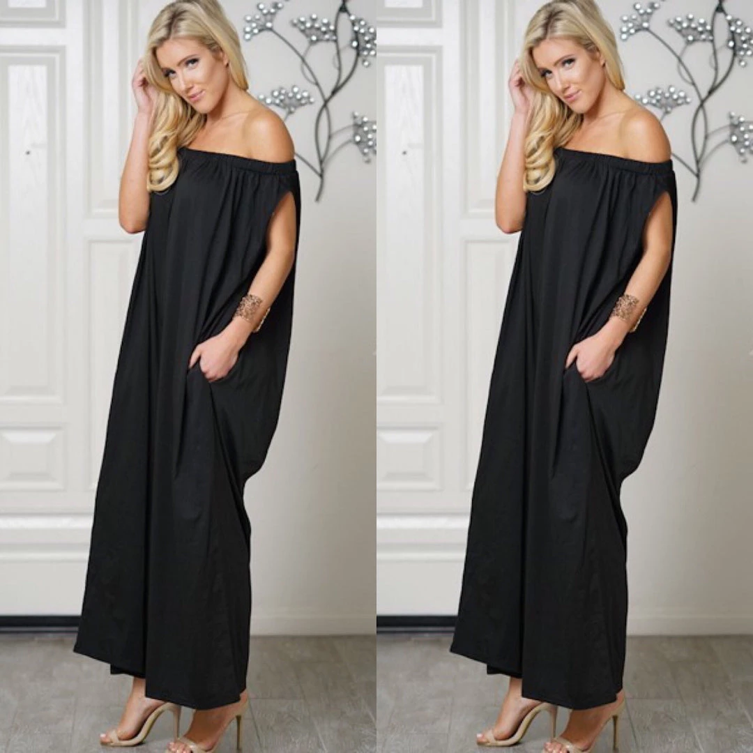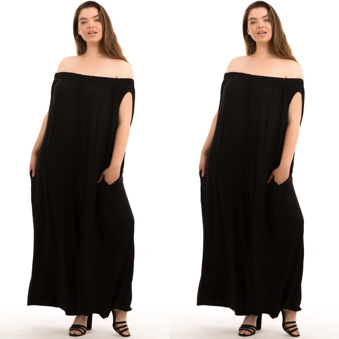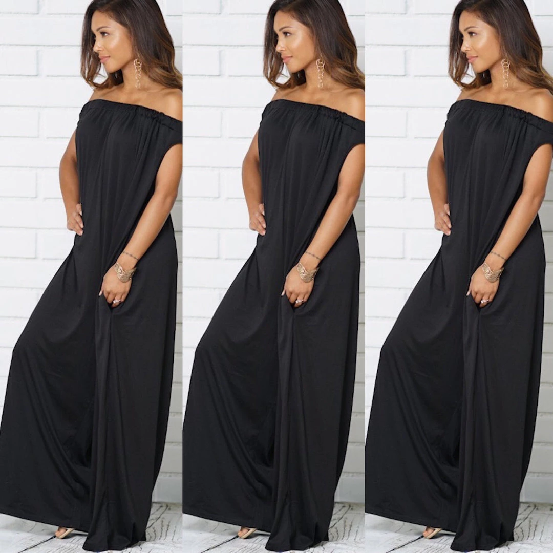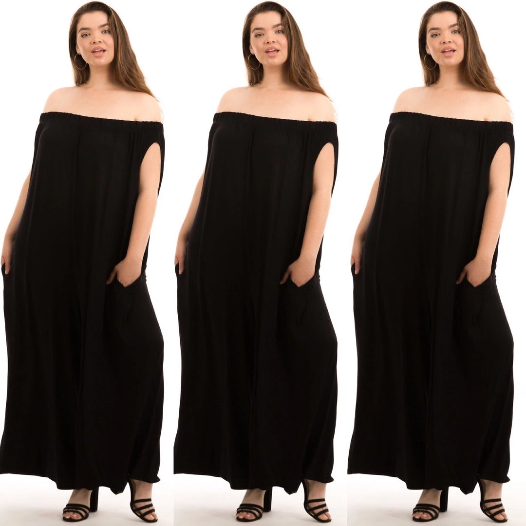 Add a little sexy attitude to your favorite new look. Try this black off the shoulder jumpsuit. Just buy, try and you will love testing out this fabulous look. Fabric is rayon, polyester and spandex with stretch and flow that wears, looks and feels like perfect weight cotton. Add a belt for a little flirty fun or to cinch in the waist more. Body of the jumpsuit is boho loose fit and style. Very cool and comfy yet stylish and chic. Measures 48 inches long top to bottom with a 24 inch inseam.