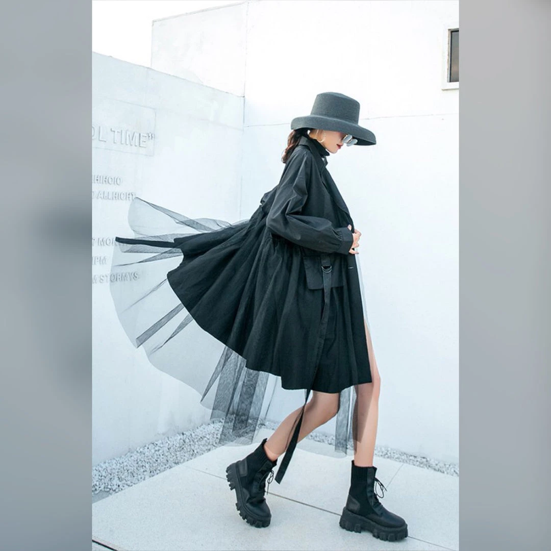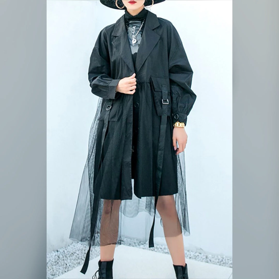 If you love the vintage look and want a sheer style, then the best possible choice would be this little jacket with blacks tulle detailing. For a night out on the town with a sheath dress underneath or worn over jeans or leggings. This jacket top works perfectly to add some chicness and edge to any outfit. This gorgeous piece falls well below the knee and fabric is a sheer tulle polyester We suggest ordering your exact size because this runs true to size with loose loose fit and flow. Oversized xlarge pockets give a shabby chic look and feel. Ships from Houston, Texas by Social Butterfly Collection.