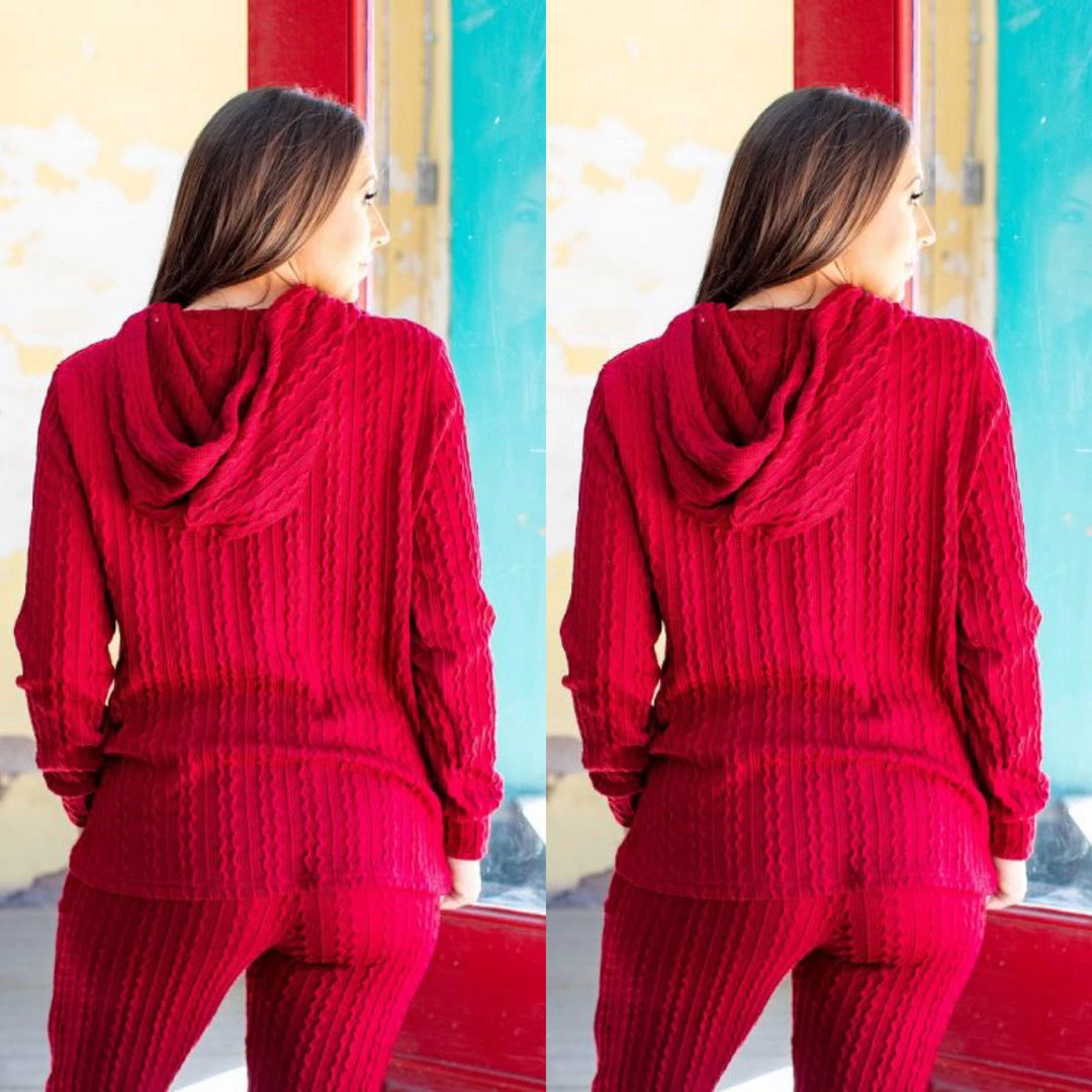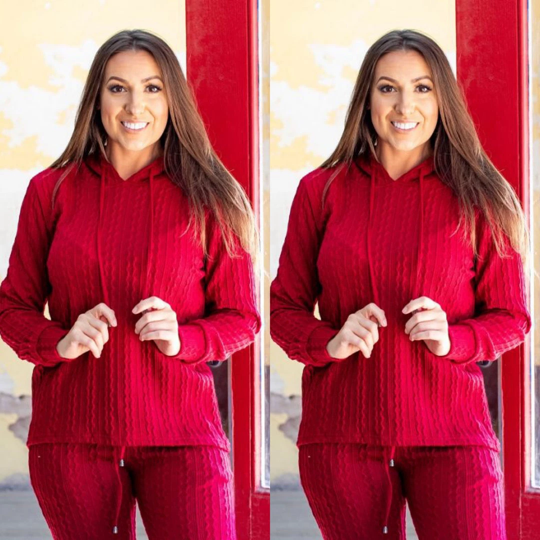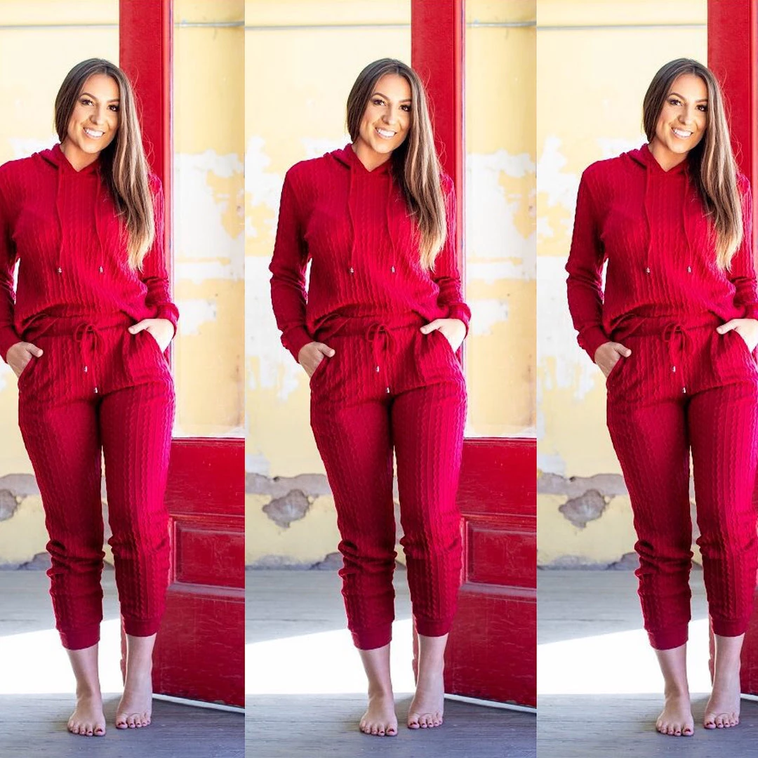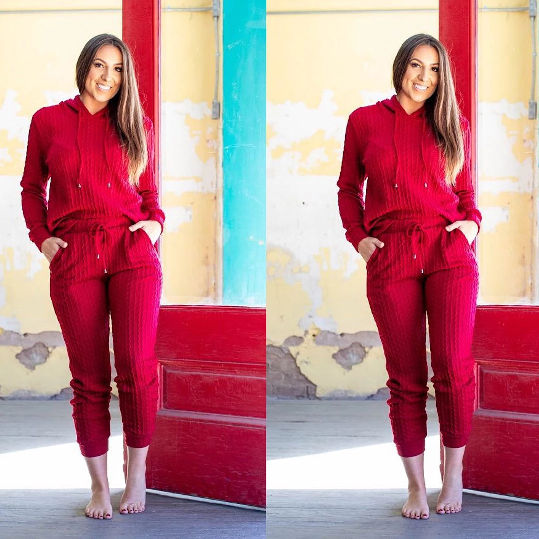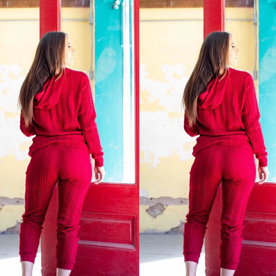 The red is a deep dark burgundy red wine color. Add some comfort to your everyday outfit; wear this two piece red wine pant set and go from ordinary to cute comfy fashion. With casual simplicity. This is a two piece matching pant and top set. Fabric is the perfect knit weight to wear for the fall and the material has spandex for stretch. This is the perfect outfit to look cute and comfy with a hint of sexy. Waistline has great stretch. Fits true to size with a luxurious knit feel to the fabric. Looks great worn together as a set or worn separately. Ships from Houston, Texas by Social Butterfly Collection.