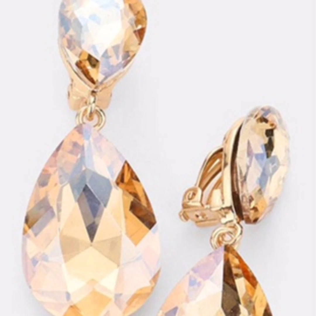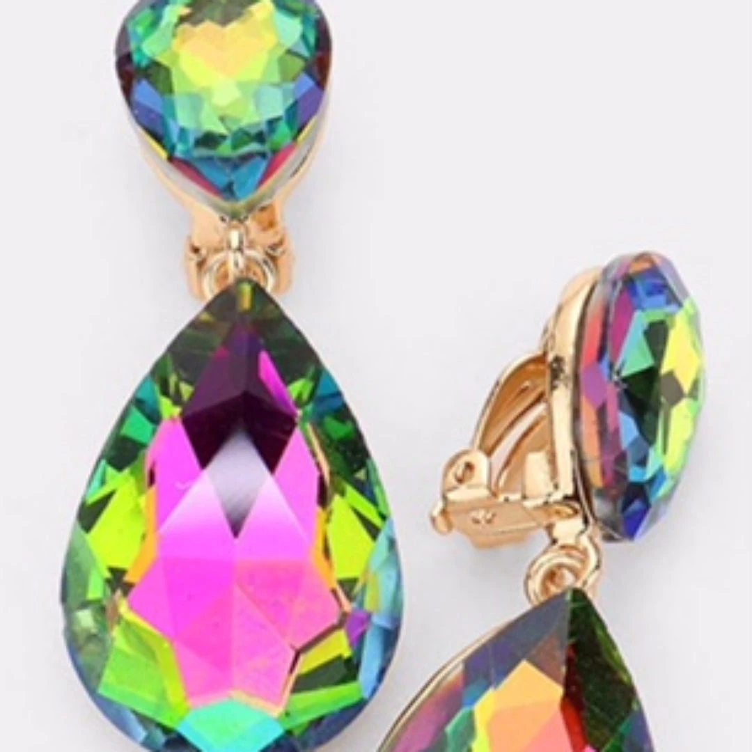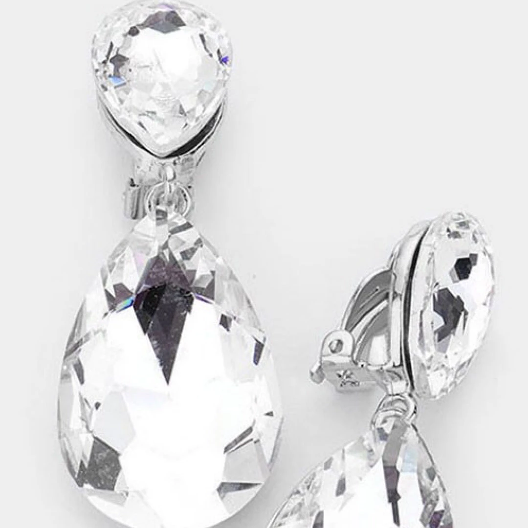 Social Butterfly Collection Clip On Crystal Tear Drop Earrings