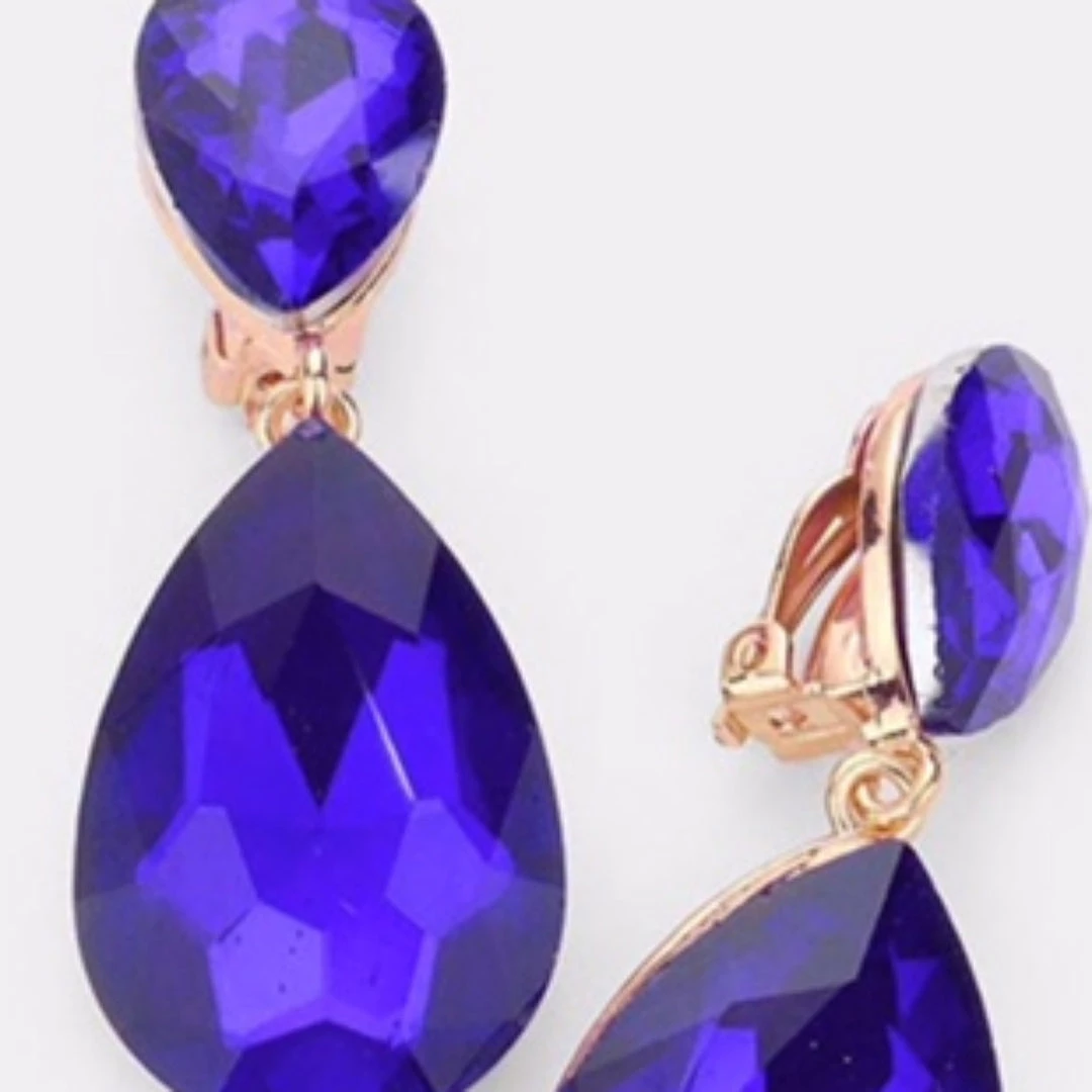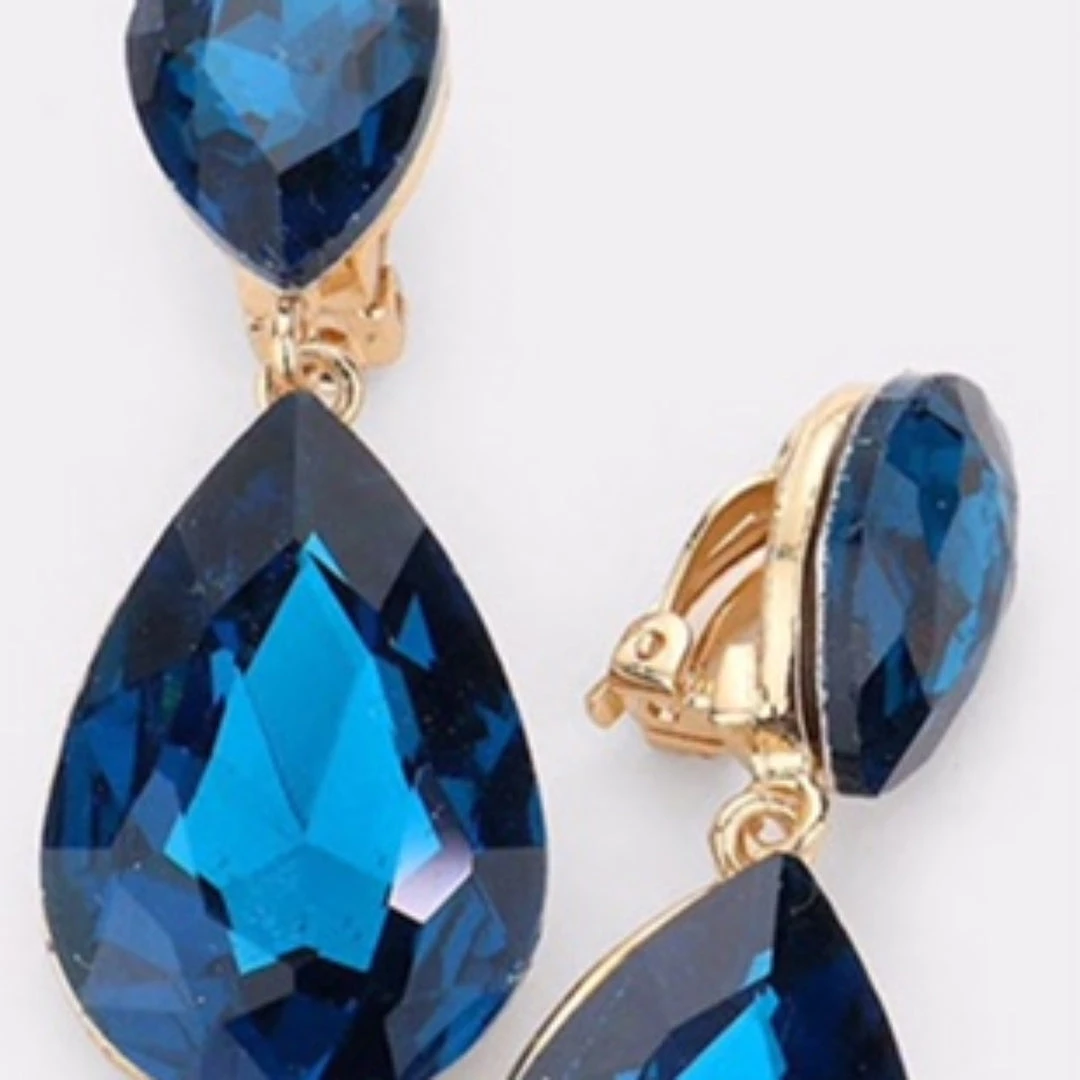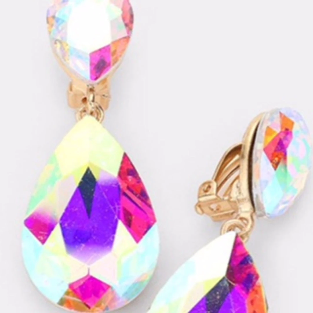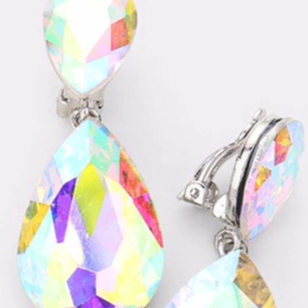 Social Butterfly Collection Clip On Crystal Tear Drop Earrings