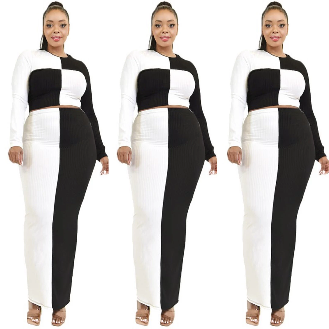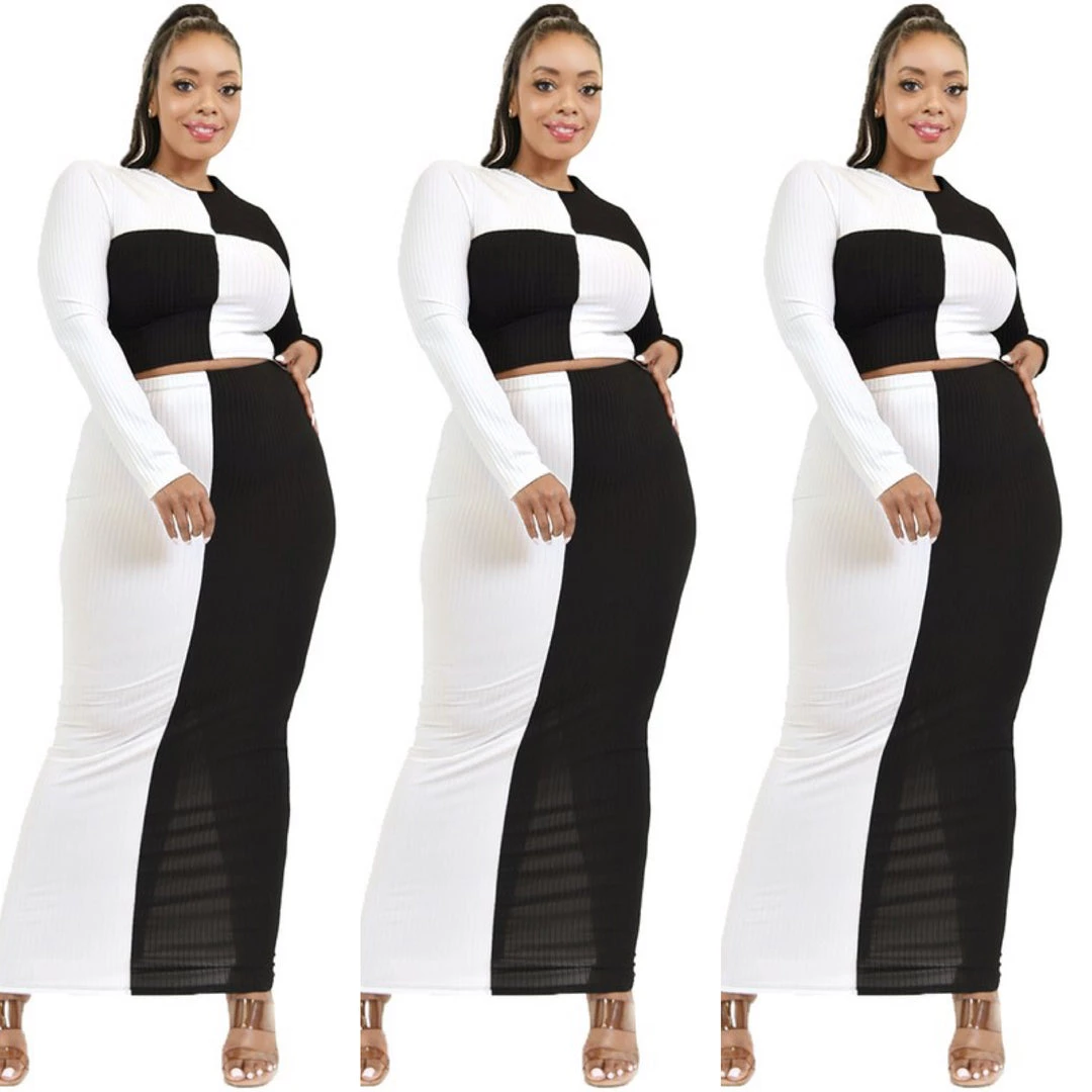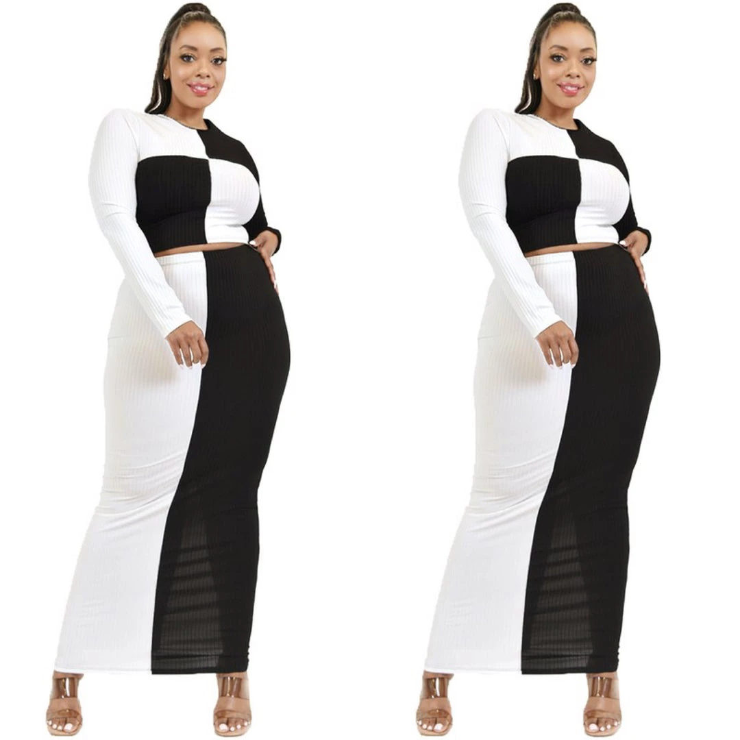 Black stretchy two piece set with cropped top and long sleeves. Cotton stretchy fabric with textured ribbing. No need to worry if it will fit because it does stretch very well all over. Soft and comfy fit with nice long skirt. The sleeves and all over fabric will stretch to fit. Also, please keep in mind that this is designed to be form fitting and it will hug your curves. The texture and ribbing are a great effect because it helps to camouflage cellulite or natural body appearances. The skirt is very long and you can pull it high up on the waist or stomach if you want to keep from having skin show since the top is short crop top. This outfit is super super cute on. Worth a try. Ships from Houston, Texas by Social Butterfly Collection