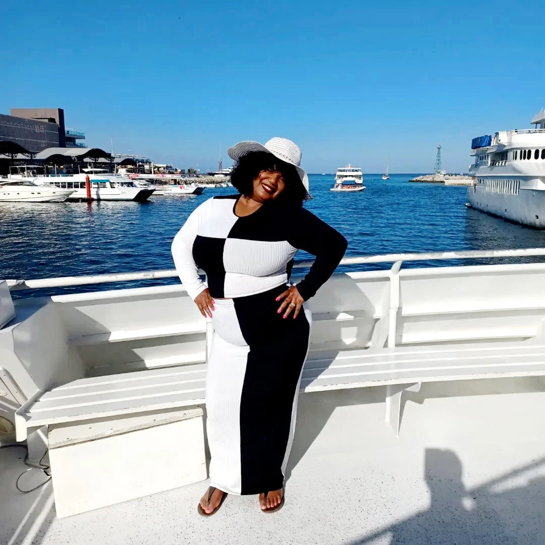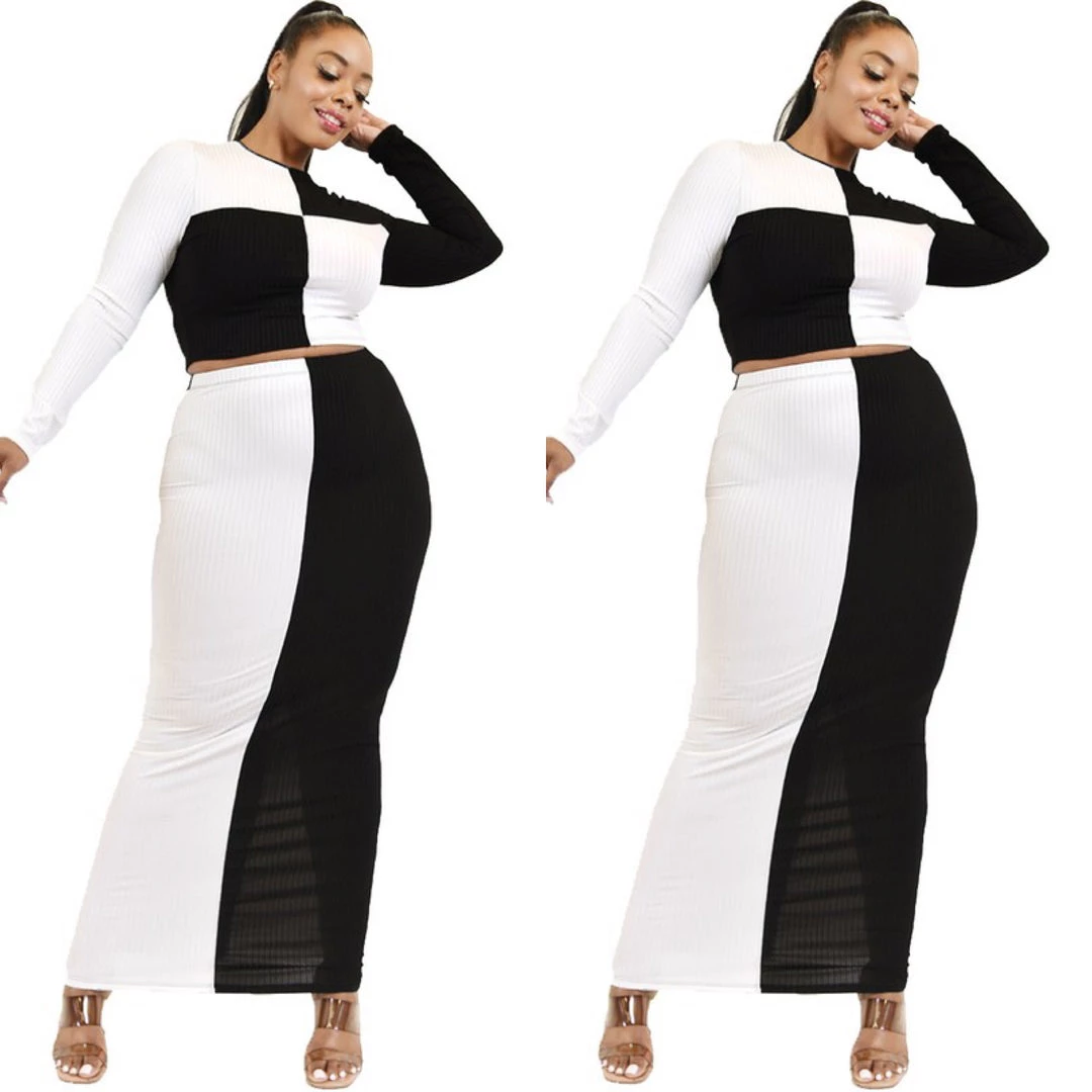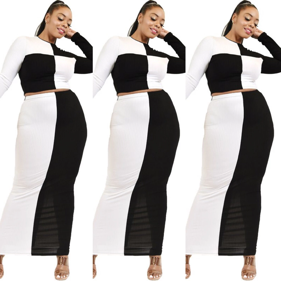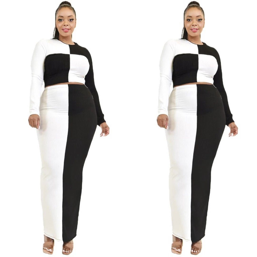 Black stretchy two piece set with cropped top and long sleeves. Cotton stretchy fabric with textured ribbing. No need to worry if it will fit because it does stretch very well all over. Soft and comfy fit with nice long skirt. The sleeves and all over fabric will stretch to fit. Also, please keep in mind that this is designed to be form fitting and it will hug your curves. The texture and ribbing are a great effect because it helps to camouflage cellulite or natural body appearances. The skirt is very long and you can pull it high up on the waist or stomach if you want to keep from having skin show since the top is short crop top. This outfit is super super cute on. Worth a try. Ships from Houston, Texas by Social Butterfly Collection