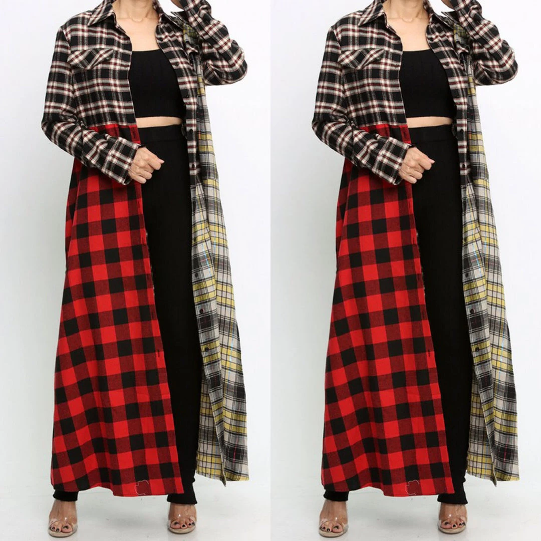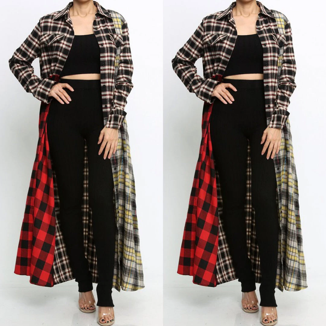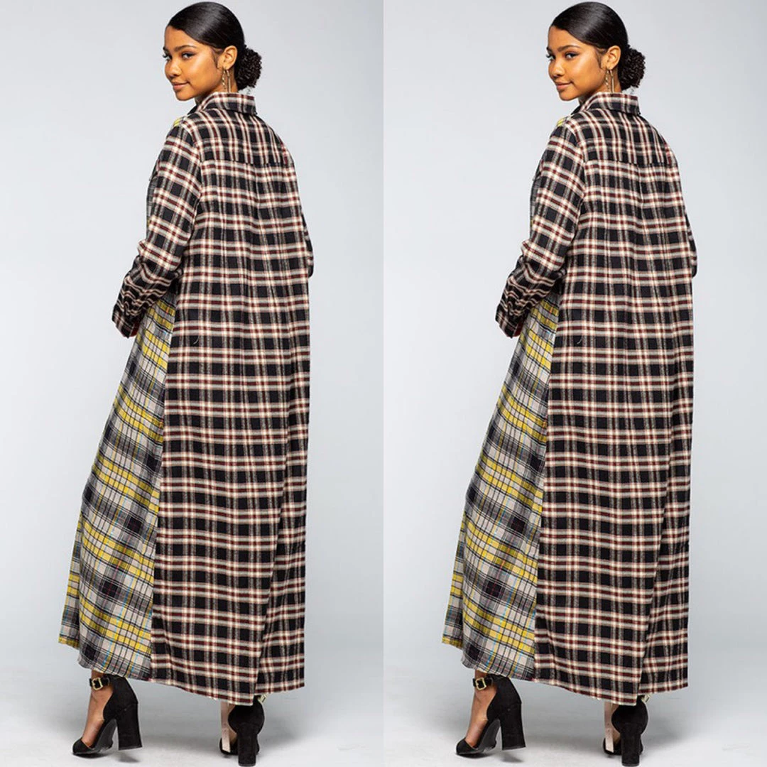 Social Butterfly Collection Dresses Multi Color Plaid Check Pattern Duster Dress