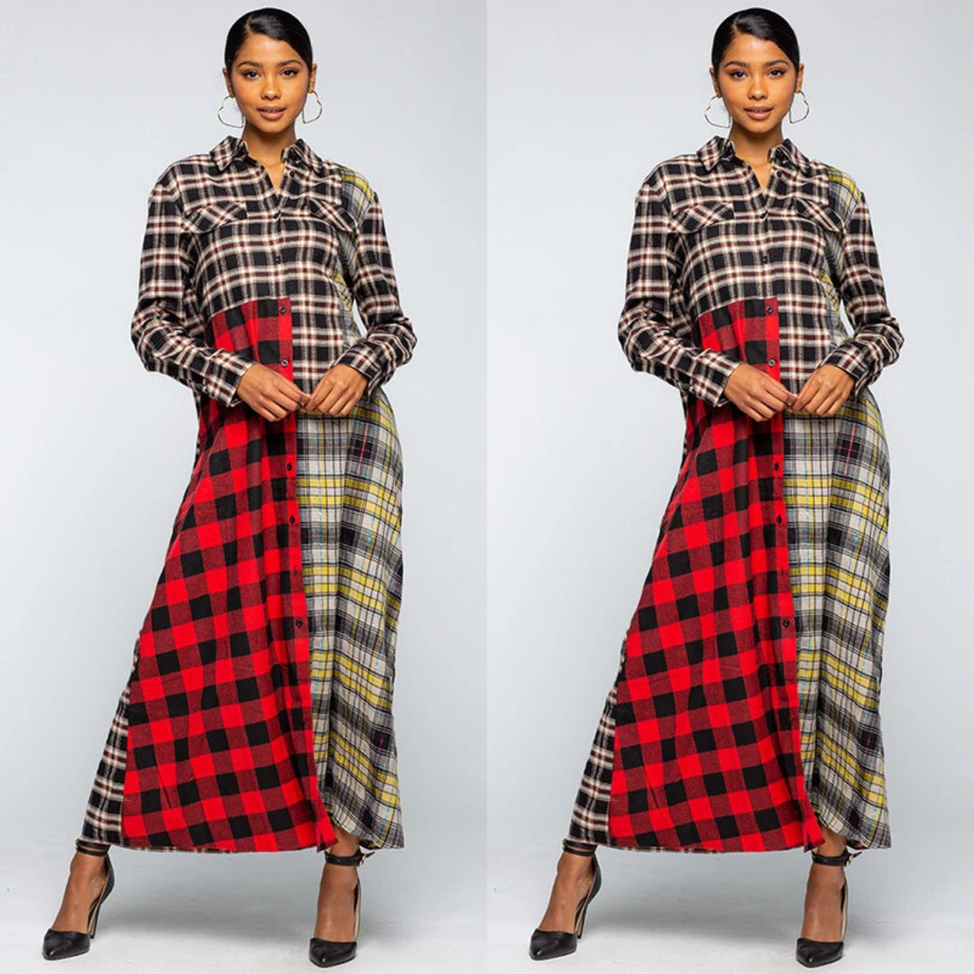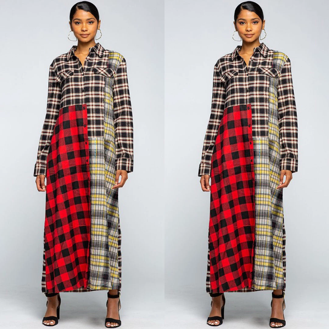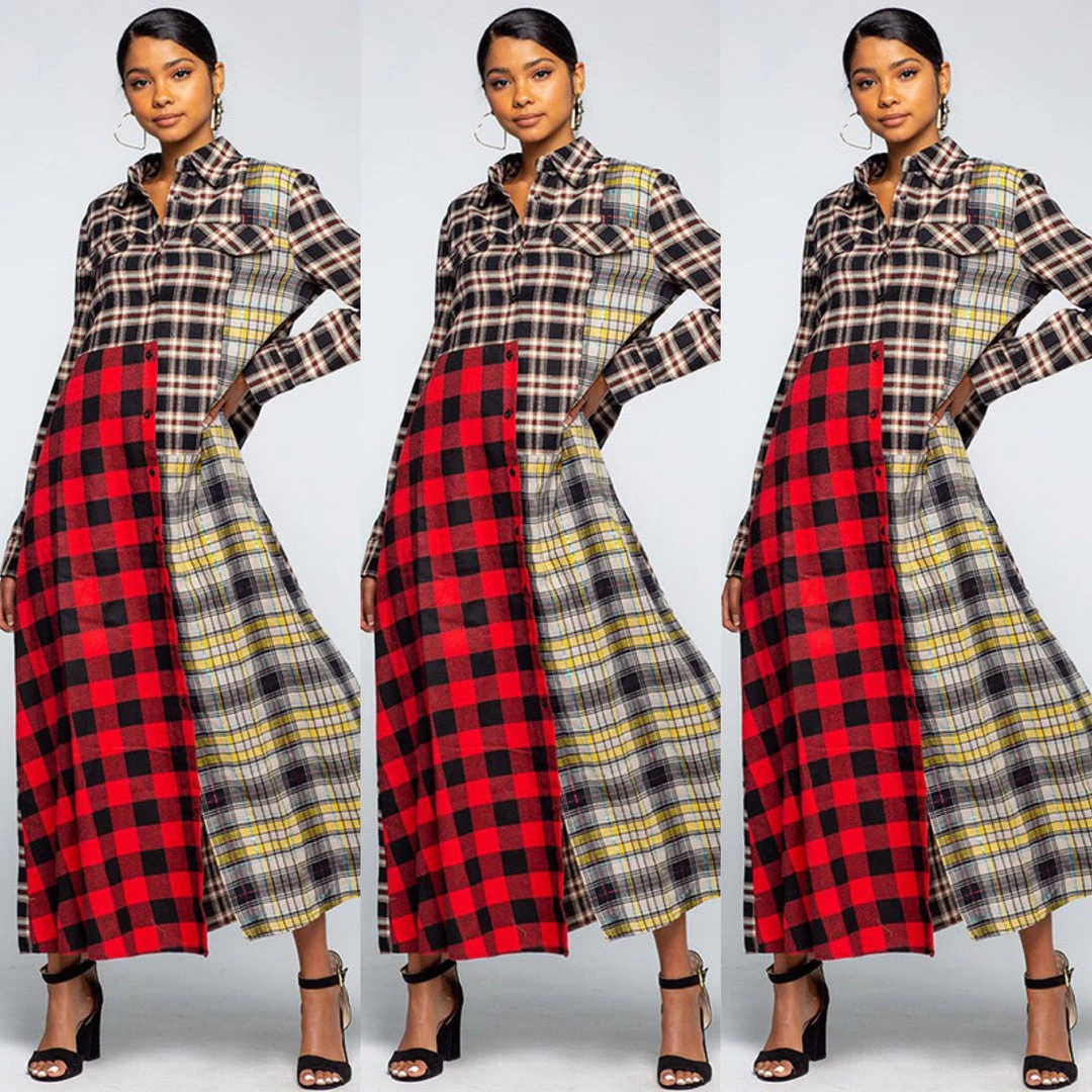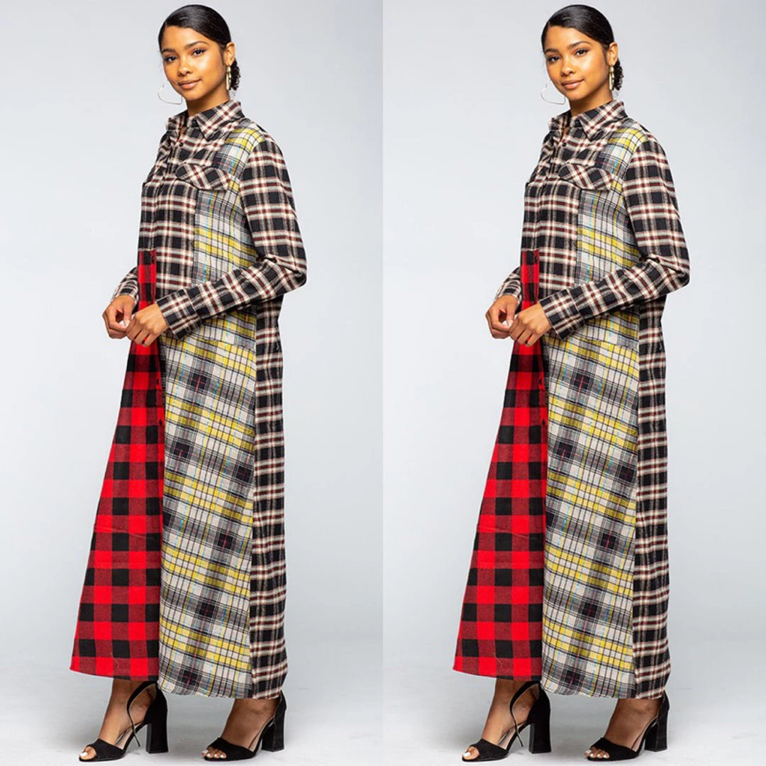 Social Butterfly Collection Dresses Multi Color Plaid Check Pattern Duster Dress