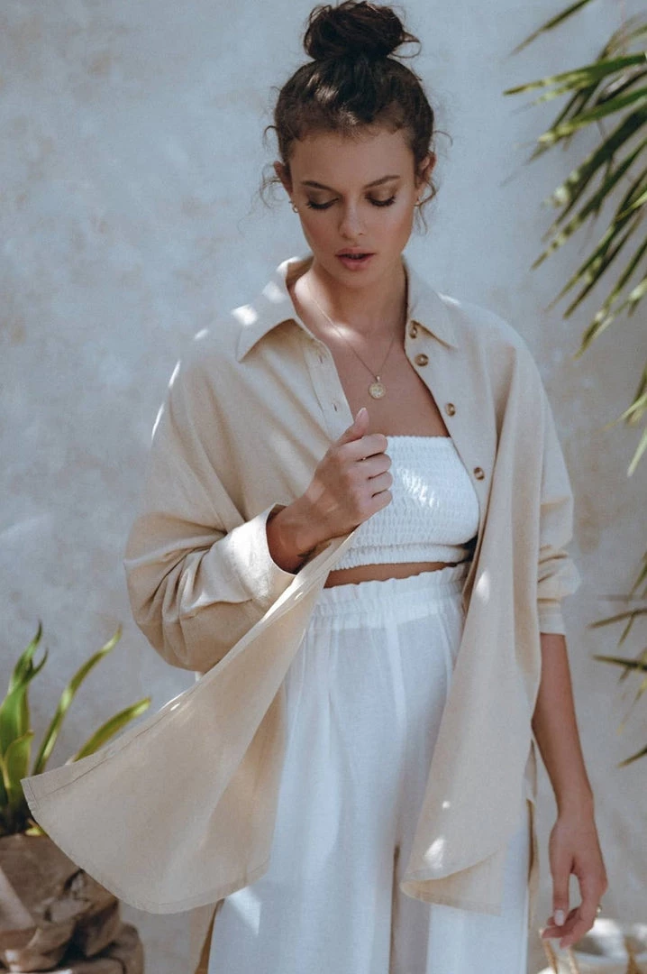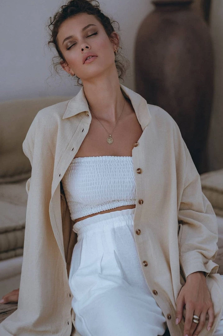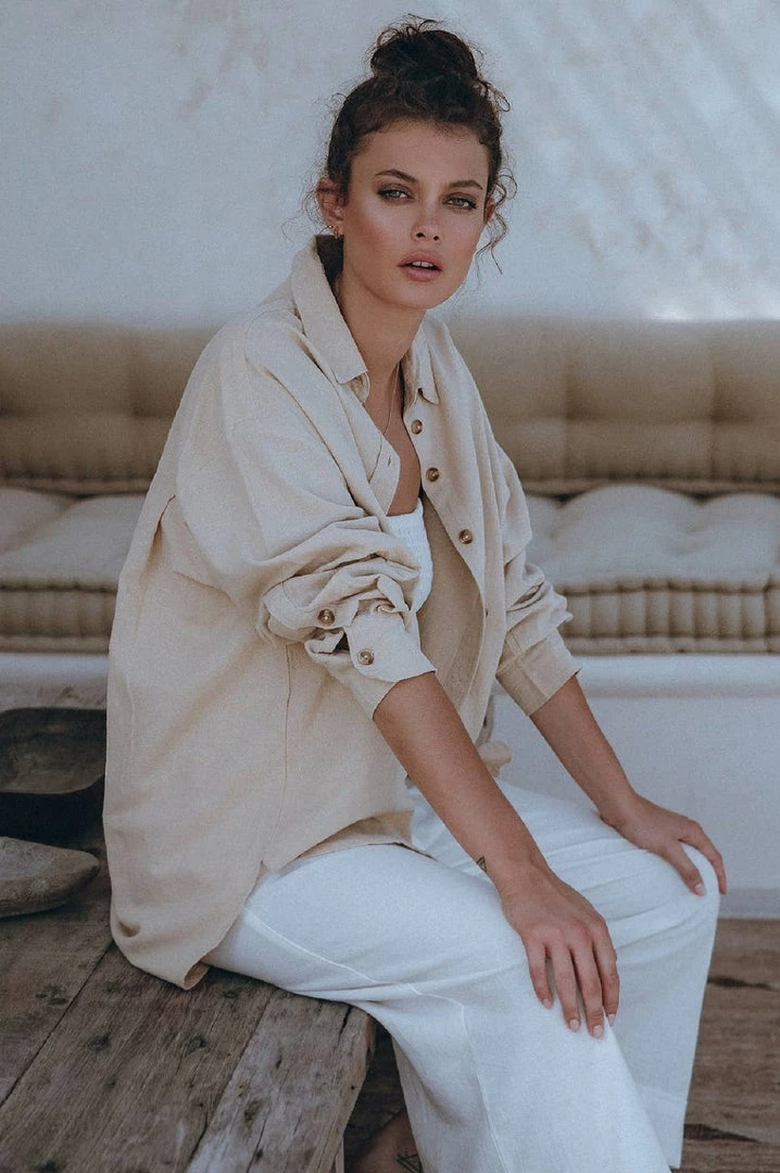 Handcrafted from airy 100% organic linen into billowing oversized silhouette that will become the go to piece in your wardrobe. Perfect summer linen top goes perfectly with our wide leg linen pants. Hand wash cold water. Oversized relaxed fit. Unlined and fits true to size. Ships from Houston, Texas by Social Butterfly Collection.