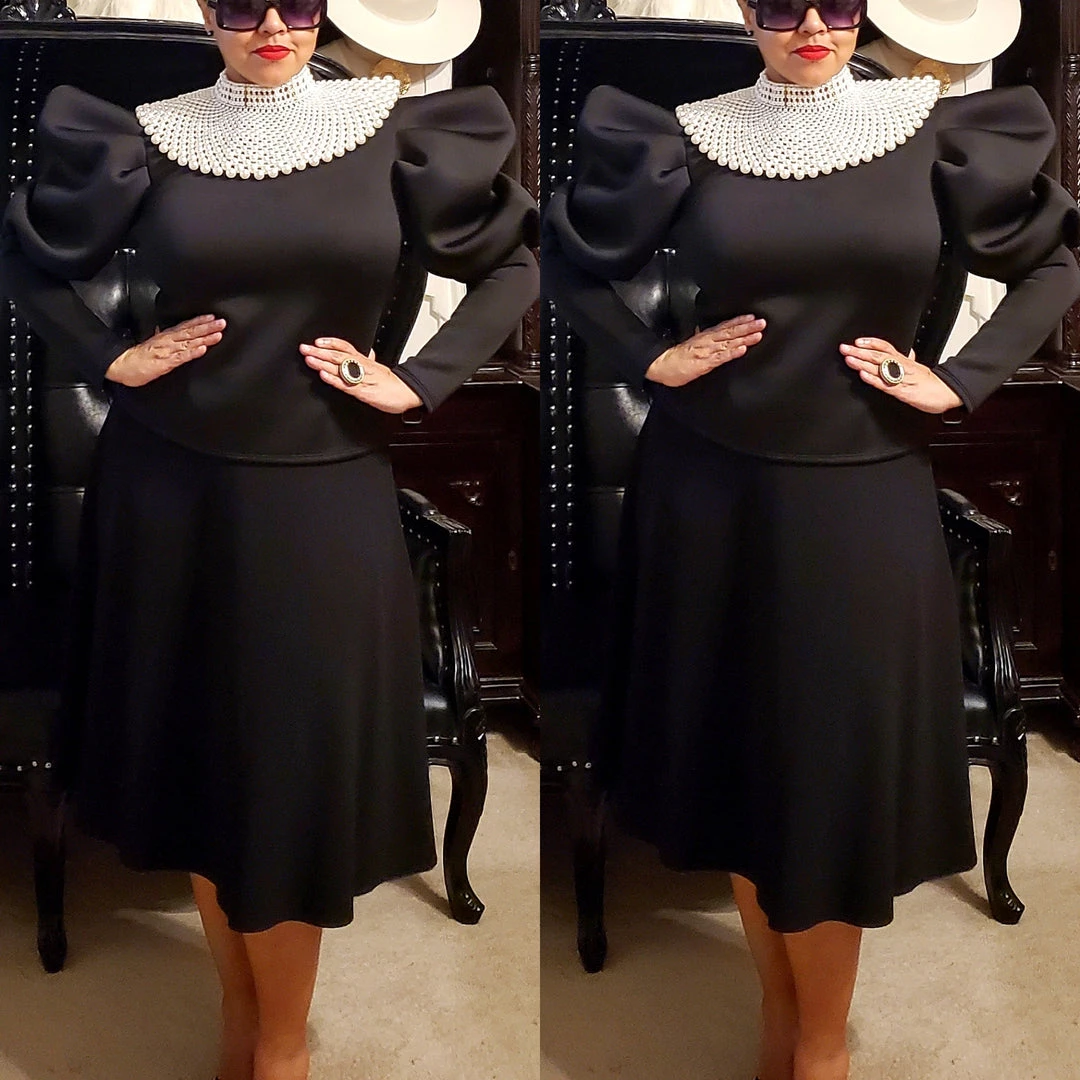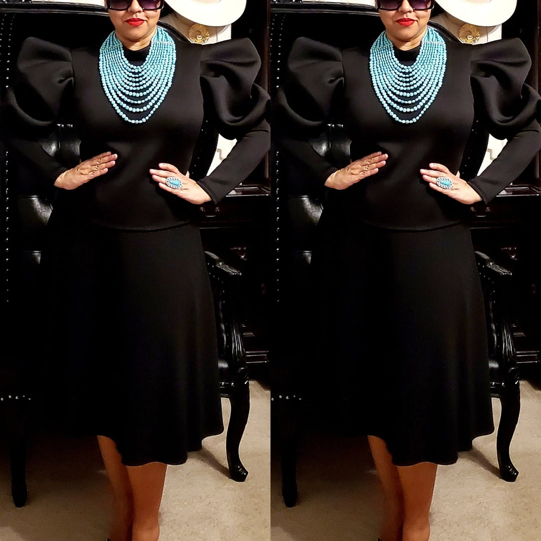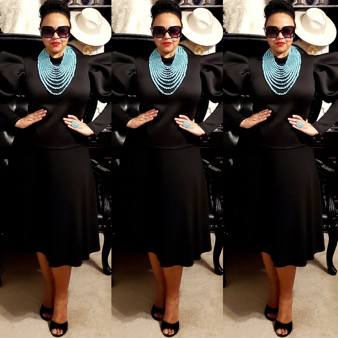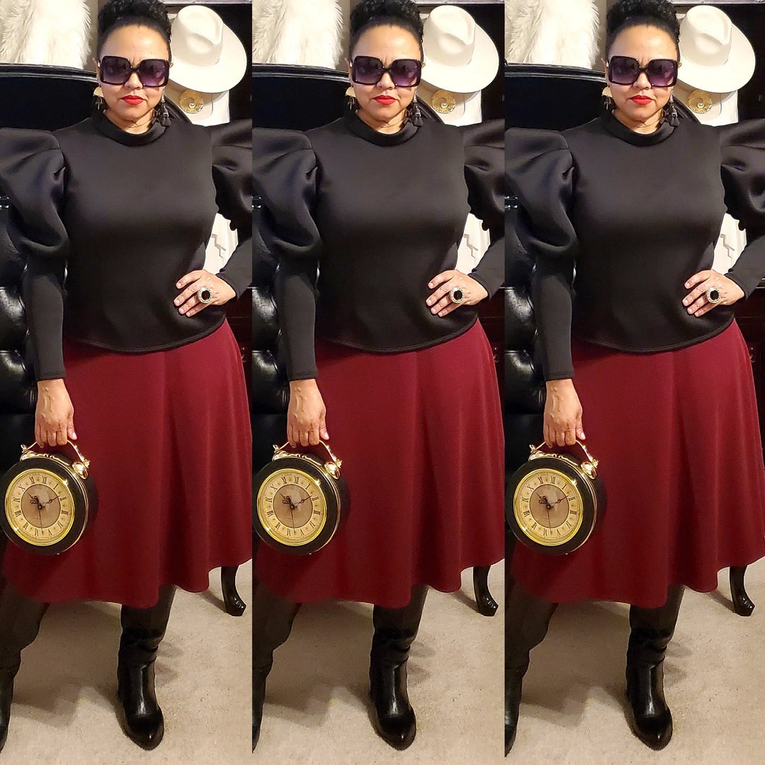 Your closet should always have pieces you can wear with anything and look great; and there is no better example of that than this fitted puffy sleeve top. Top is very fitted in the bodice and lower arms. We recommend going up one size if you are top heavy and carry more weight in your bust and stomach. Shirt is short waist so it looks best with high waisted pants or skirt. Fabric has a lot of spandex and stretch. Material is polyester and spandex blend. Back of the top has full zipper with cute pearl detail. Lots of stretch for that perfect fit. Fabric is medium weight. Shirts sold separately. Ships from Houston, Texas by Social Butterfly Collection.