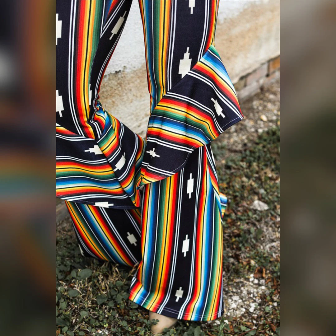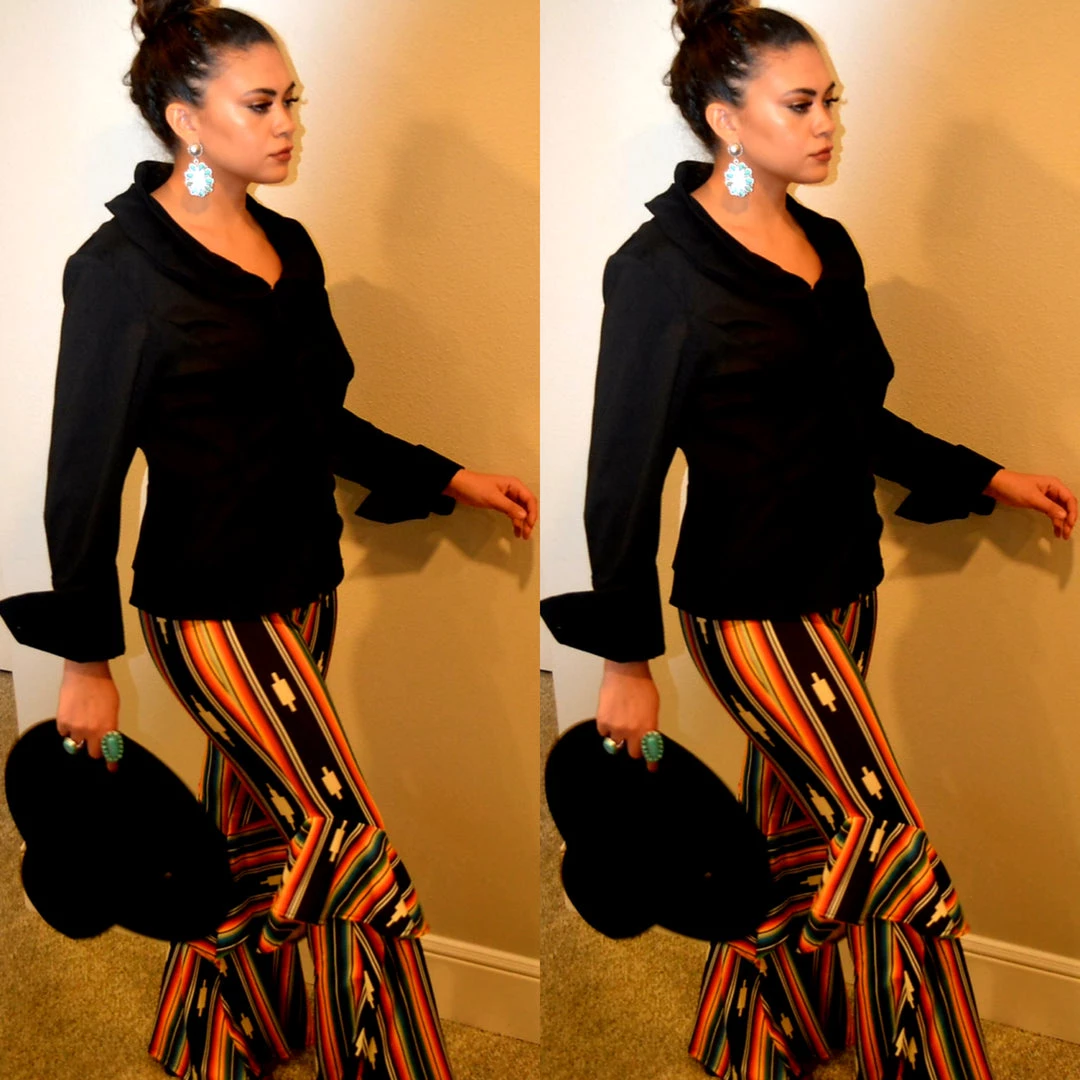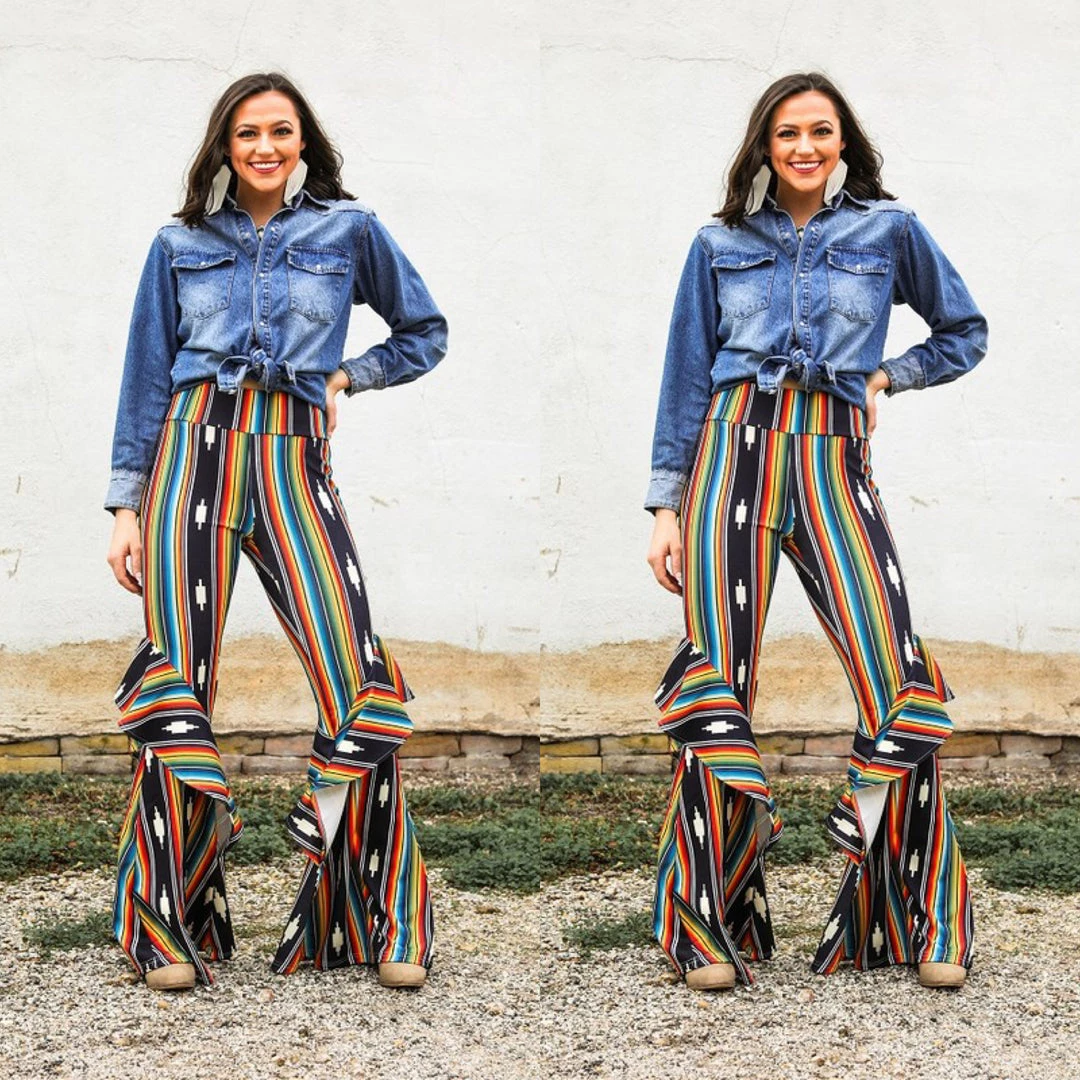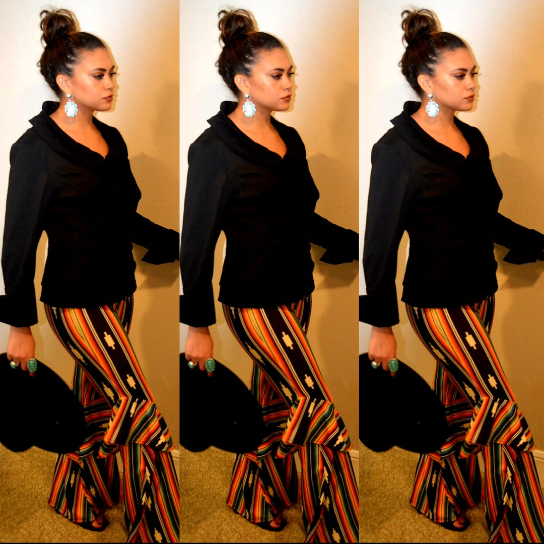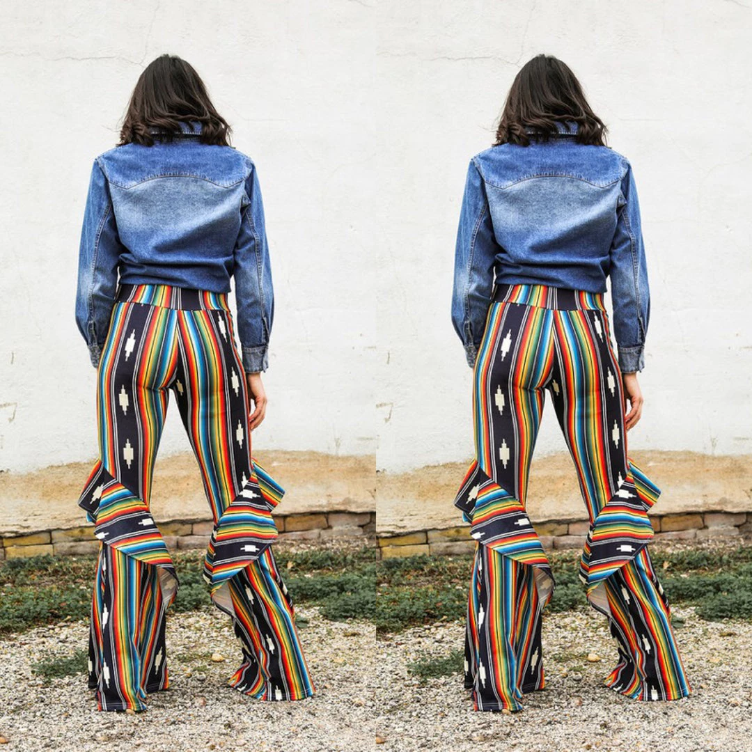 Long wide leg pants with full ruffle at the knee. Knee ruffle and flare pant leg in stretch material. Excellent fabric with awesome stretch. Polyester and spandex blend. Beautiful feel and look to this fabric. Length of pants 44 inches from top of waist to bottom of the pant leg. Inseam measures 33 inches. Waist has plenty of stretch to fit stomach area. These pants are fancy fun and perfect for parties or any special event. Ships from Houston, Texas by Social Butterfly Collection.