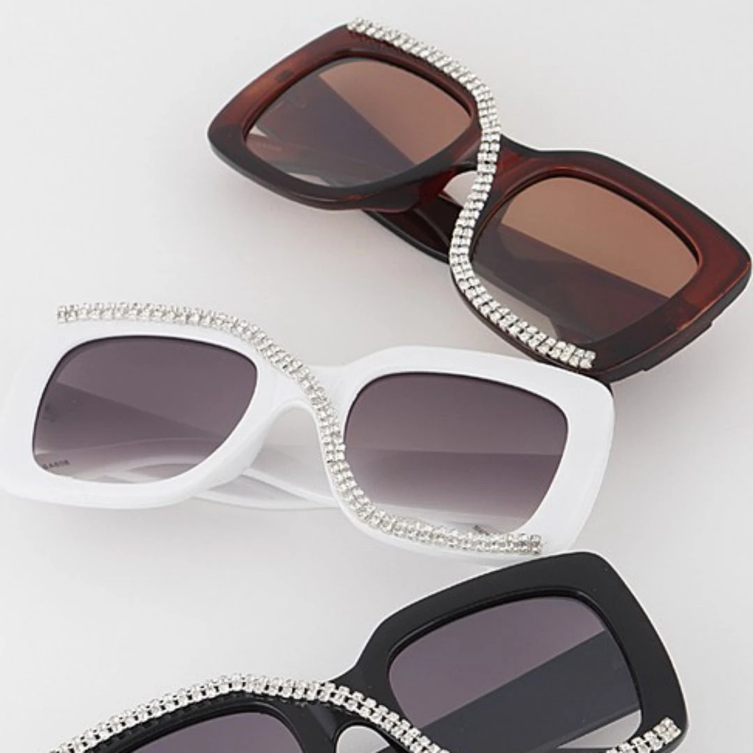 Full Coverage High Fashion sunglasses with silver details. These tinted sunglasses are as fashion forward as they come. Get ready for summertime driving or your next vacation with these stylish sunglasses that are easy to wear and gives your eyes great coverage from the sun. Ships from Houston, Texas by Social Butterfly Collection.