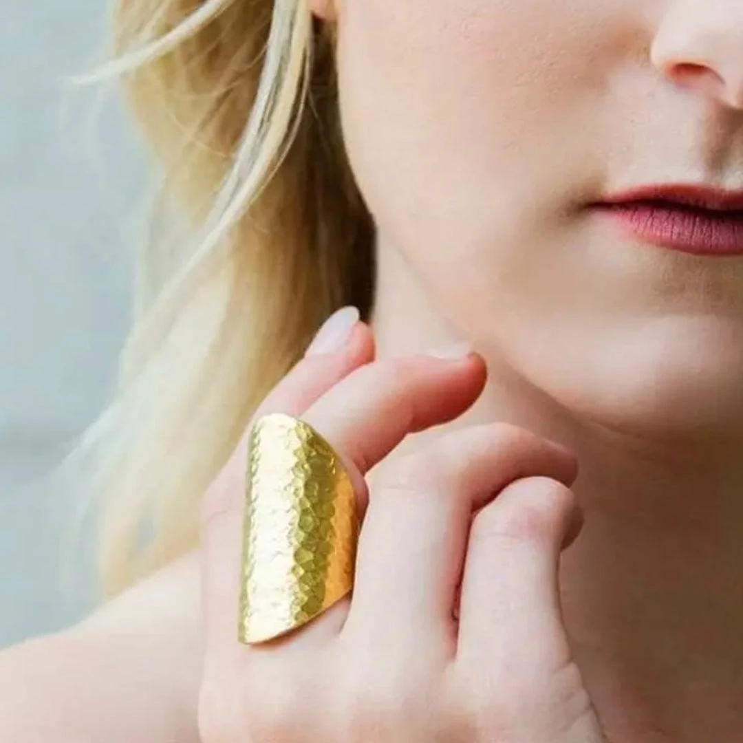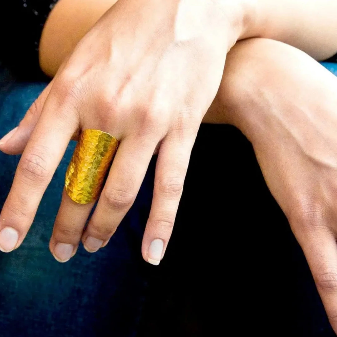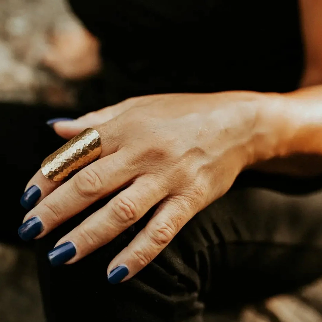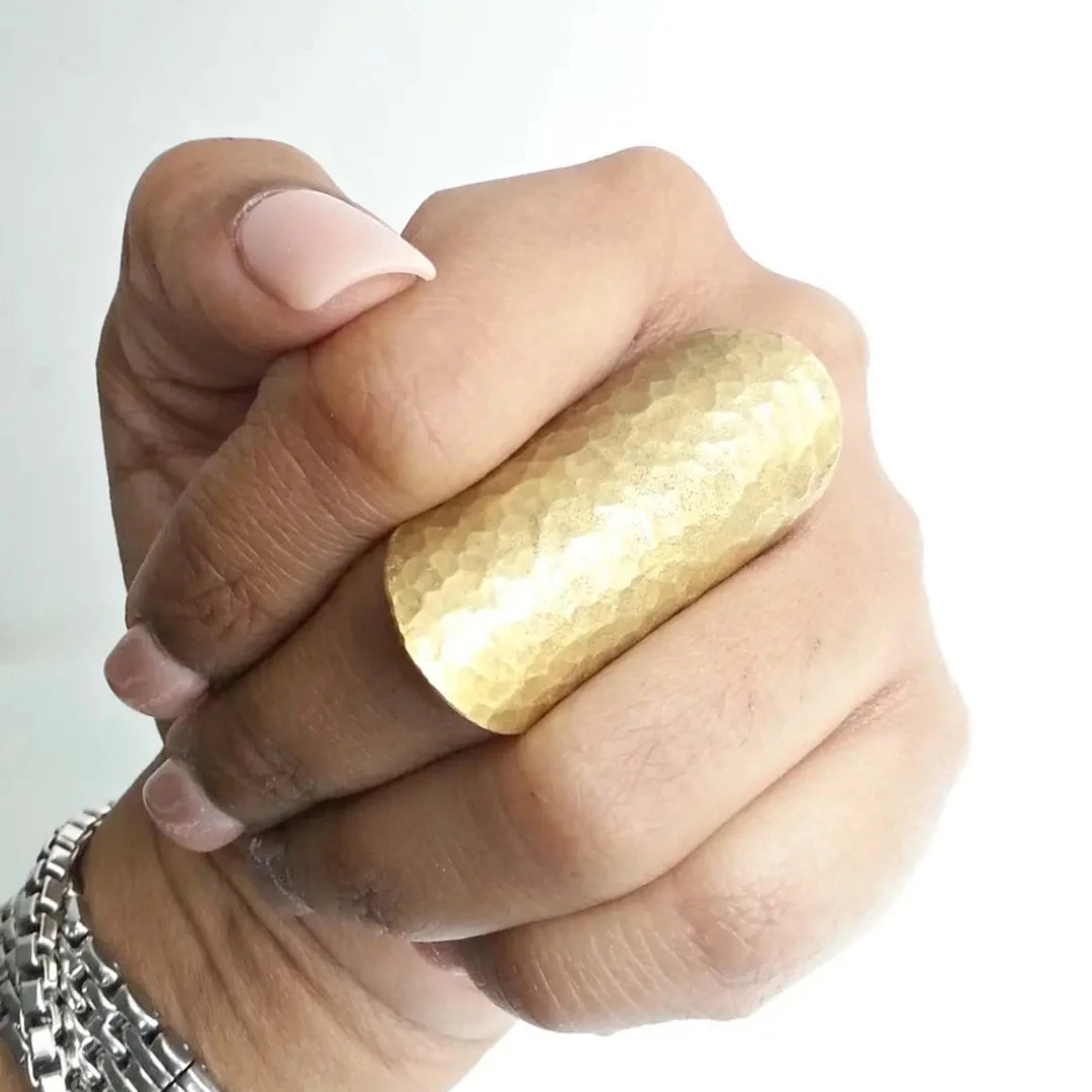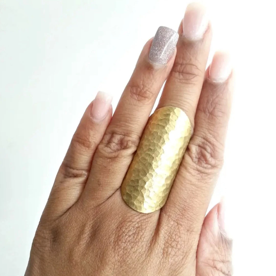Ring measures 1.75 inches long. Size is adjustable and ring will fit pretty much any finger you would like to wear it on. The brass is intentionally left unsealed to allow for natural oxidation to occur. As the metal ages, it darkens and develops a distinct and warm patina. Take a moment to shop our bold collection of necklaces, earrings, bracelets and accessories. Not sure what to wear to your next engagement? Then grab your little black dress and top it off with a pop of jewelry. Truly timeless classic pieces will never go out of style. Great looks to add color or flash to a solid color dress or outfit. Be Bold. Be Beautiful with your favorite item of jewelry from Social Butterfly Collection. Ships from Houston, Texas by Socialbutterflycollection.com
