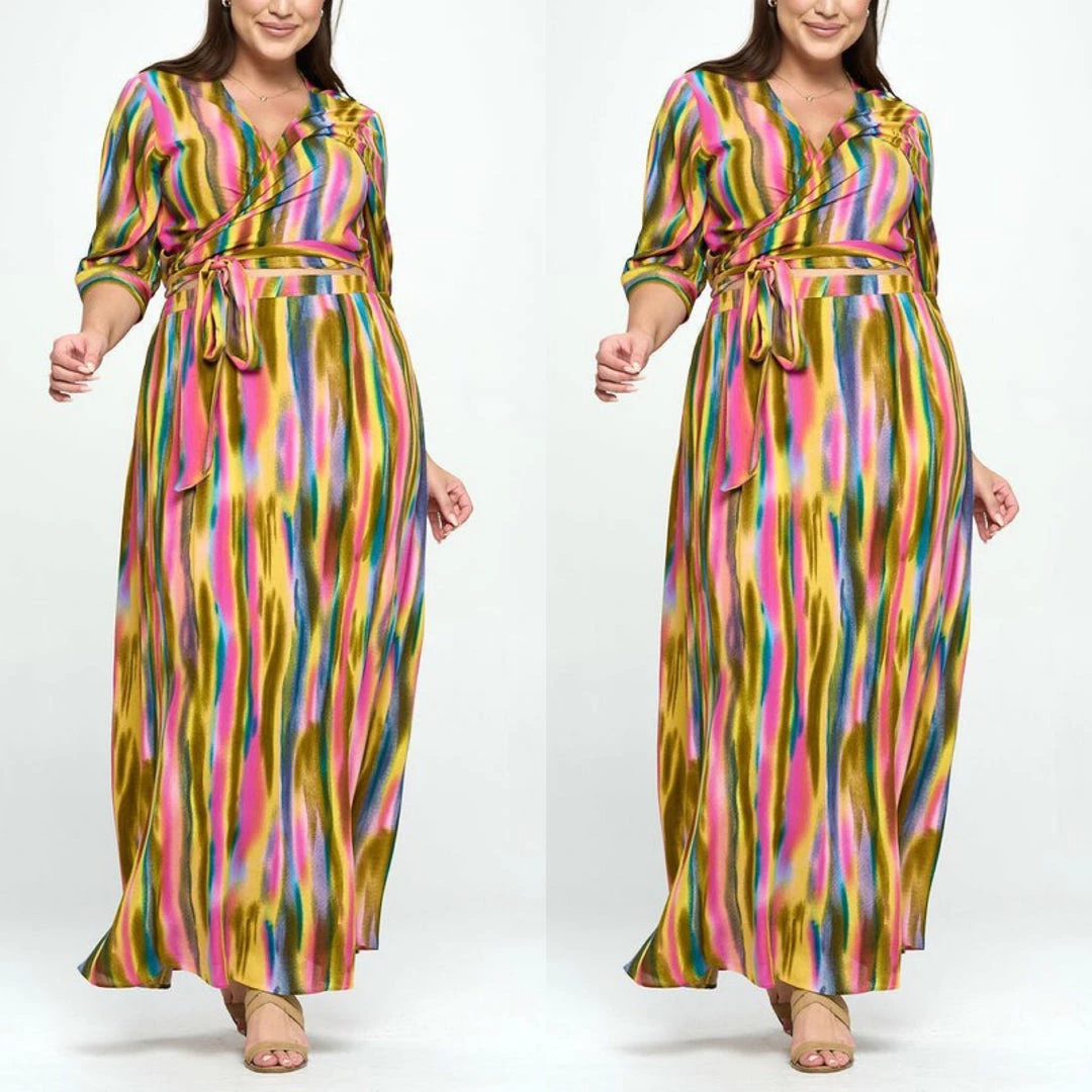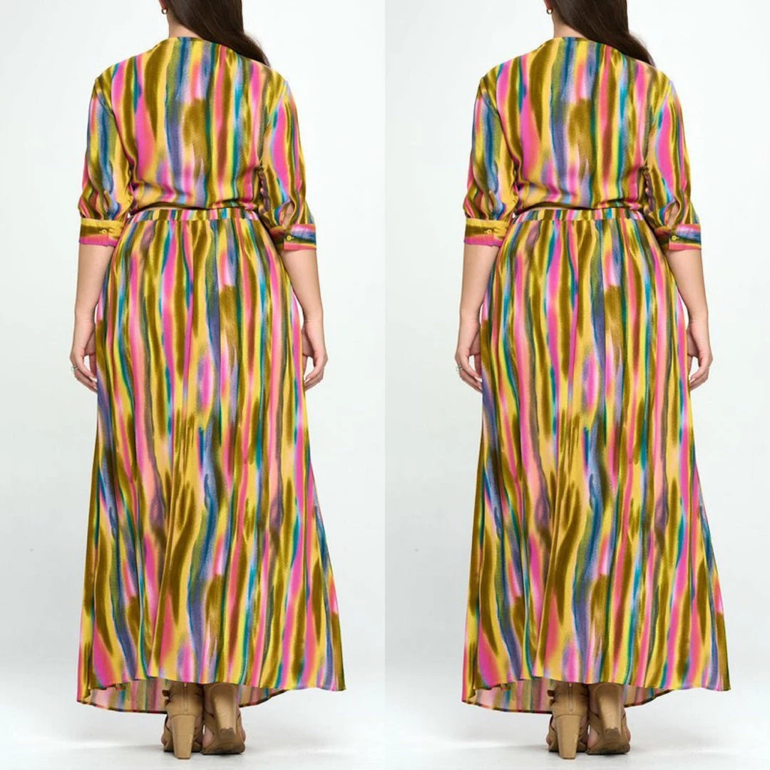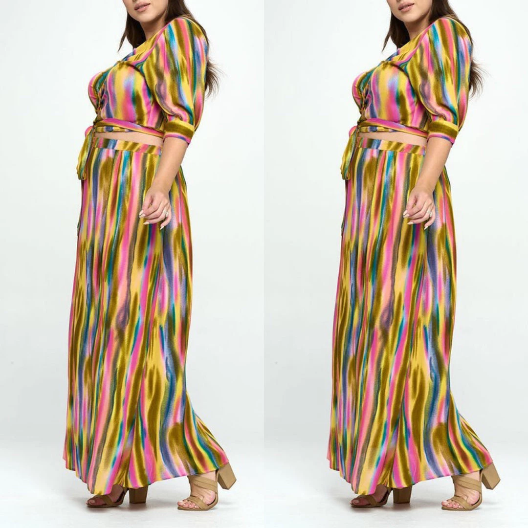 Multi Color Plus Size Fitted Two Piece Skirt Set
