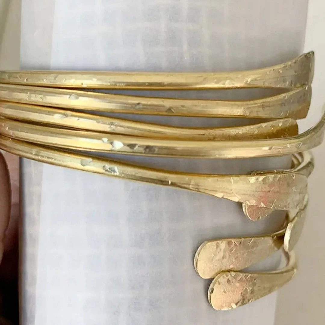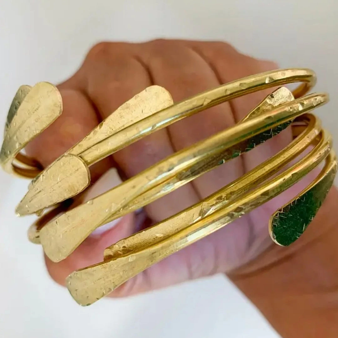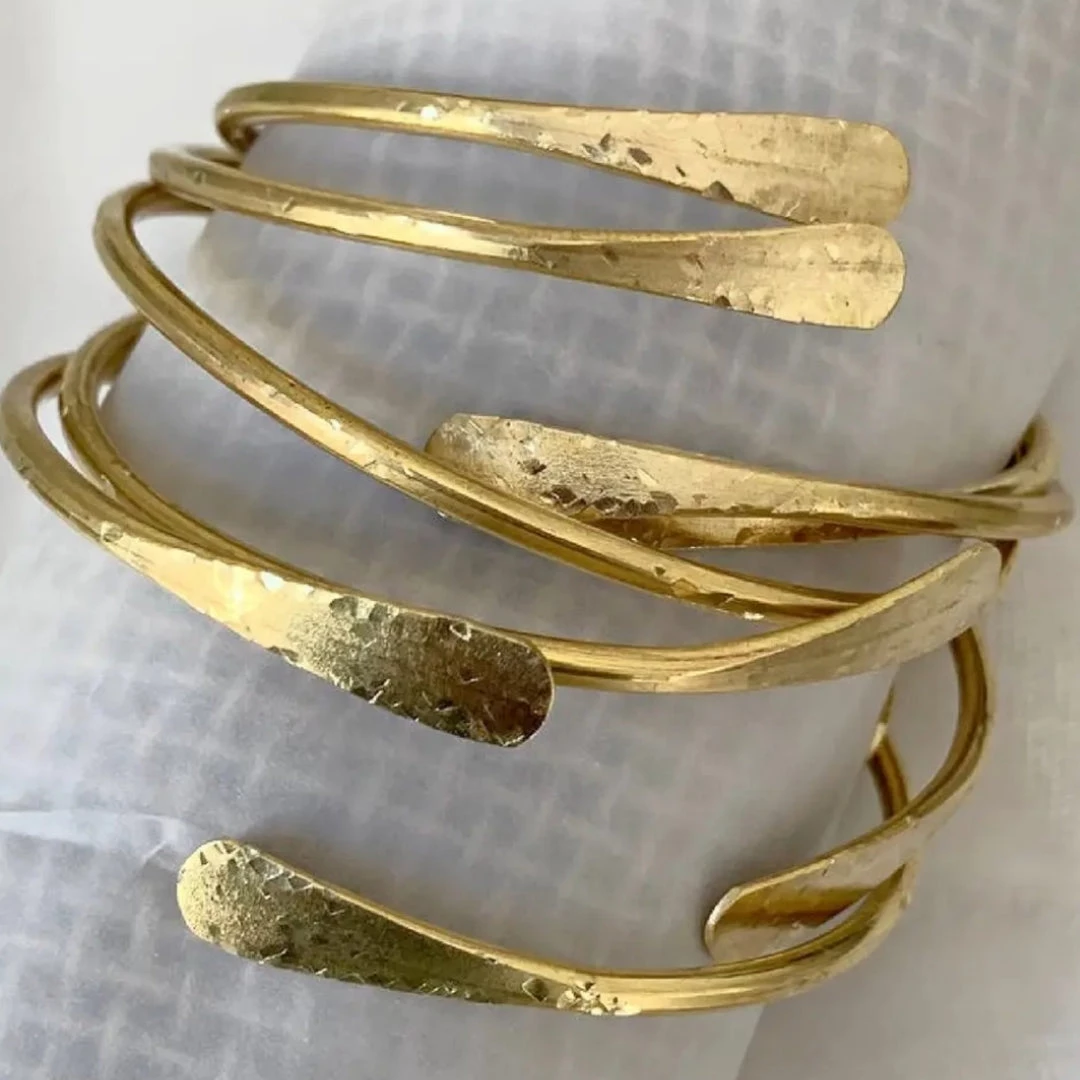 Set of 5 bracelets. The brass is intentionally left unsealed to allow for natural oxidation to occur. As the metal ages, it darkens and develops a distinct and warm patina. Take a moment to shop our bold collection of necklaces, earrings, bracelets and accessories. Not sure what to wear to your next engagement? Then grab your little black dress and top it off with a pop of jewelry. Truly timeless classic pieces will never go out of style. Great looks to add color or flash to a solid color dress or outfit. Be Bold. Be Beautiful with your favorite item of jewelry from Social Butterfly Collection. Ships from Houston, Texas by Socialbutterflycollection.com