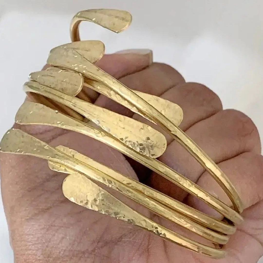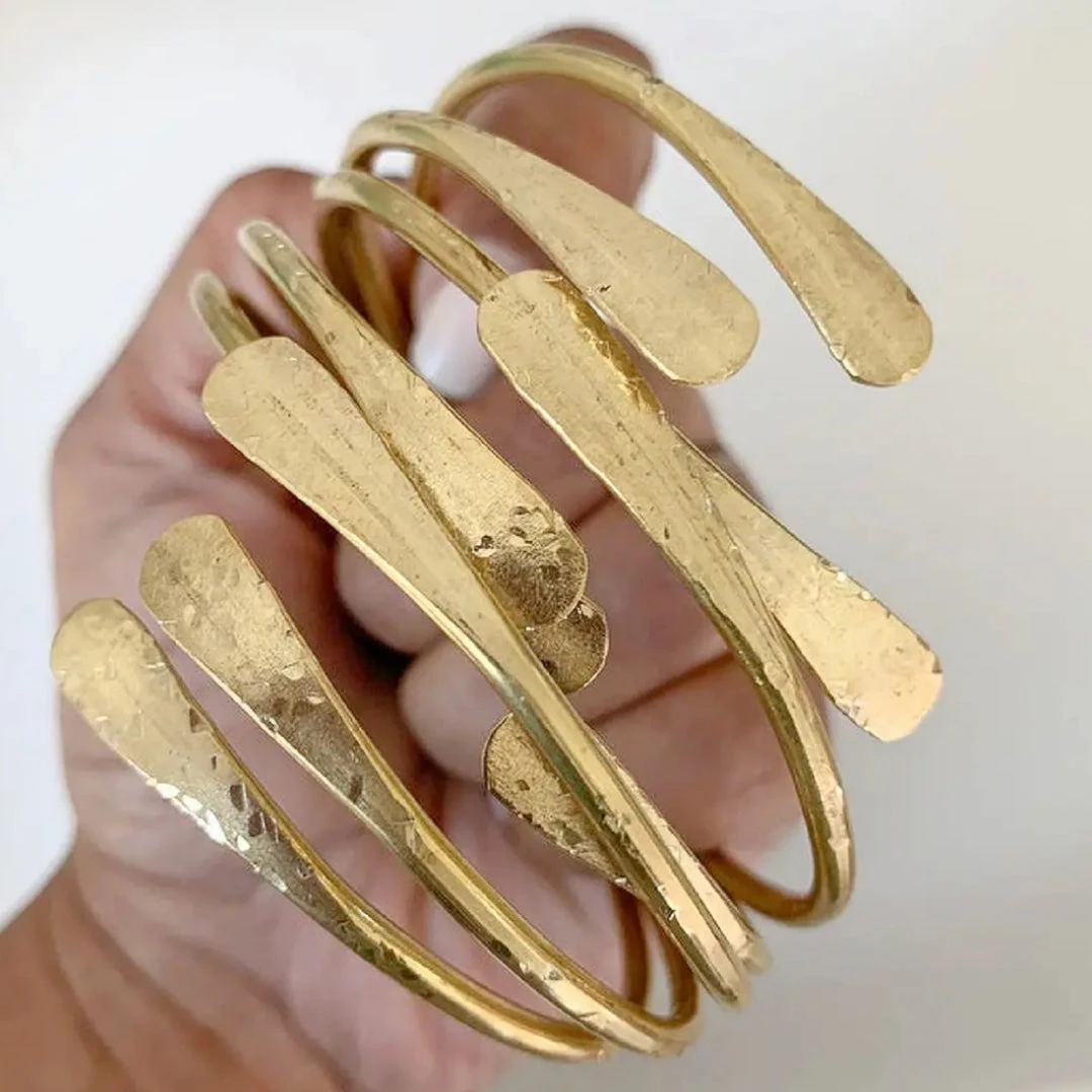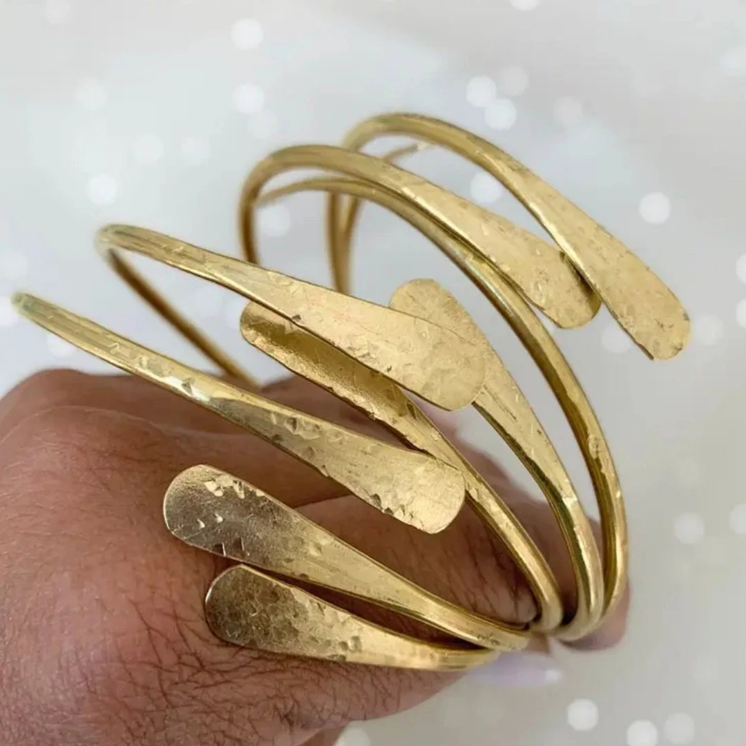 Set of 5 bracelets. The brass is intentionally left unsealed to allow for natural oxidation to occur. As the metal ages, it darkens and develops a distinct and warm patina. Take a moment to shop our bold collection of necklaces, earrings, bracelets and accessories. Not sure what to wear to your next engagement? Then grab your little black dress and top it off with a pop of jewelry. Truly timeless classic pieces will never go out of style. Great looks to add color or flash to a solid color dress or outfit. Be Bold. Be Beautiful with your favorite item of jewelry from Social Butterfly Collection. Ships from Houston, Texas by Socialbutterflycollection.com