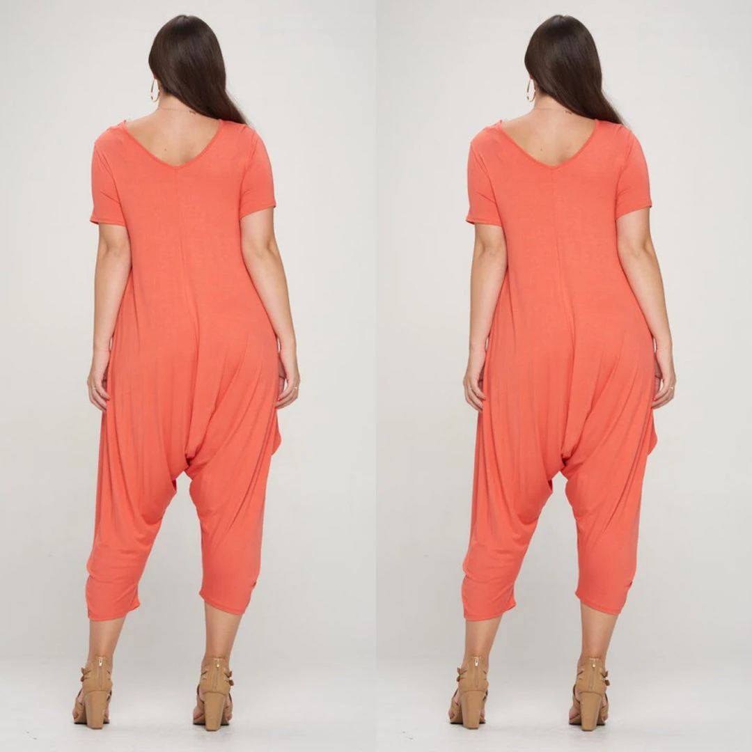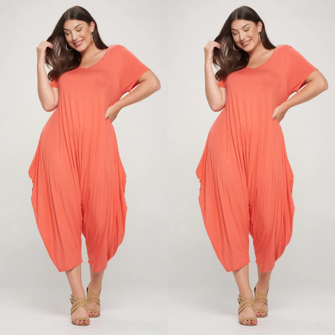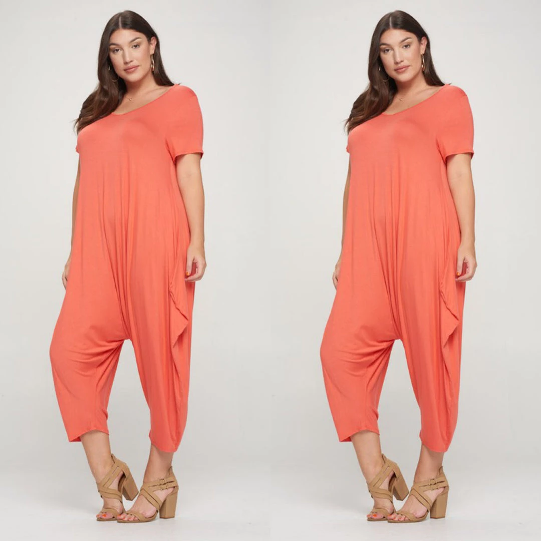 Social Butterfly Collection Orange Coral Plus Size Romper Jumpsuit New Arrivals