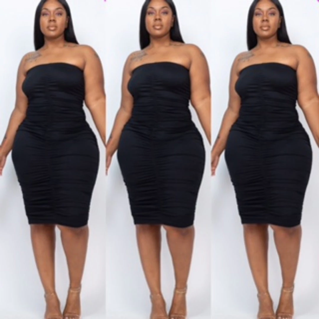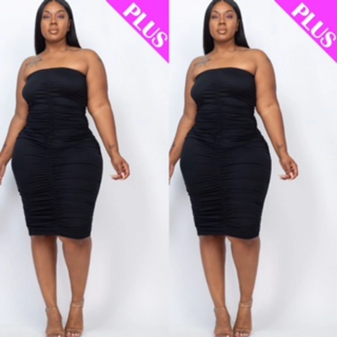 Plus Size Black Tube Top Strapless Dress Ruching Detail