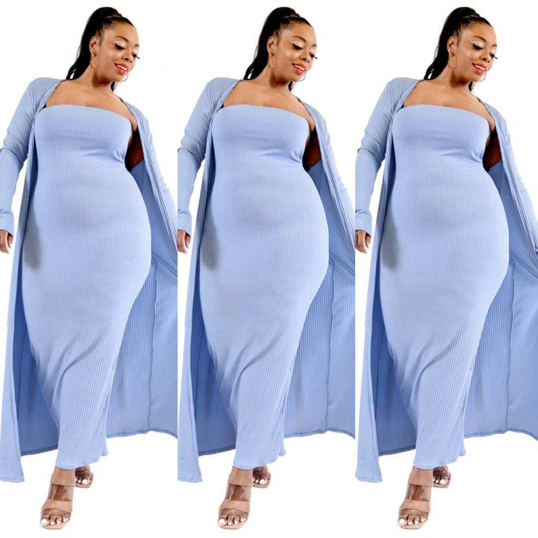 Incredibly soft and ribbed knit two piece tube dress and duster set. The dress is designed to stop well below the knees to the ankles and the duster will fall even longer in length to give you great coverage in the back. Soft to the touch with texture and ribbing. Dress is true to size and is designed to be form fitted but has great stretch. Dress is sleeveless and strapless and fits like a tube top. The duster has long sleeves that can be worn long to the wrist or pushed up to the elbows. This outfit is super comfy. You can dress it way up or surely dress casually or wear as lounger around the house when you want to be cute while entertaining at home. Please keep in mind that the dress is designed to be very form fitted and will hug every curve. The duster does fit loose and will provide coverage. Material is a cotton spandex blend with good stretch. Set comes in black, kiwi green, and light blue. Ships from Houston, Texas by Social Butterfly Collection.