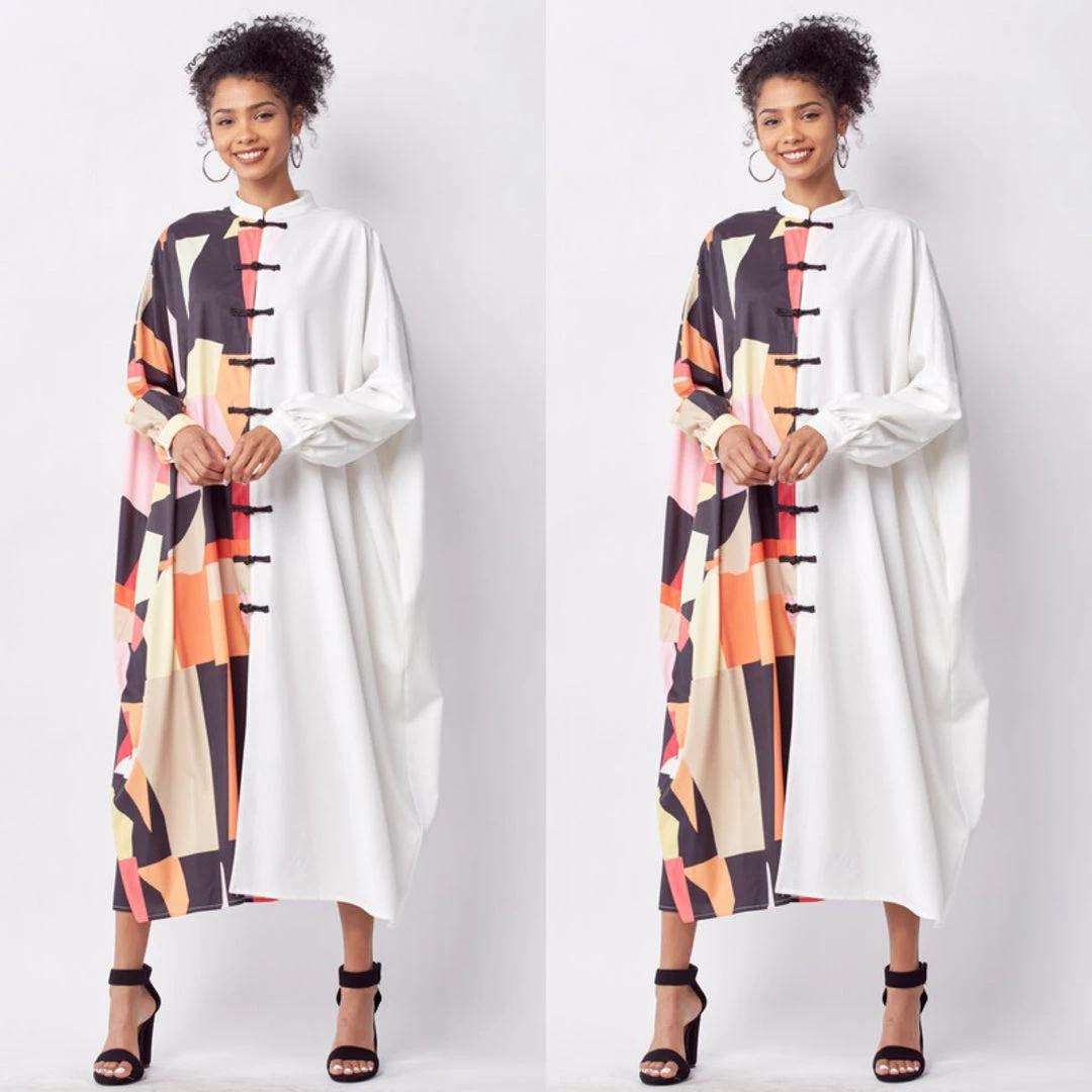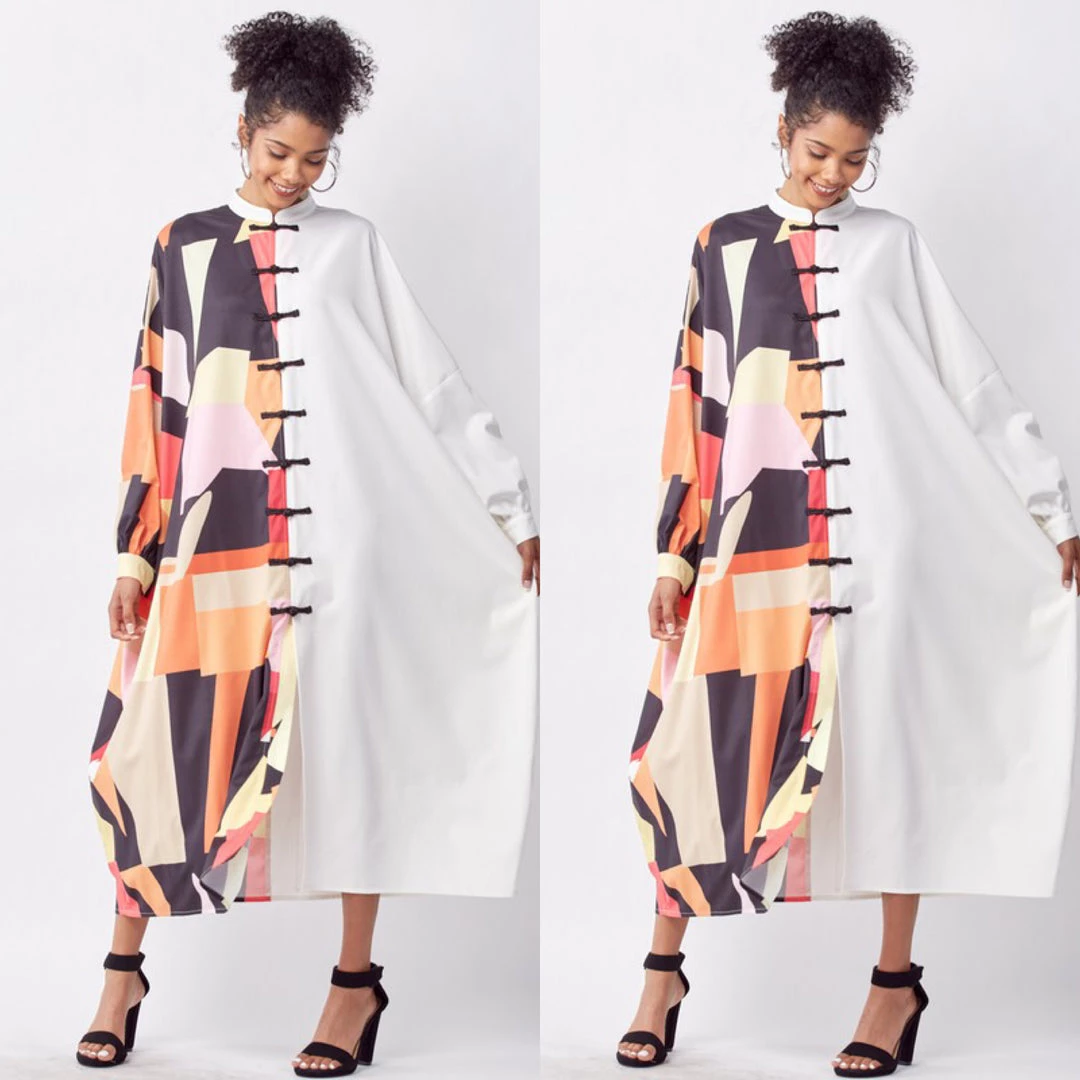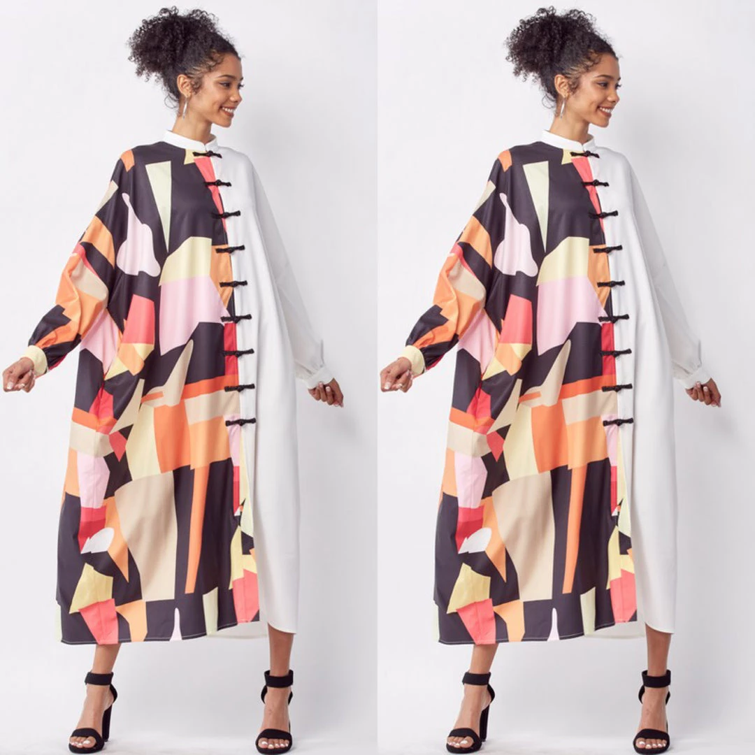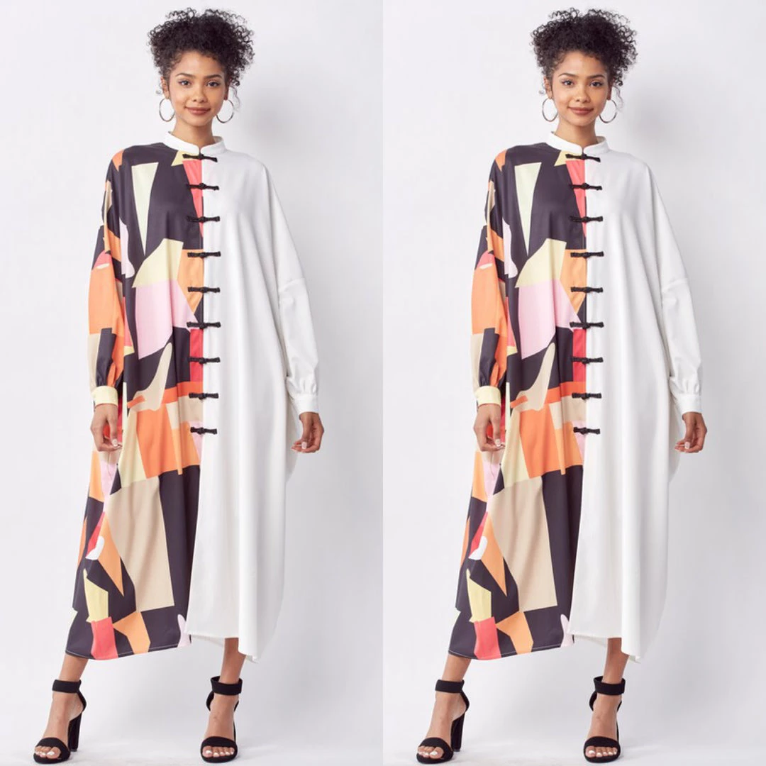 This fits really loose with plenty of room. Can be worn as a dress or a jacket open style. If you love the vintage look and want a comfy cool style, then a great choice would be this little dress with multi print and color block detailing and side pockets. This gorgeous piece falls well below the knees to the ankles and fabric is a full flowing softness. We suggest ordering your exact size because this runs true to size with loose loose fit and flow. Oversized give a shabby chic look and feel. Ships from Houston, Texas by Social Butterfly Collection.