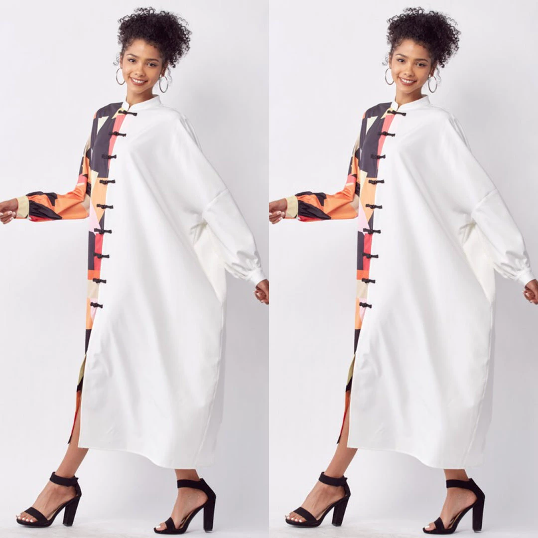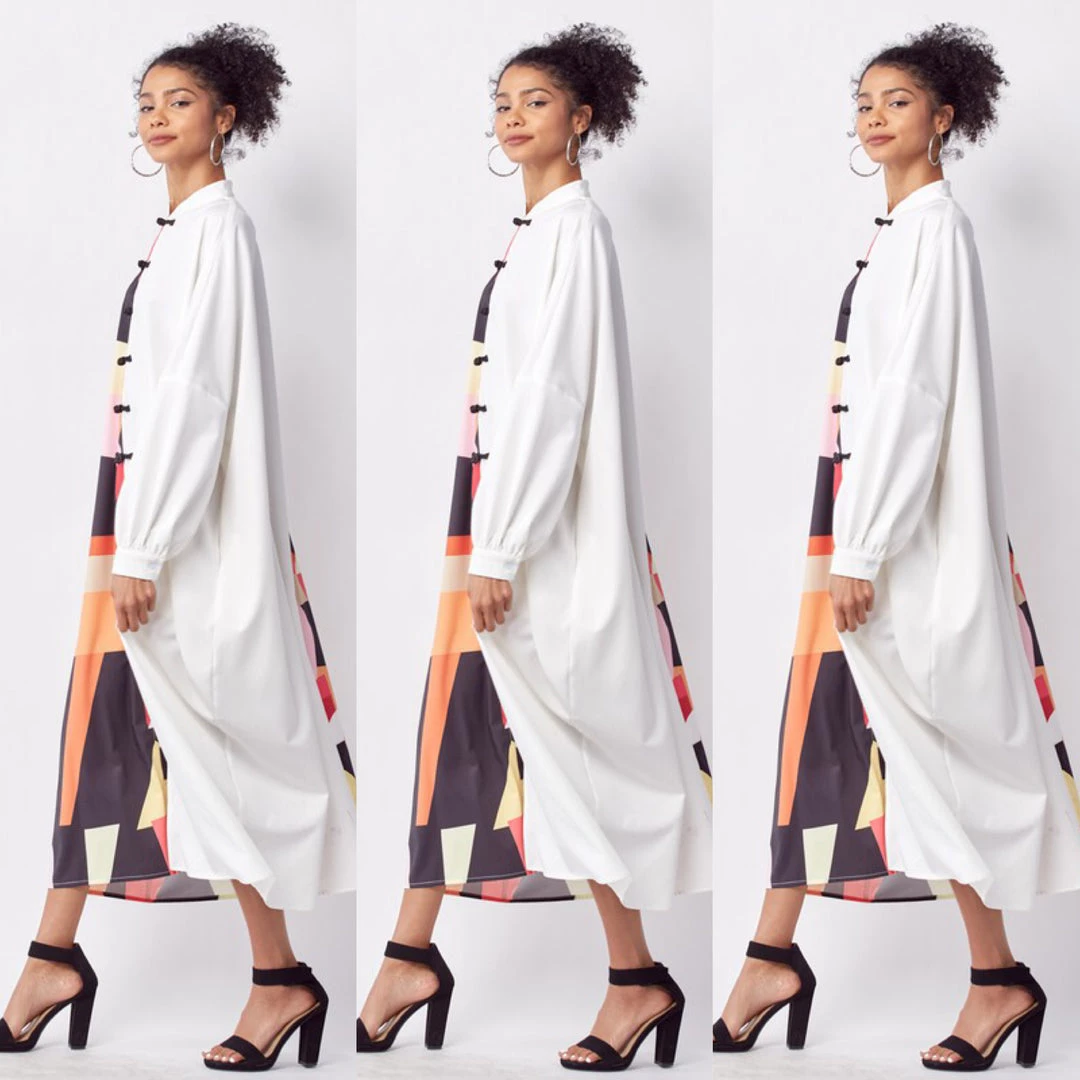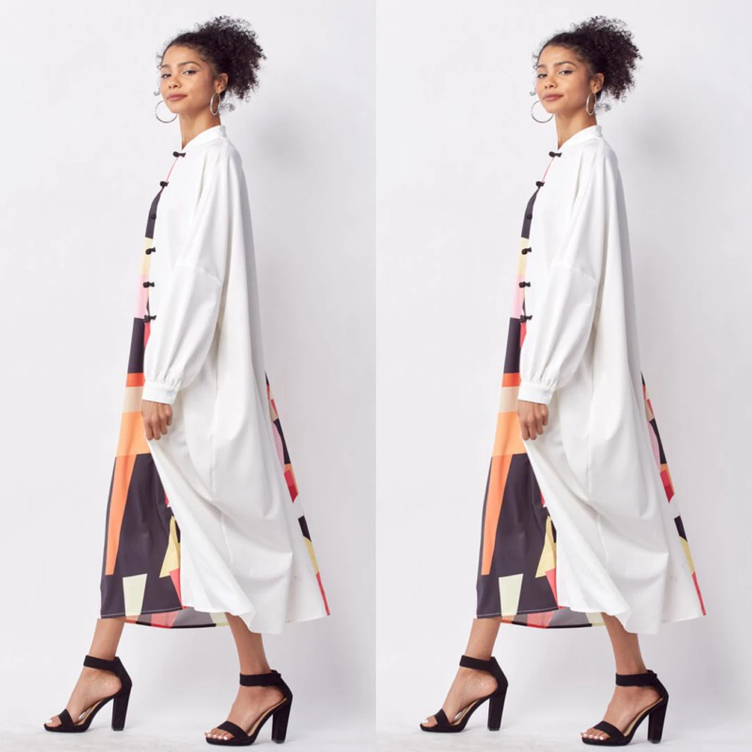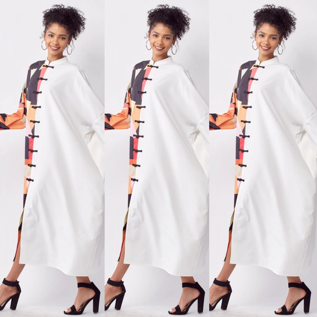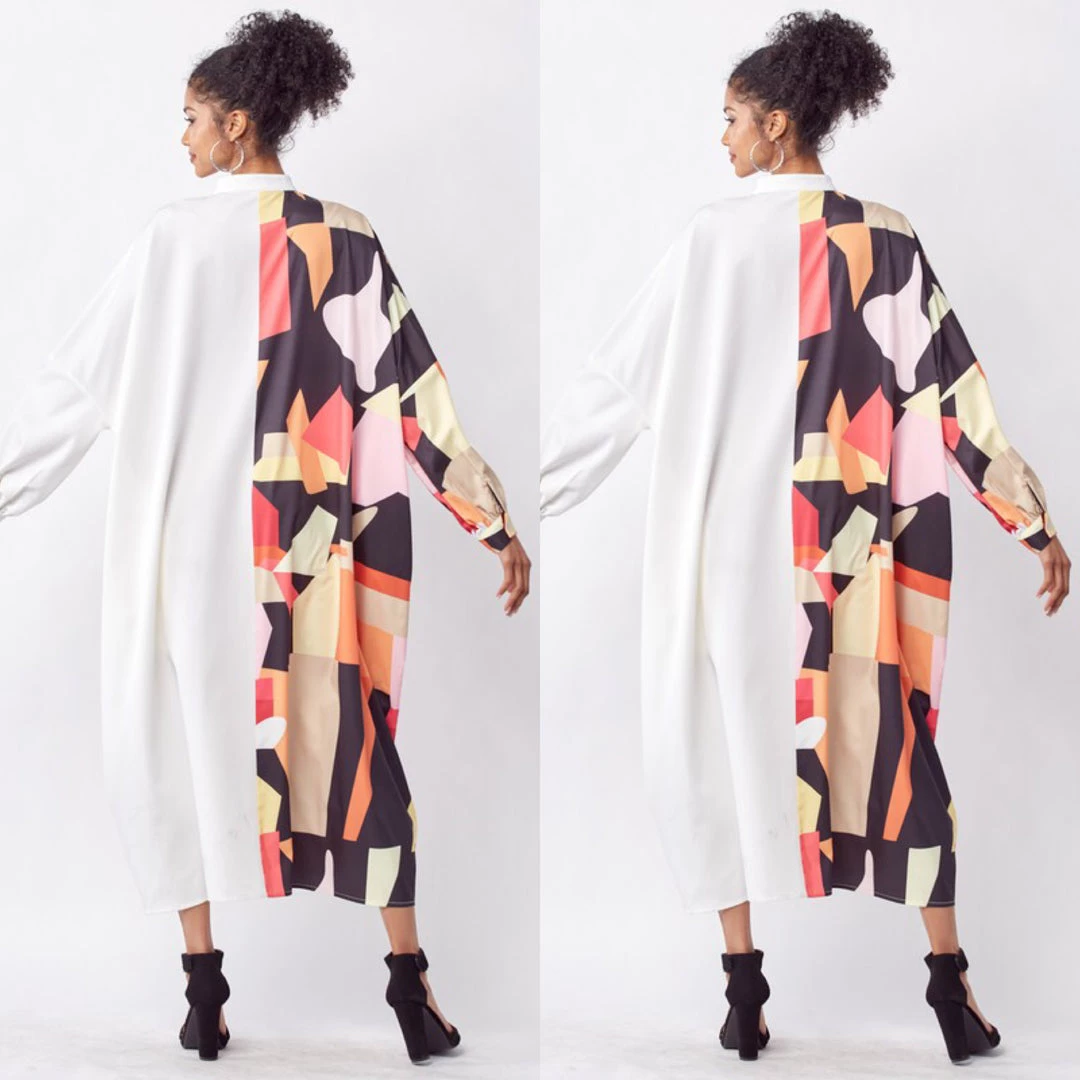This fits really loose with plenty of room. Can be worn as a dress or a jacket open style. If you love the vintage look and want a comfy cool style, then a great choice would be this little dress with multi print and color block detailing and side pockets. This gorgeous piece falls well below the knees to the ankles and fabric is a full flowing softness. We suggest ordering your exact size because this runs true to size with loose loose fit and flow. Oversized give a shabby chic look and feel. Ships from Houston, Texas by Social Butterfly Collection.