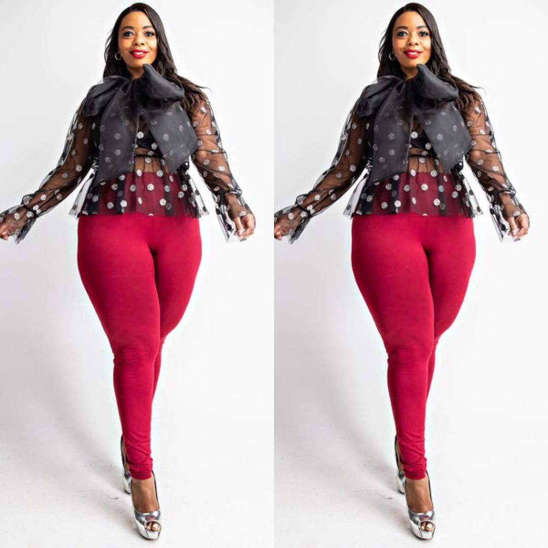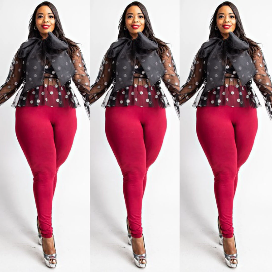Plus size red pant leggings with plenty of spandex and stretch. Waistband also has elastic for easy stretch on and stretch off. Soft stretchy spandex blend and fabric is medium weight as well. Beautiful feel and look to this fabric and waistband has lots of stretch for comfort. Step right in and they will slip right on and stretch where you need them to stretch. Ships from Houston, Texas by Social Butterfly Collection.