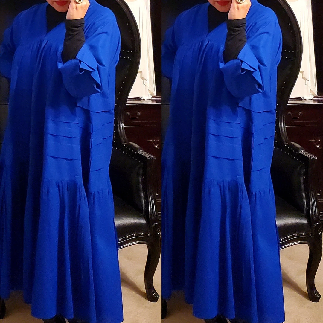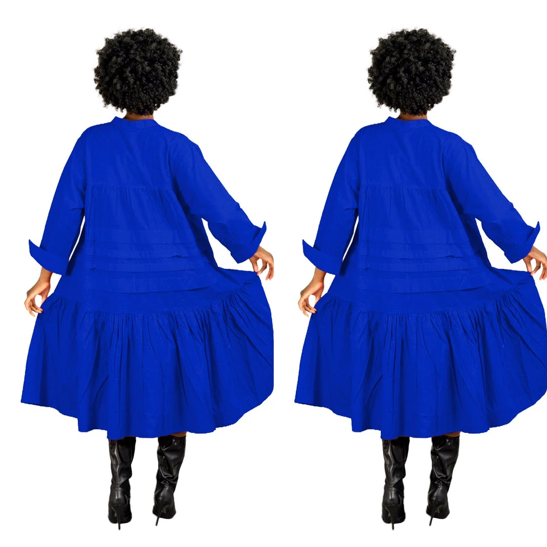 Plus Size Royal Blue Boho Style Below The Knee Dress