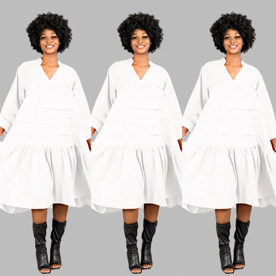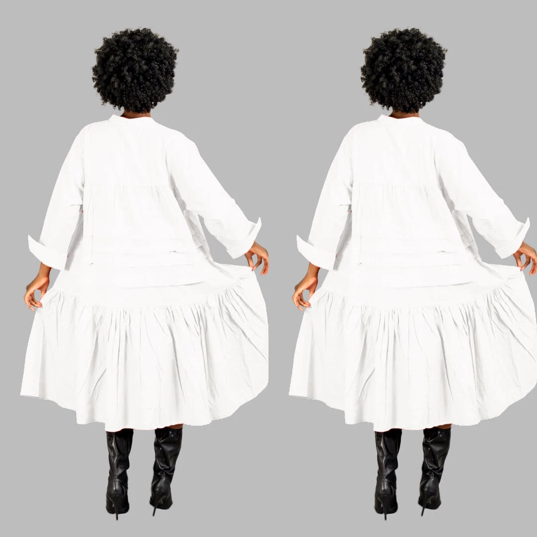 This dress is 45 inches long from shoulder to the bottom. This dress will surely drop below your knees. Perfect length for church and comfort will sitting and standing to get the leg coverage some of us desire. We do have this same dress in a shorter version that measures 37 inches long. The 37 inch dress top is more short babydoll style that is perfect for shorter or more petite women or for those who prefer the shorter babydoll look. Babydoll length could also be worn as a tunic top over leggings, pants or jeans. If you order this dress, you will get the LONGER 45 inches dress. Fabric is perfection and fantastic for year round wear. Need to dress up but you don’t want to fade into the crowd or be over dressed either? Then wearing this beautiful below the knee bohemian style dress will surely make you stand out and be seen while still being comfortable. While everyone is looking at you, you’ll be cool, comfortable and confident because this dress brings out your true effortless style. Wear with heels or sandals and you will be good to go. Dress is very generous in sizing and is designed to fit loose and full. Sleeves are wide long length with turn up French style cuff. V neckline is very flattering. Ships from Houston, Texas by Social Butterfly Collection.