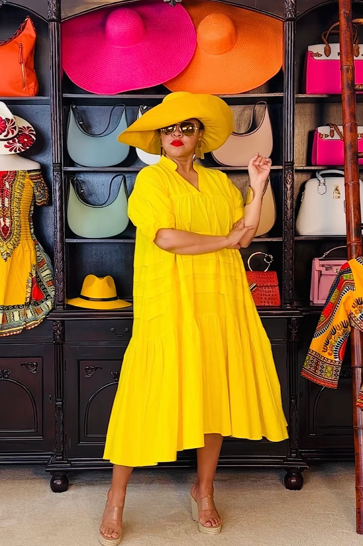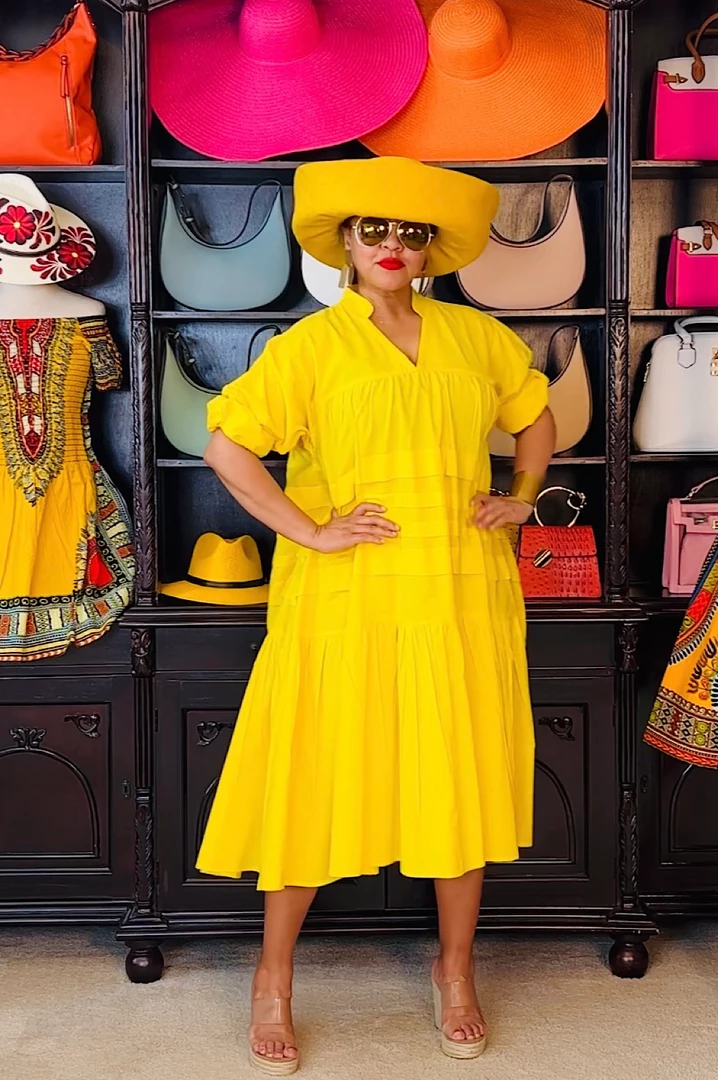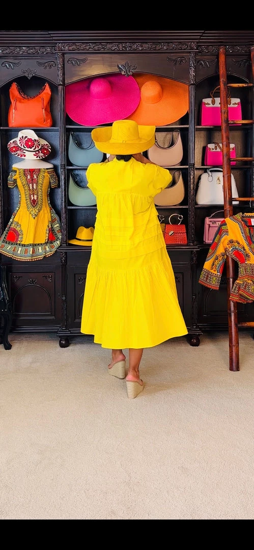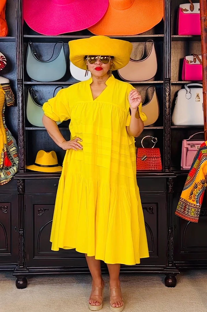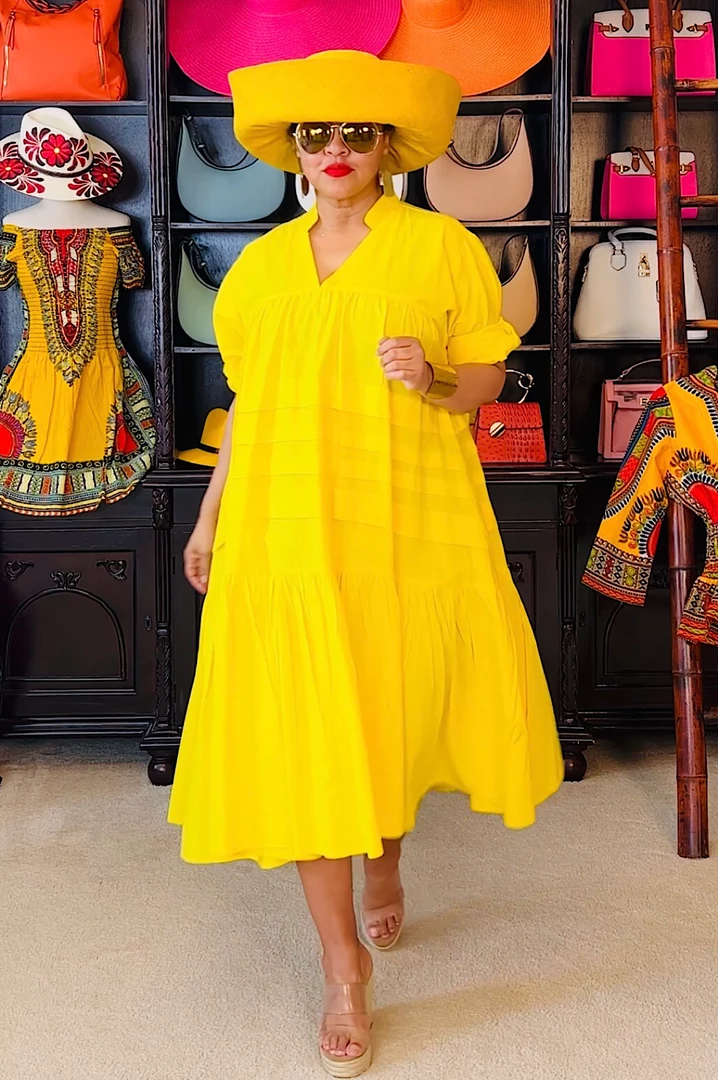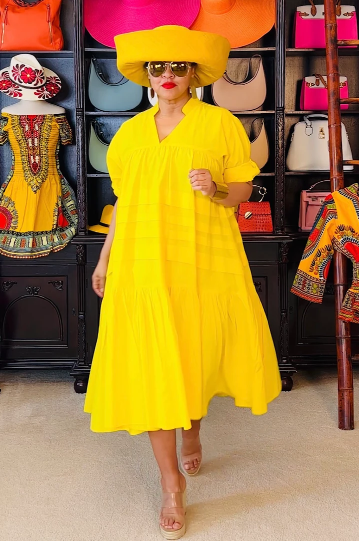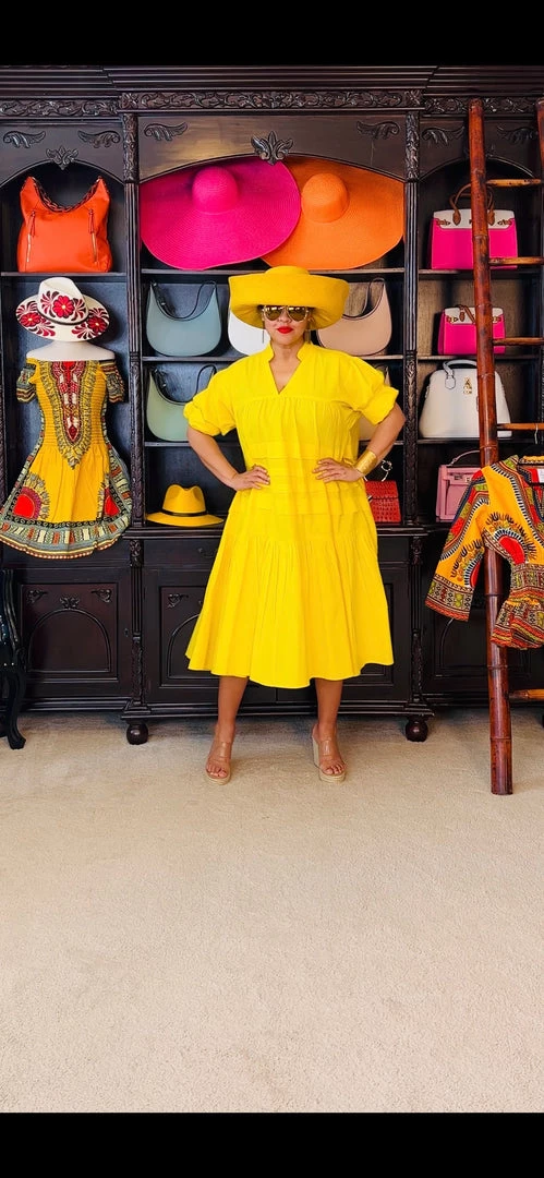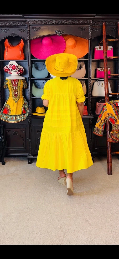 This dress is 48 inches long from shoulder to the bottom and is designed to fall below the knee. This dress will surely drop below your knees. Perfect length for church and comfort will sitting and standing to get the leg coverage some of us desire. We do have this same dress in a shorter version that measures 37 inches long. The 37 inch dress top is more short babydoll style that is perfect for shorter or more petite women or for those who prefer the shorter babydoll look. Babydoll length could also be worn as a tunic top over leggings, pants or jeans. If you order this dress, you will get the LONGER 45 inches dress. Fabric is perfection and fantastic for year round wear. Need to dress up but you don’t want to fade into the crowd or be over dressed either? Then wearing this beautiful below the knee bohemian style dress will surely make you stand out and be seen while still being comfortable. While everyone is looking at you, you’ll be cool, comfortable and confident because this dress brings out your true effortless style. Wear with heels or sandals and you will be good to go. Dress is very generous in sizing and is designed to fit loose and full. Sleeves are wide long length with turn up French style cuff. V neckline is very flattering. Dress is available in red, yellow, blue and white. Ships from Houston, Texas by Social Butterfly Collection.
