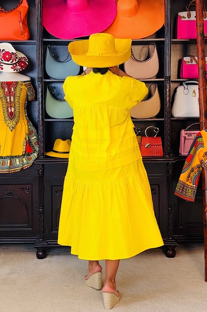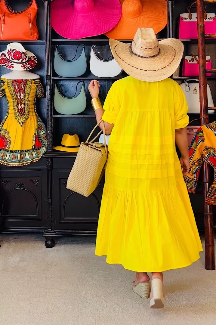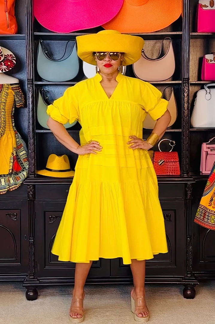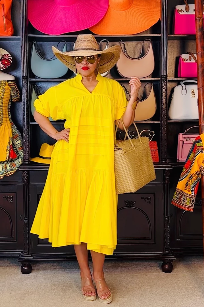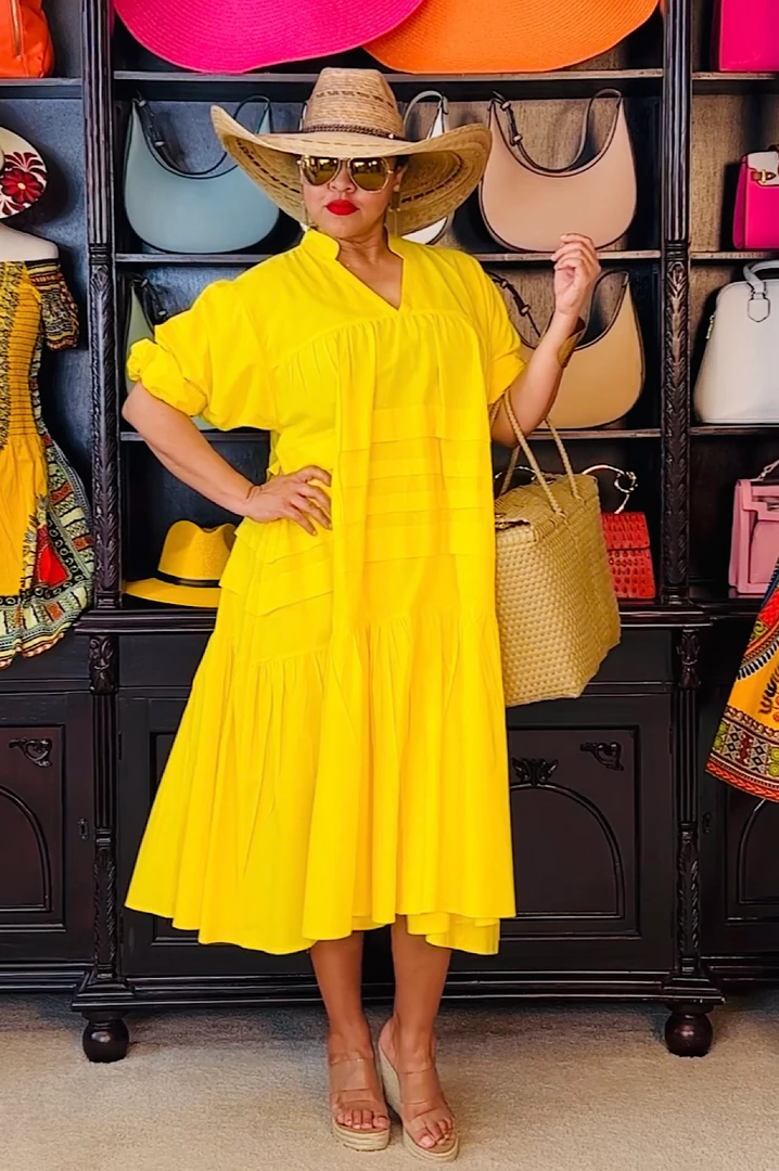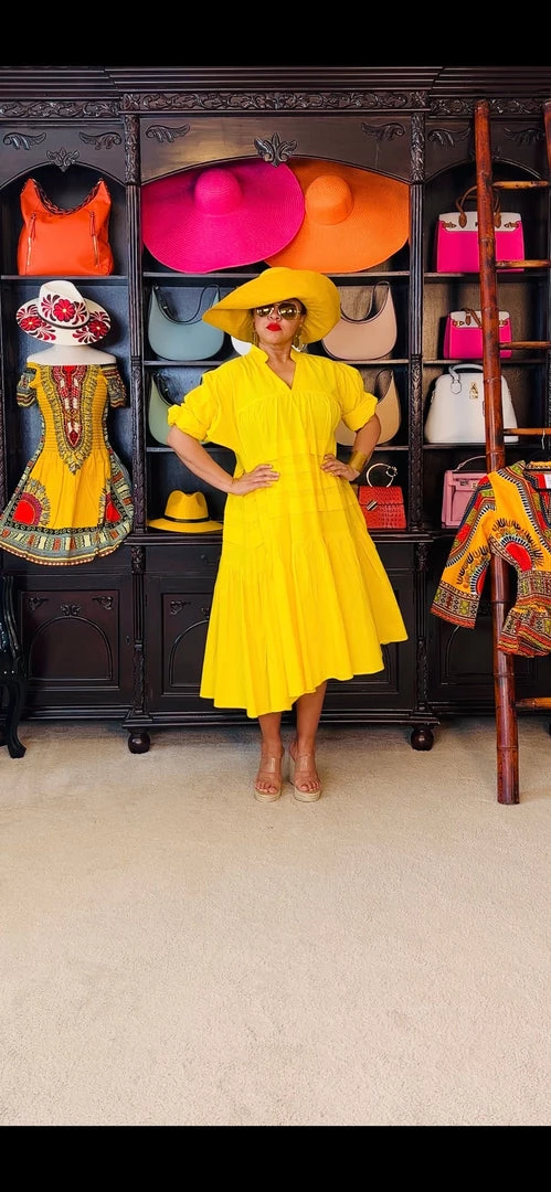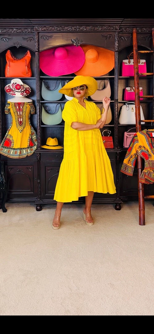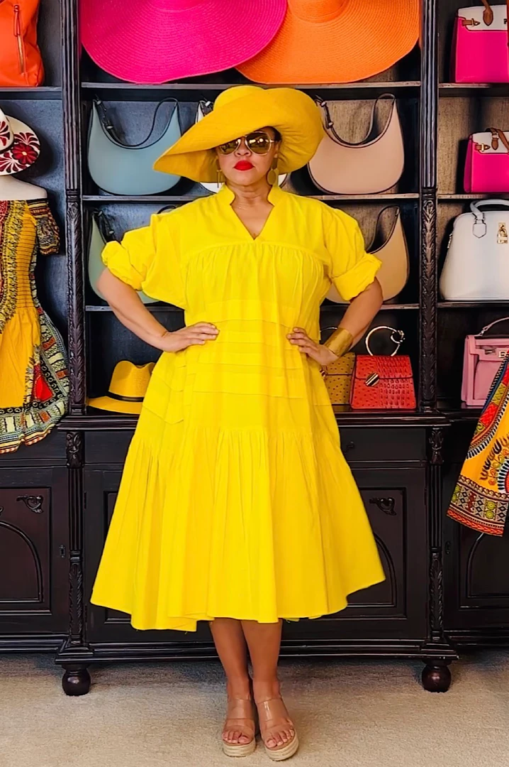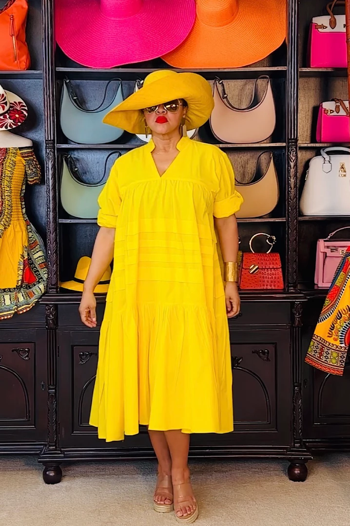 This dress is 48 inches long from shoulder to the bottom and is designed to fall below the knee. This dress will surely drop below your knees. Perfect length for church and comfort will sitting and standing to get the leg coverage some of us desire. We do have this same dress in a shorter version that measures 37 inches long. The 37 inch dress top is more short babydoll style that is perfect for shorter or more petite women or for those who prefer the shorter babydoll look. Babydoll length could also be worn as a tunic top over leggings, pants or jeans. If you order this dress, you will get the LONGER 45 inches dress. Fabric is perfection and fantastic for year round wear. Need to dress up but you don’t want to fade into the crowd or be over dressed either? Then wearing this beautiful below the knee bohemian style dress will surely make you stand out and be seen while still being comfortable. While everyone is looking at you, you’ll be cool, comfortable and confident because this dress brings out your true effortless style. Wear with heels or sandals and you will be good to go. Dress is very generous in sizing and is designed to fit loose and full. Sleeves are wide long length with turn up French style cuff. V neckline is very flattering. Dress is available in red, yellow, blue and white. Ships from Houston, Texas by Social Butterfly Collection.