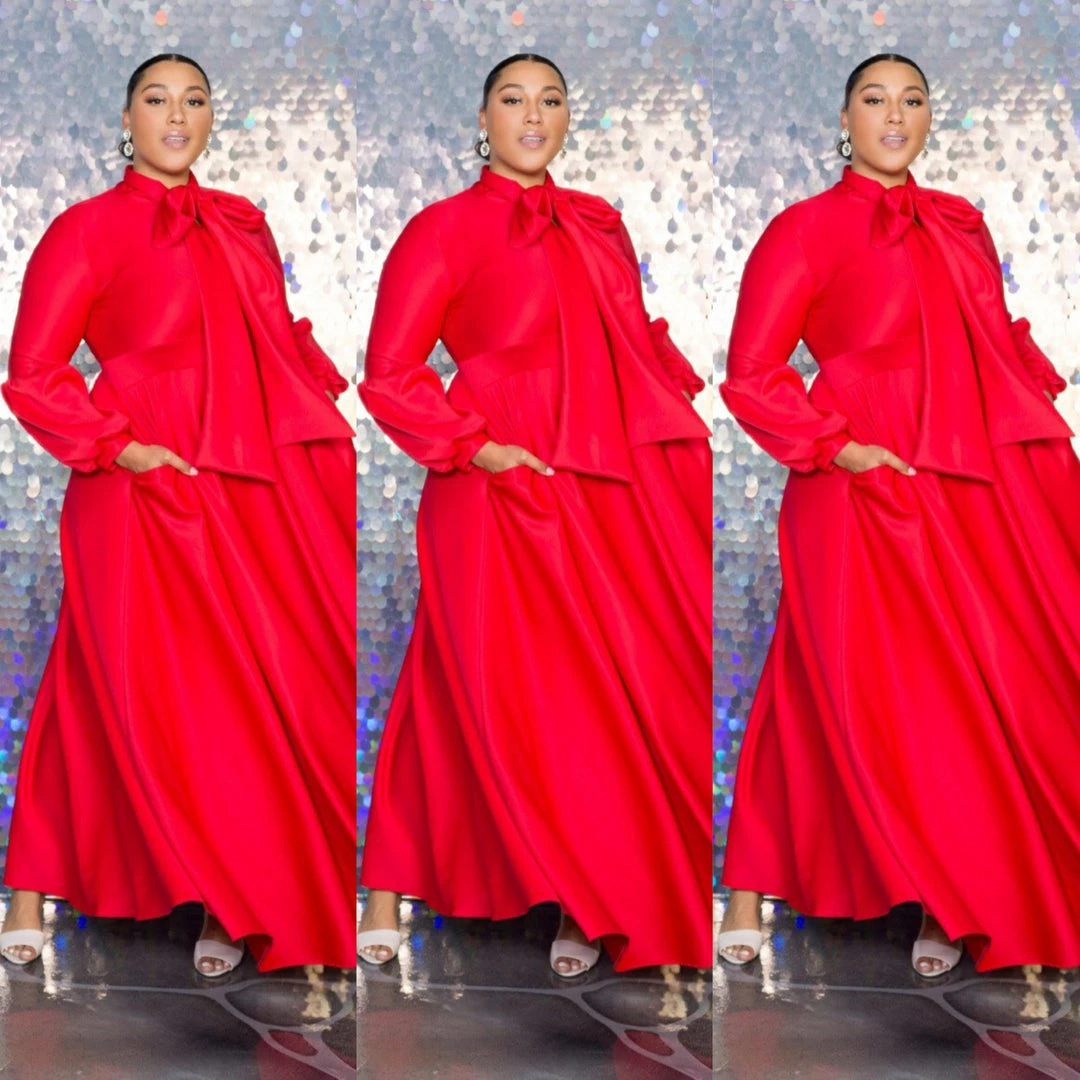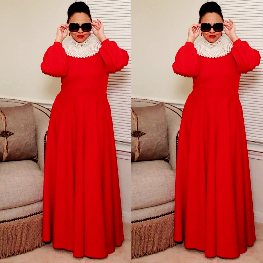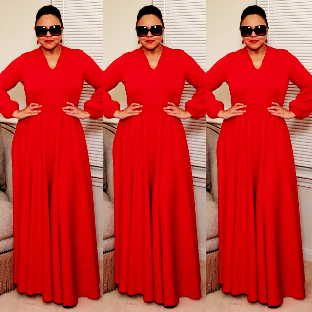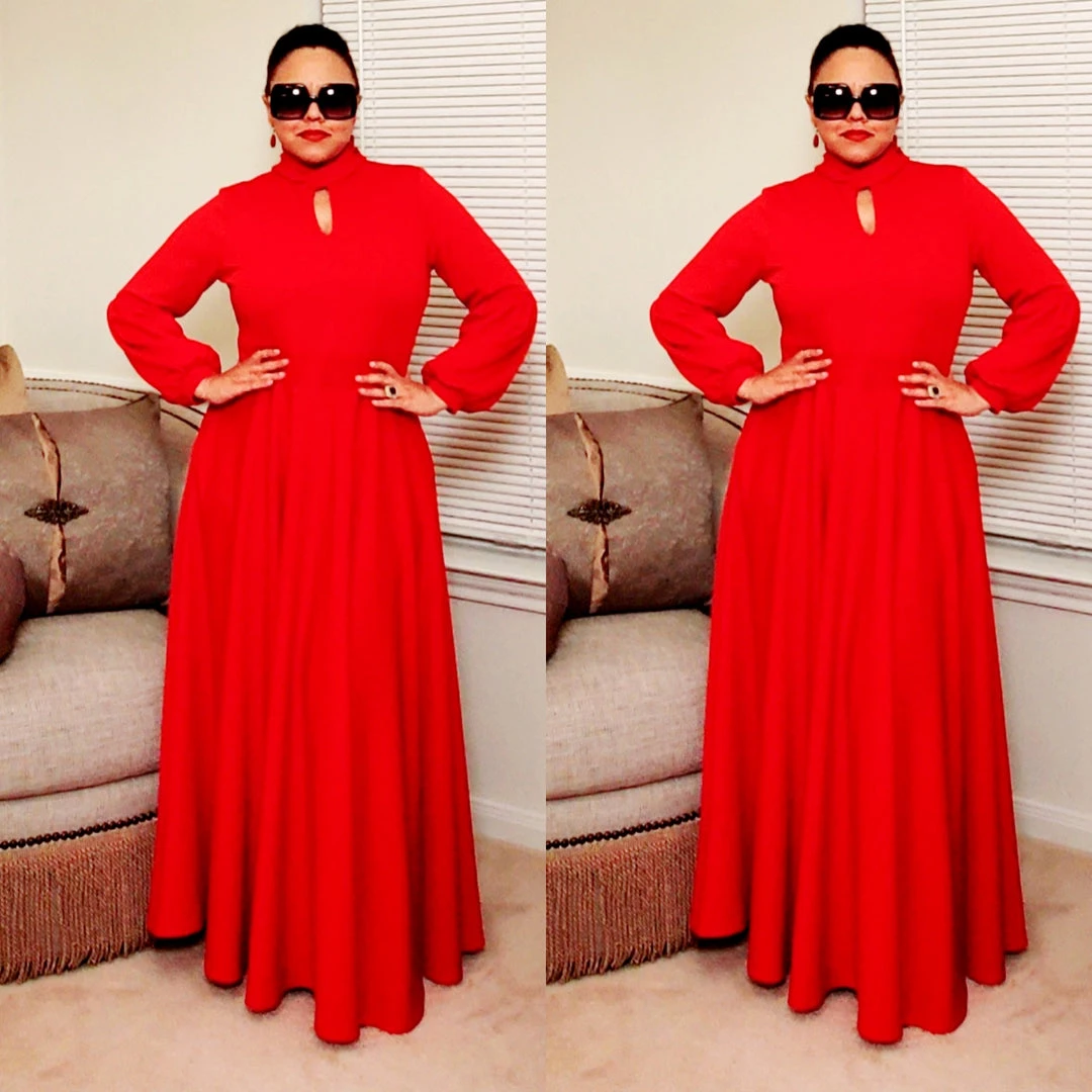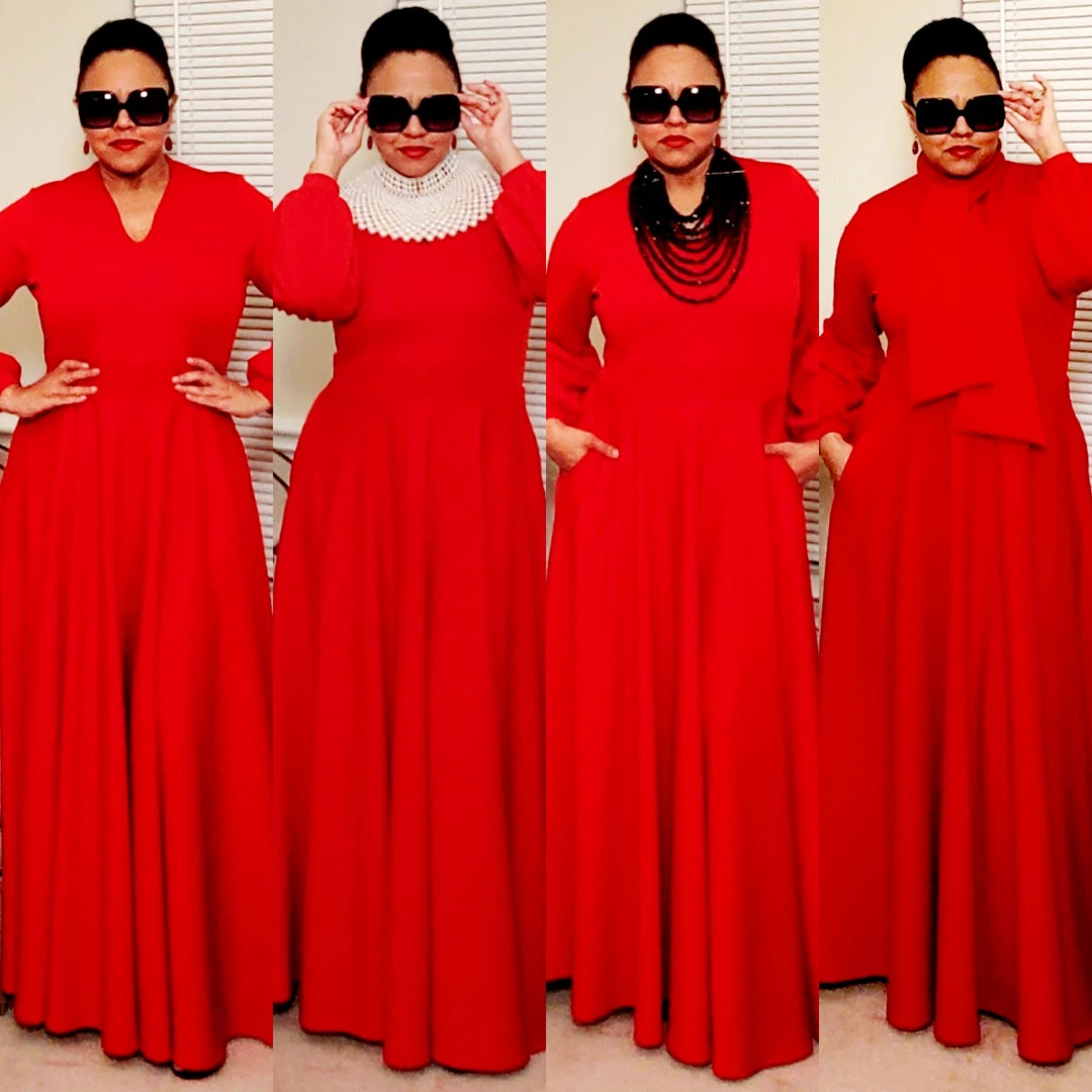 Dress can be worn with the necktie styled in various ways or if you prefer to wear without the necktie just simply fold the neckline inward to create a V Neckline. Please see photos of how we created a plain neckline. The necktie was simply folded and place inside the dress to hang loose inside and now with a simple neckline, you can add necklaces. We also created a simpler longer necktie as well as a shorter triple knotted necktie. Dress gives you versatility of how to wear the necktie area. This classic, high necktie style paired with the long, silhouette style gives you a modest and beautiful choice for your special occasion wear. The long, tapered tie on the front adds a touch of class, while the fit brings just the right amount of sophistication to this incredible dress. Dress runs true to size and the fabric is a stretchy blend of polyester and spandex. Perfect dress for a variety of events. Fabric is perfect medium weight and the dress has hidden side pockets. Bottom of the dress has plenty of room and is generous in sizing. Top of the dress is more fitted than the bottom, so when selecting size for this one, it would be best to choose size based on your top body size or bust and arms. Material does have stretch. If you are top heavy and need more room for your arms, stomach or bust then we suggest going up a size but other than that the dress is true to size and fits well. We suggest going up a size only if you want more room in the stomach, arm or bust section. The bottom of the dress is very loose. Ships from Houston, Texas by Social Butterfly Collection.