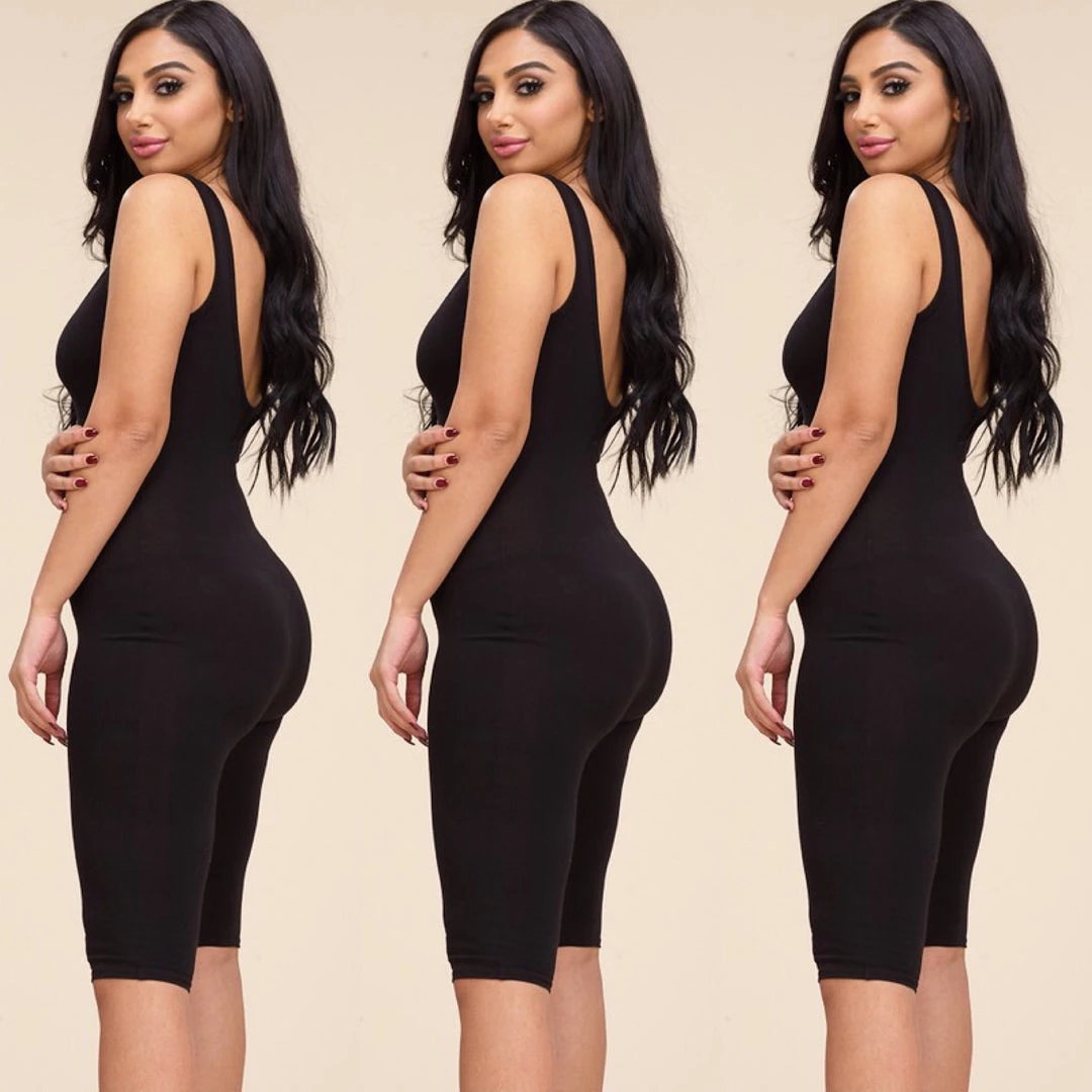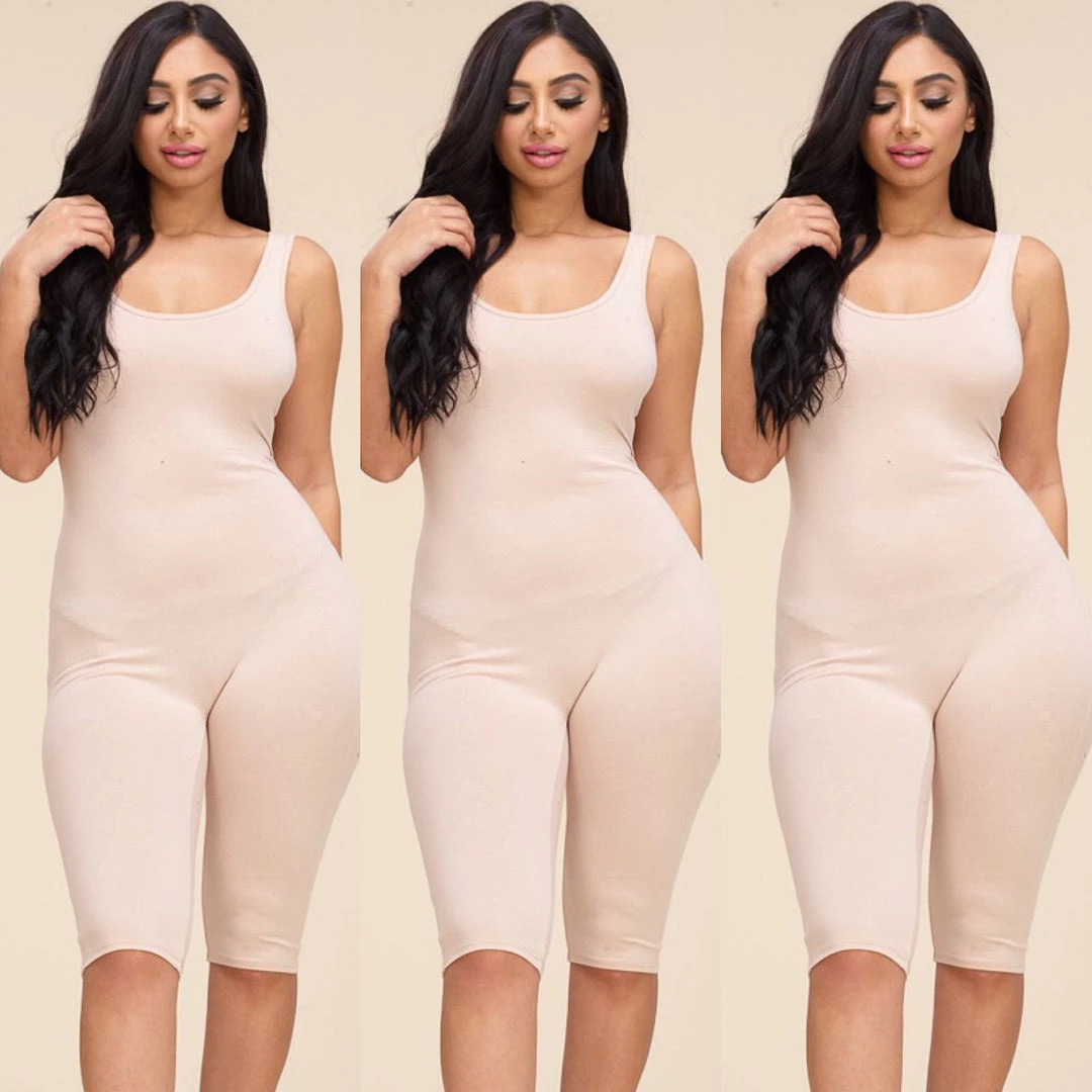 Perfect little catsuit to wear under dresses or tunics especially lighter fabrics to use the jumpsuit underneath for coverage and smoothness. Jumpsuit looks great with a wide variety of outfits from dresses to all kinds of tops, duster jackets or wear alone. Go ahead and pair this with almost any top or dress in your closet for cool, comfy casual look. We also suggest using the jumpsuit to wear under sheer or slightly see through dresses. I personally wear like spanxs but with less tightness and discomfort. Jumpsuit has spandex for stretch and light control. Cotton fabric that is soft, cool and comfortable. This is a great item to have if you need smoothness under your clothing. Ships from Houston, Texas by Social Butterfly Collection.