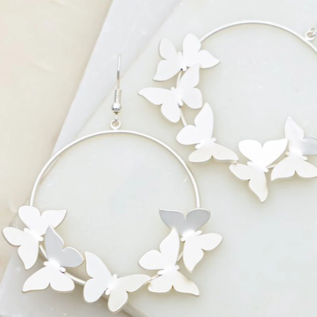 Social Butterfly Collection Sale Silver Hoop Butterfly Earrings