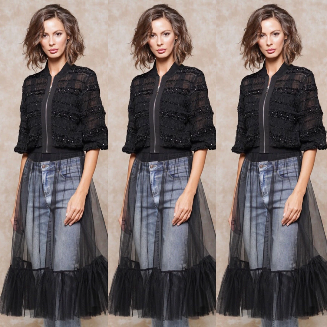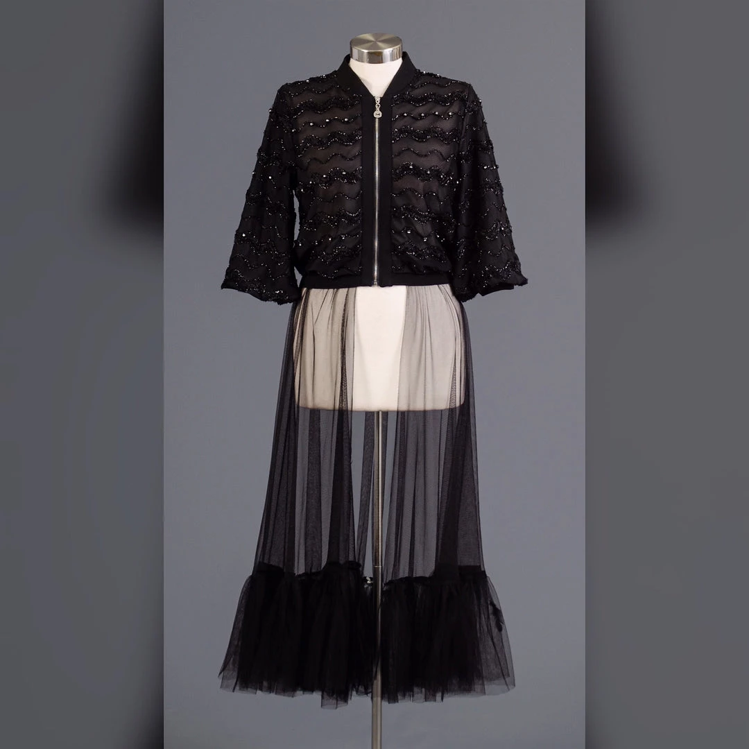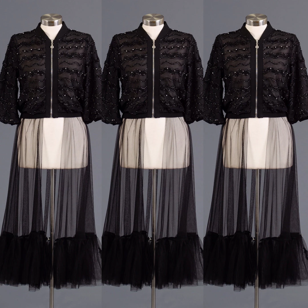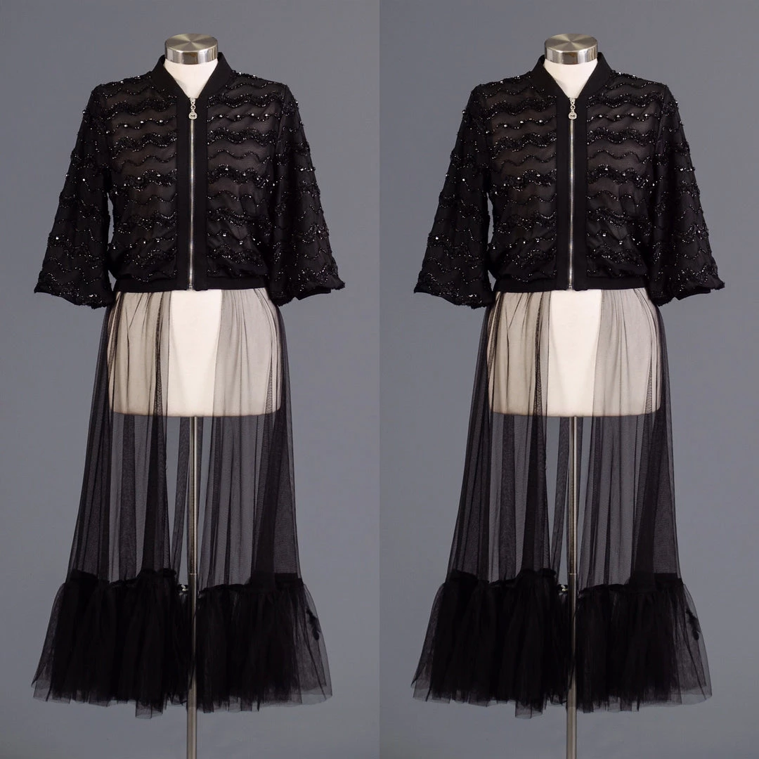 Sheer Black Front Zipper Dress Top