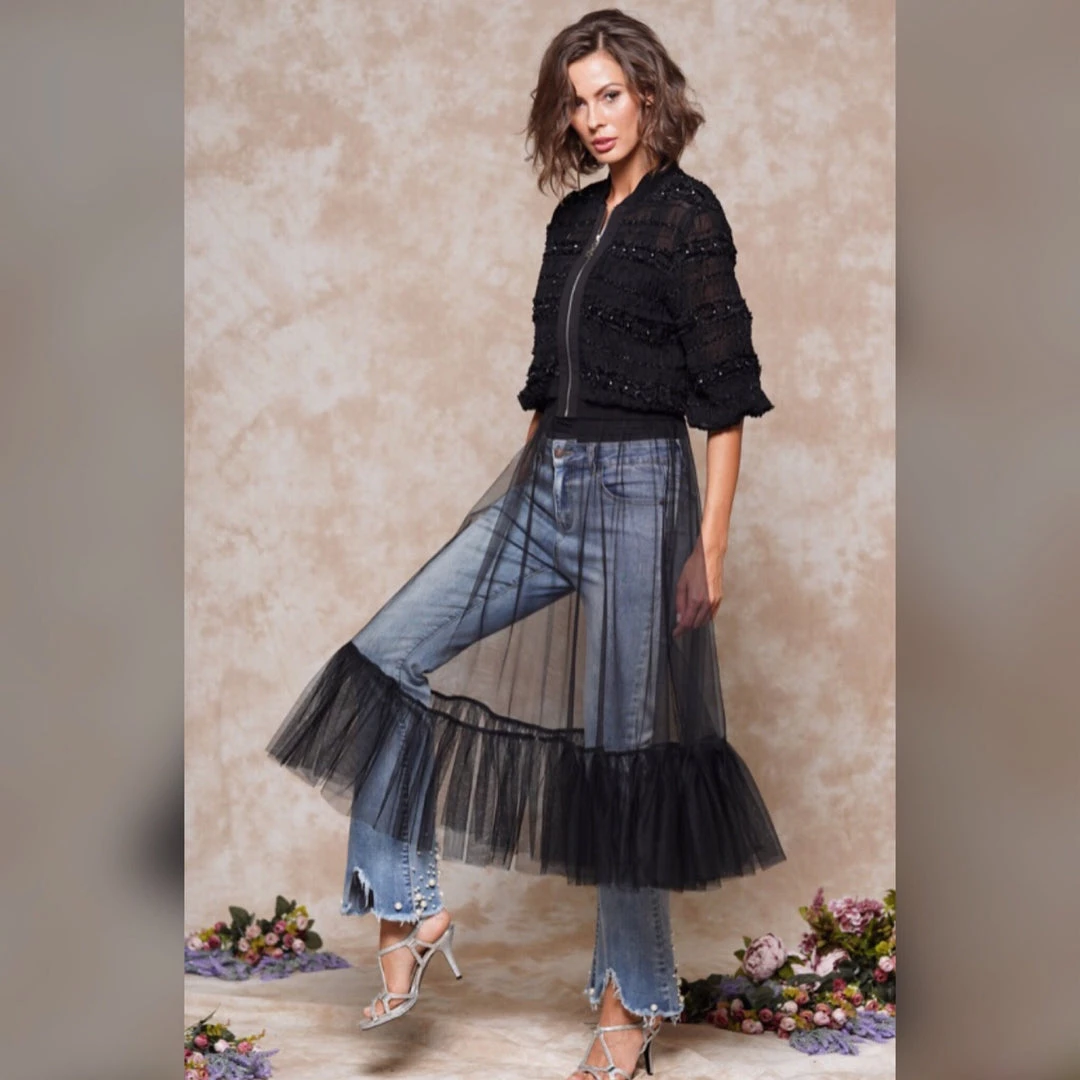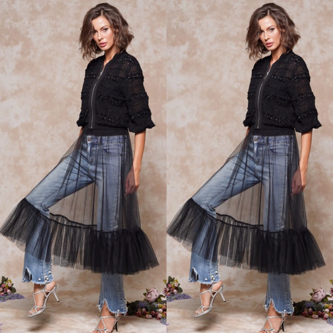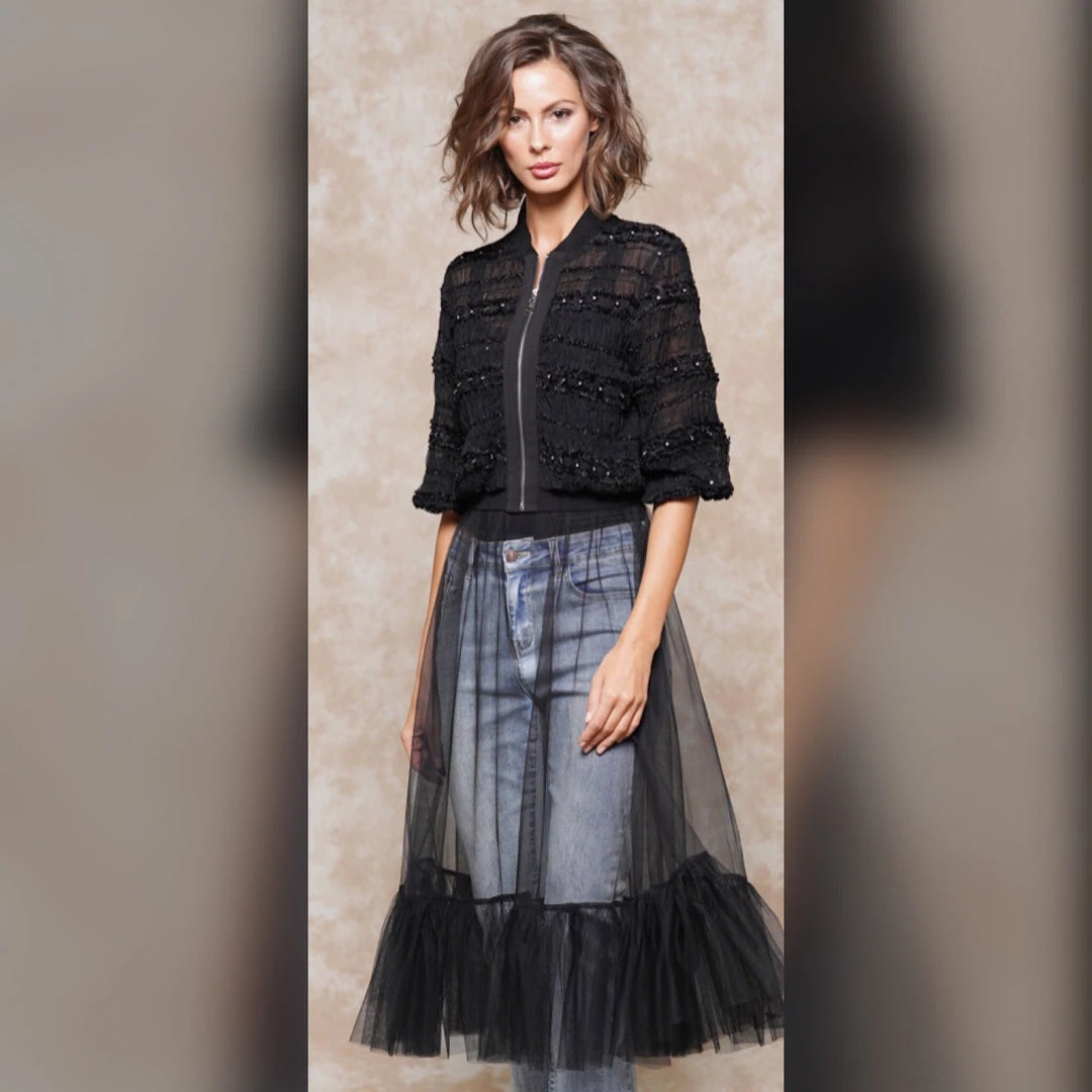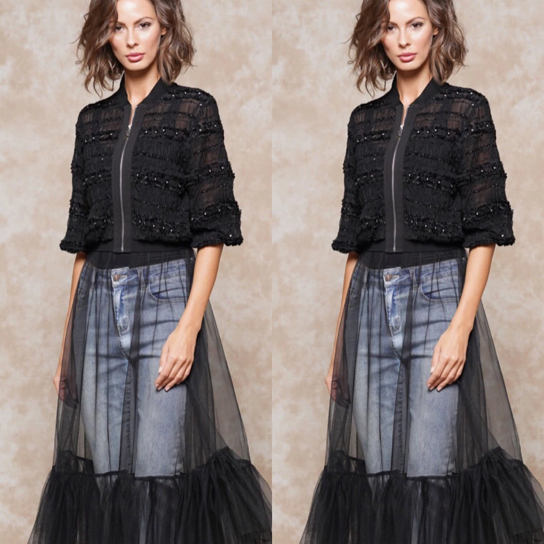 Sheer Black Front Zipper Dress Top