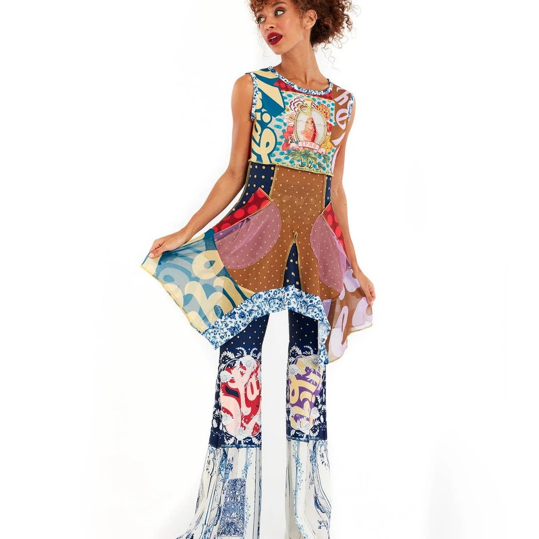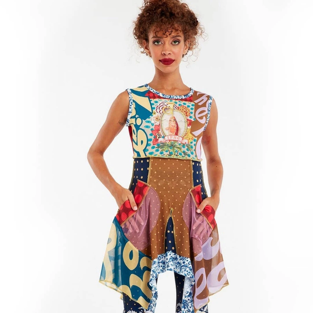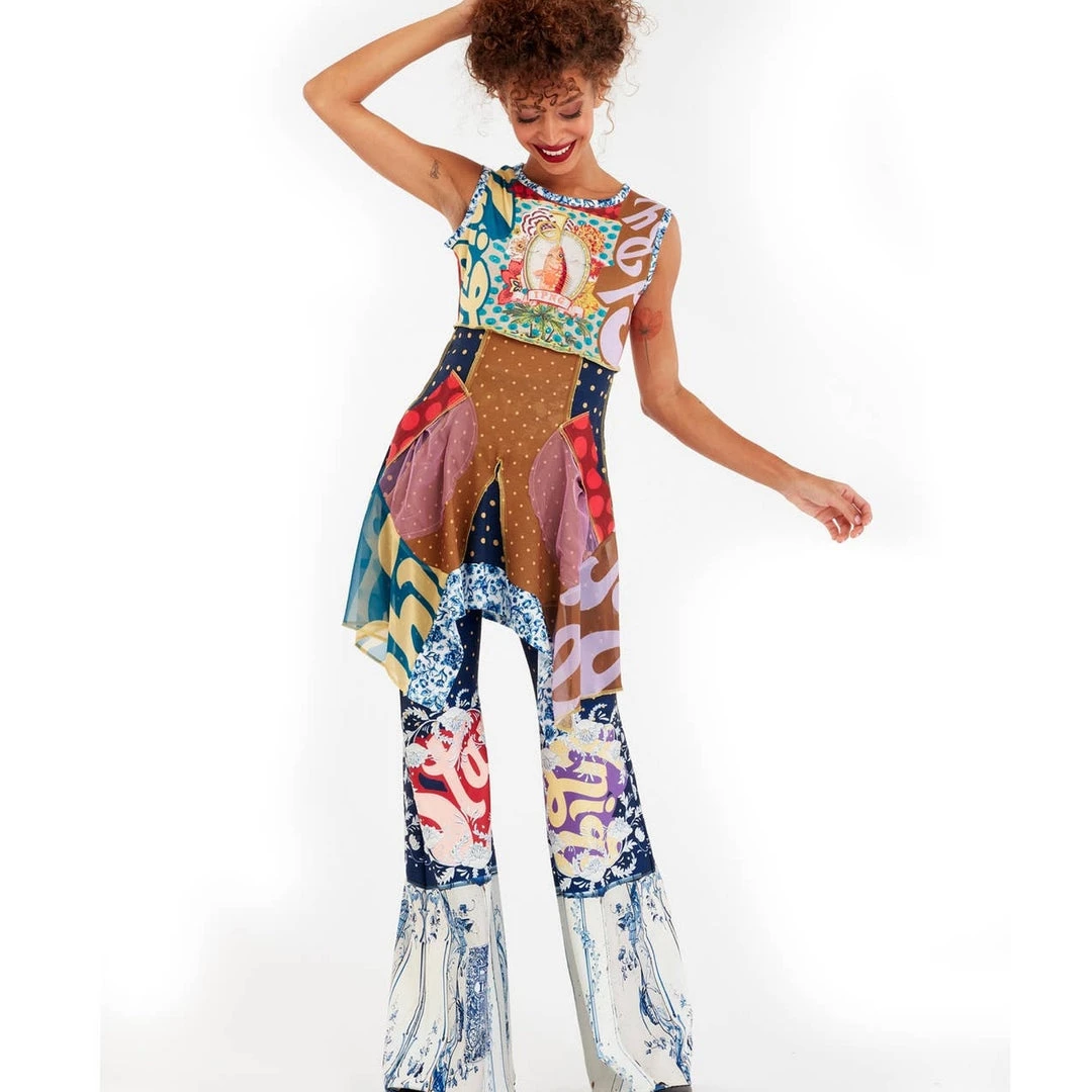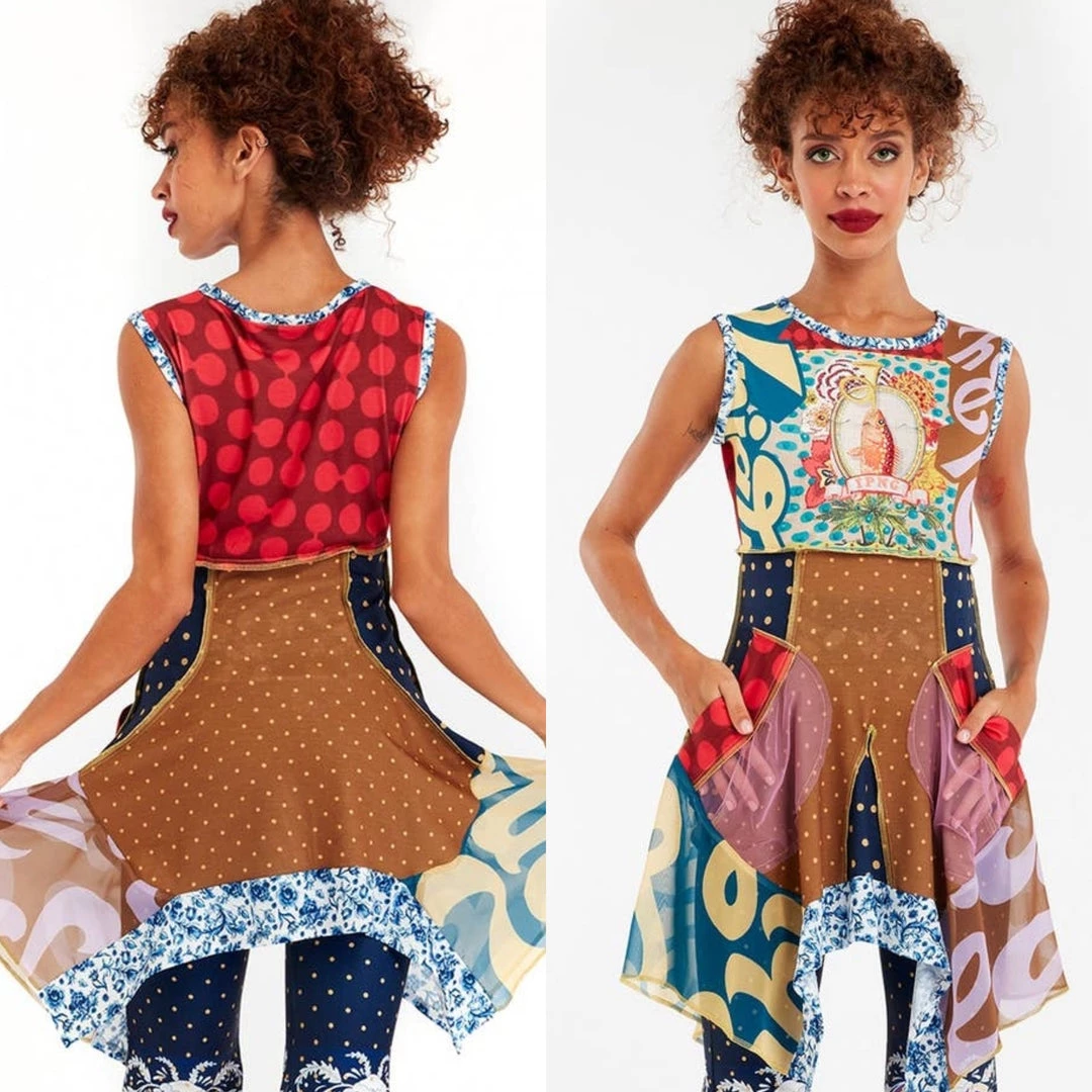 The Art of Fashion Collection. Loose fit crop top with art color block tiles and prints. Luxuriously whimsical fashion focused on expression and comfort. A fresh eccentric collection for women who like to express themselves through the art of fashion. Figure flattering pieces of art made with quality fabrics and innovative techniques. Garments are truly luxurious and high quality. Comfort wear that redefines the high end fashion options for today’s eclectic woman. Providing story telling looks that inspire confidence and independence. These are comfortable conversation pieces. True to size and fabric has spandex with plenty of stretch. THESE ARE NOT SETS. ALL PIECES ARE SOLD SEPARATELY. All pieces from The Art of Fashion Collection can be worn or paired together. Handmade in the USA. Ships from Houston, Texas by Social Butterfly Collection.