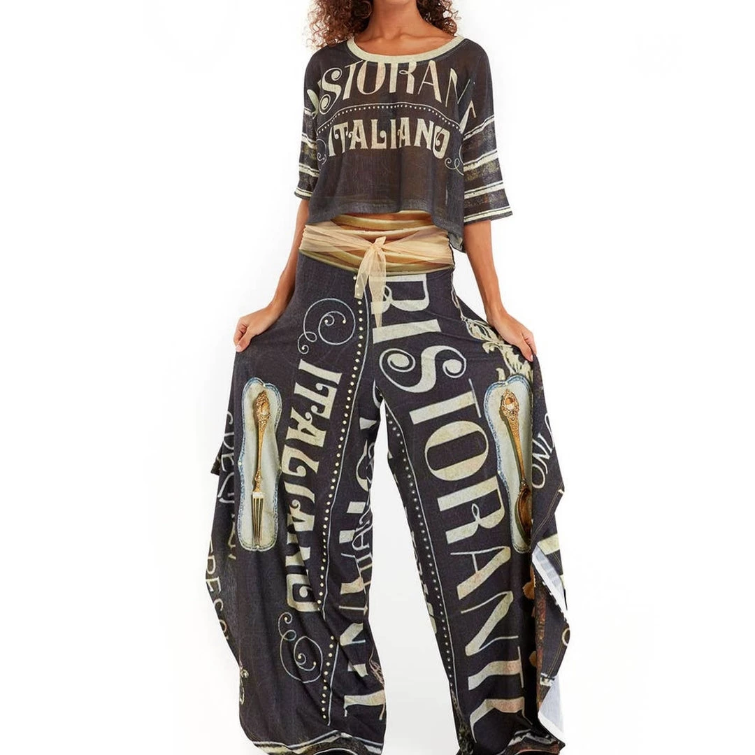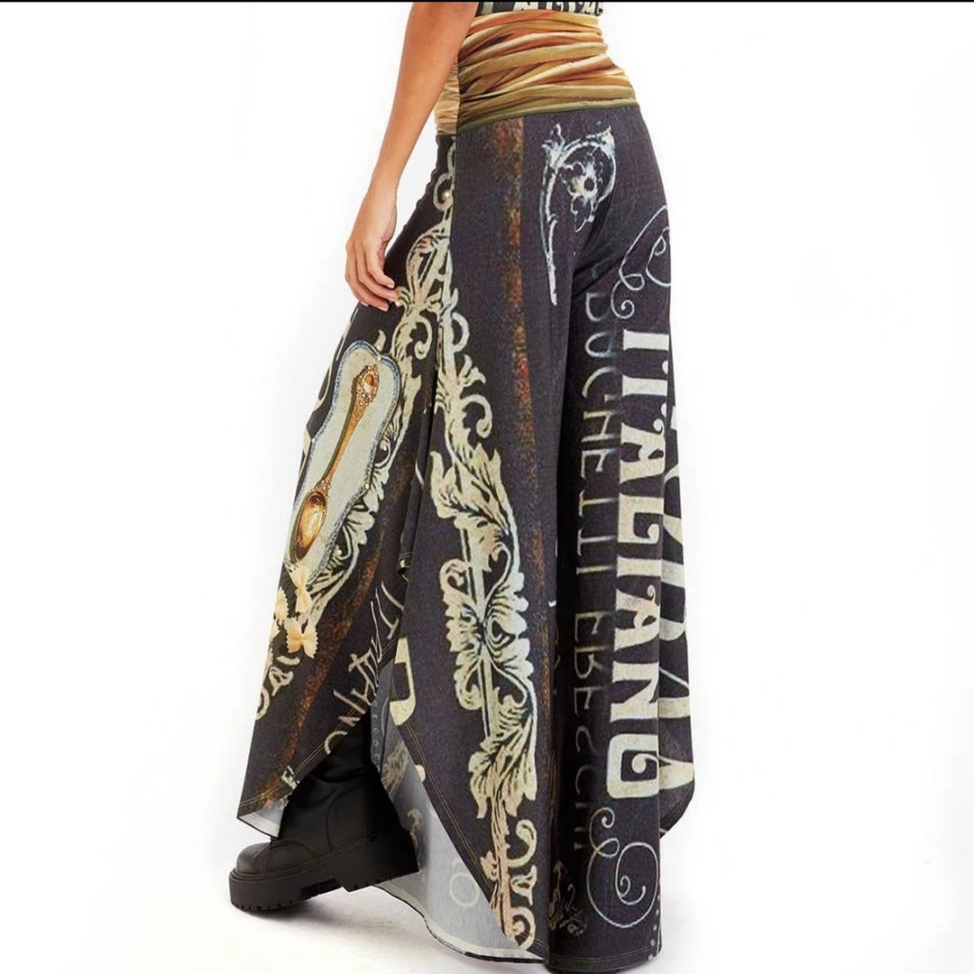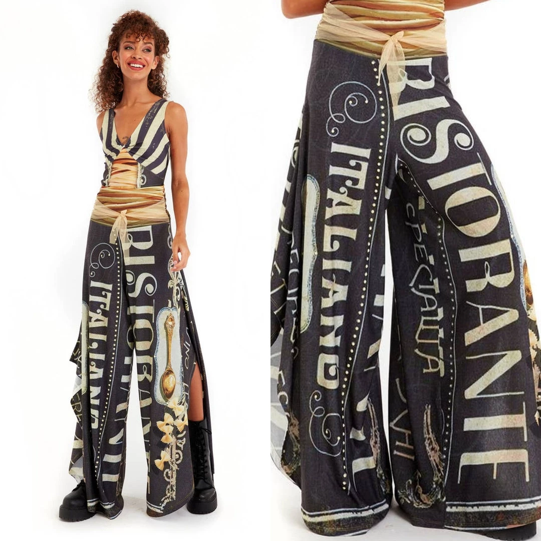 The Art of Fashion Collection. Hi rise palazzo wide leg pants offer smooth sleek look and feel. Pants are very long with a 33 inch inseam and measure 45 inches long. Long chic look and the material moves beautifully when you walk.