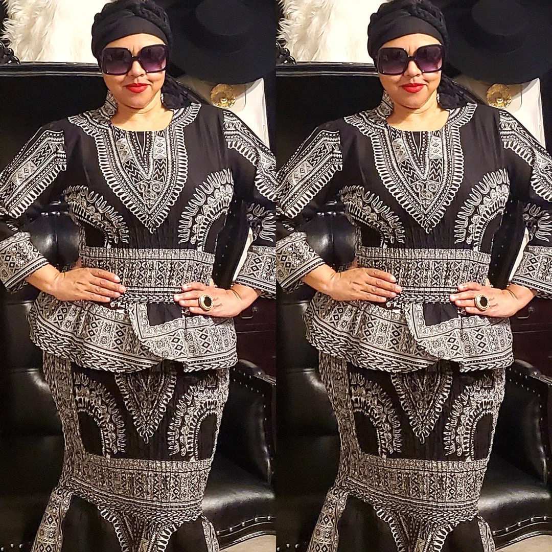 Social Butterfly Collection Two Piece Black White Dashiki Print Set