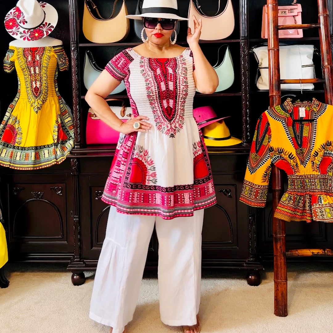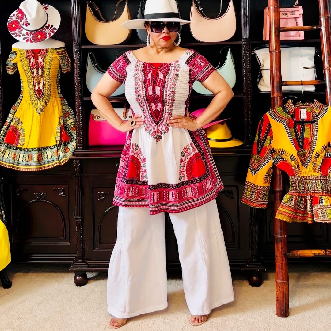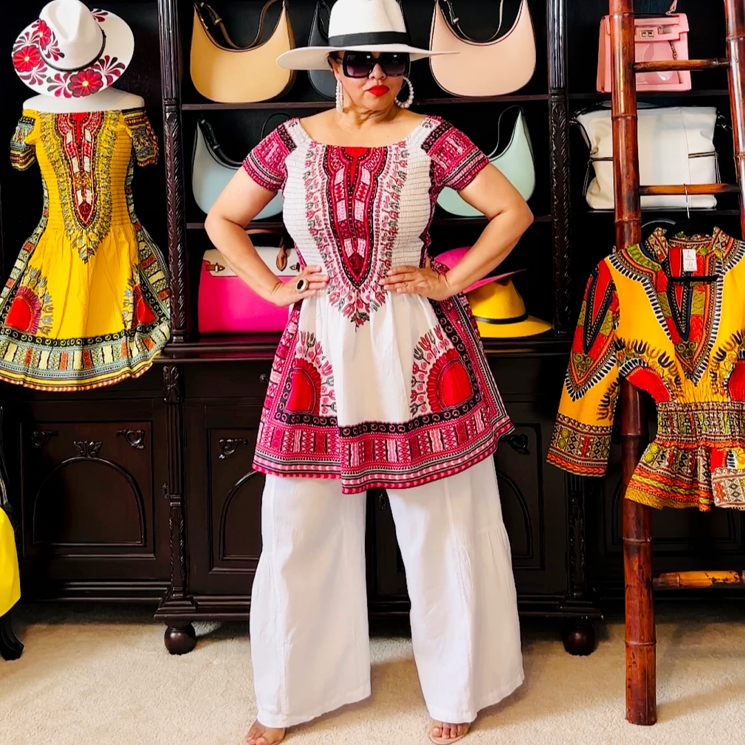 You ask for it! Now expand your wardrobe to include beautiful long flowing 100% linen palazzo pants. Pants are great fabric weight and will flow and move with you when you walk. Wide leg pants are 41 inches long and inseam is 28 inches. Waistband has plenty of elastic and will stretch out a lot. No need to worry about if it will fit your stomach area because it will the elastic in the wait is super stretchy. Now the fabric itself is not stretchy. There is no spandex in the fabric because it is all linen but the linen does give a little as you wear it. Sort of like jeans like when you wear jeans, they get looser the longer you wear them. Pants fit very true to size and are designed to fit loose and flowing. Model is 5 feet 6 inches tall with a 3 inch heel on. Model is wearing size 12-14 which equals a size large. Models hips are 47 inches and 12-14 fits perfectly. Hat and dress top sold separately. Ships from Houston, Texas by Social Butterfly Collection.