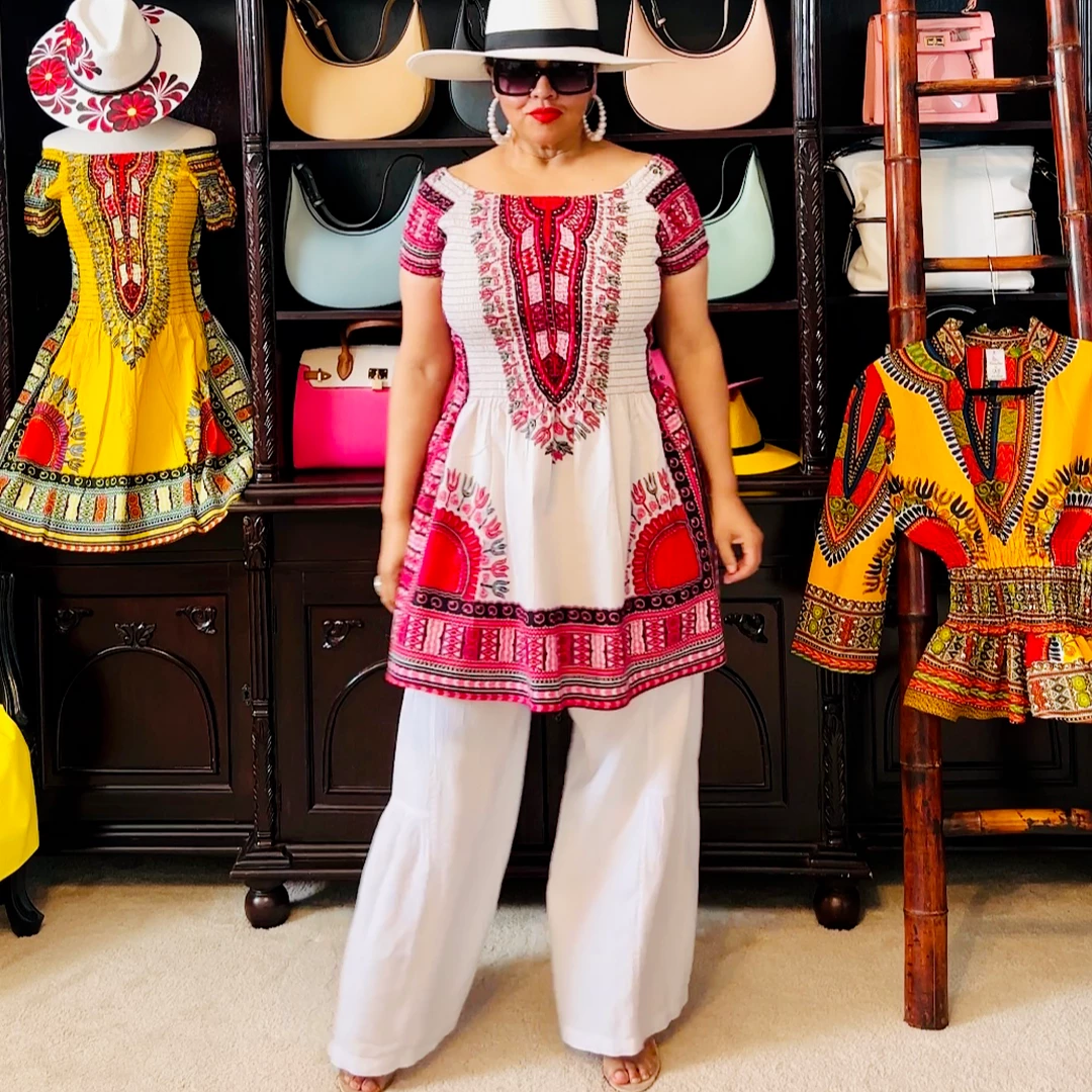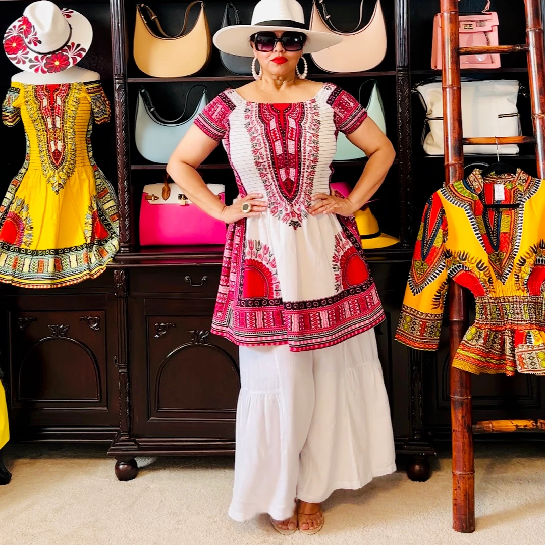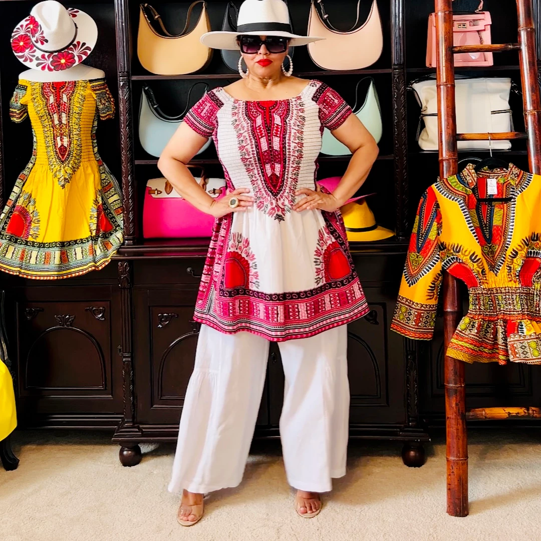 You ask for it! Now expand your wardrobe to include beautiful long flowing 100% linen palazzo pants. Pants are great fabric weight and will flow and move with you when you walk. Wide leg pants are 41 inches long and inseam is 28 inches. Waistband has plenty of elastic and will stretch out a lot. No need to worry about if it will fit your stomach area because it will the elastic in the wait is super stretchy. Now the fabric itself is not stretchy. There is no spandex in the fabric because it is all linen but the linen does give a little as you wear it. Sort of like jeans like when you wear jeans, they get looser the longer you wear them. Pants fit very true to size and are designed to fit loose and flowing. Model is 5 feet 6 inches tall with a 3 inch heel on. Model is wearing size 12-14 which equals a size large. Models hips are 47 inches and 12-14 fits perfectly. Hat and dress top sold separately. Ships from Houston, Texas by Social Butterfly Collection.
