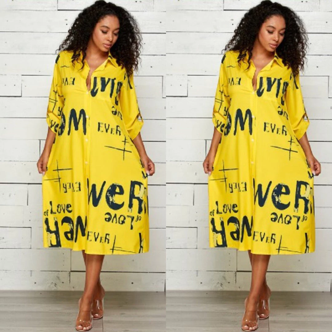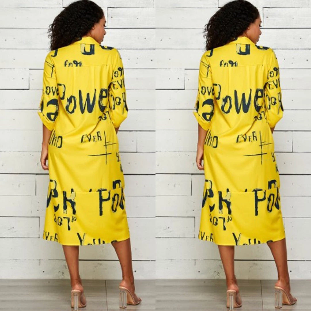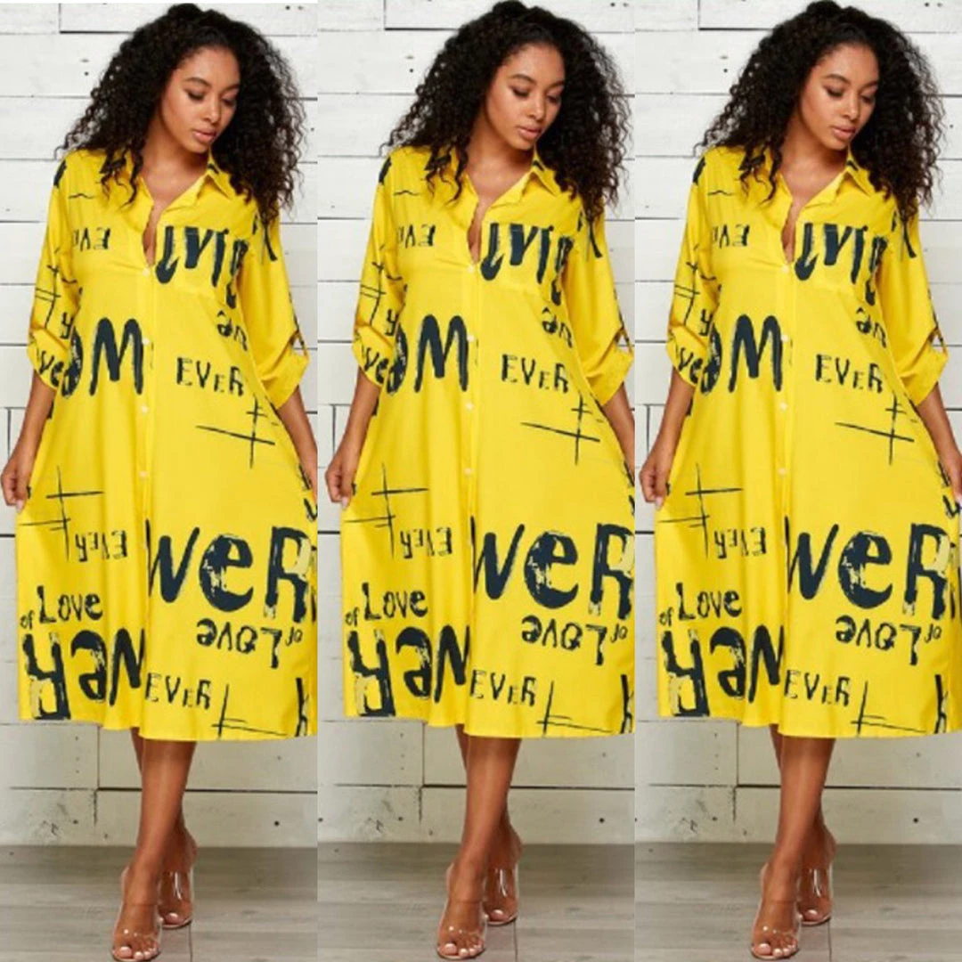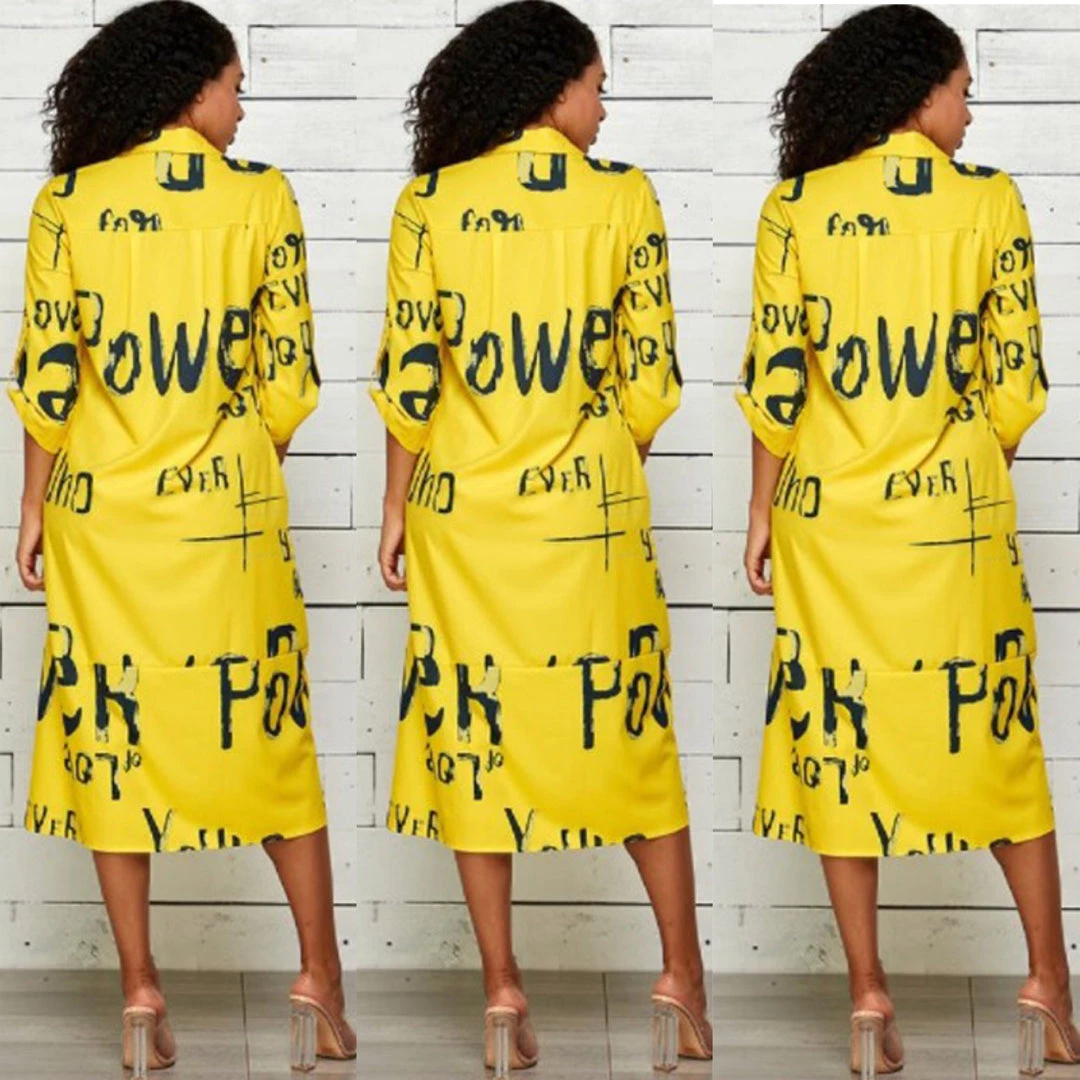 Reads Forever Love. Forever Power. Pack this little number whenever you travel or perfect for a brunch date with the ladies. Dress is super cute and comfy and has side pockets. Yellow Black Print button down shirt dress with longer below the knee hemline. Fabric is a soft cotton like with a hint of spandex for slight stretch. Sleeves are long and are shown folded or rolled up in the photos. Button down style with beautiful yellow color and black print. Weight of the fabric is simply perfect. You will not be disappointed. Perfect to wear year round in all seasons. Ships from Houston, Texas by Social Butterfly Collection.