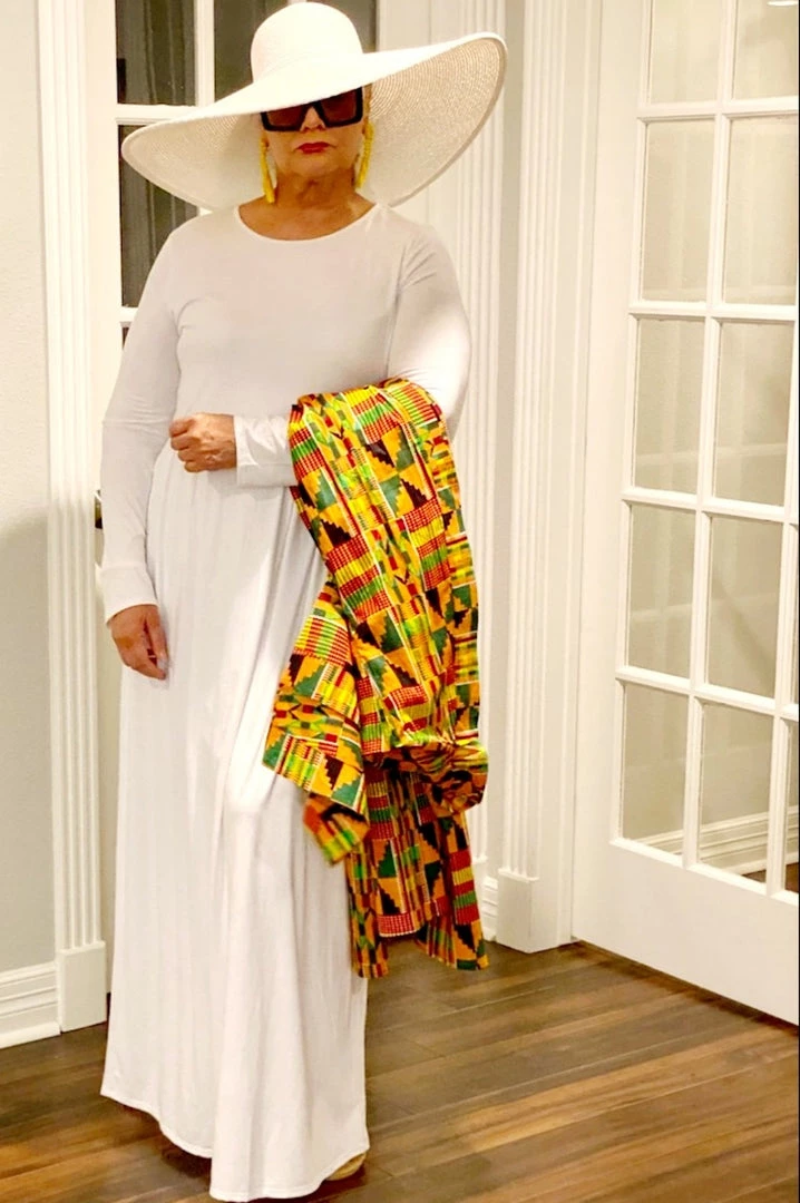 True kimono style wide sleeves. Lightweight cotton duster with colorful detailing. Sleeves are very wide kimono style. Perfect cover up to go with a wide variety of other pieces like jeans or strapless jumpsuits. Looks great free flowing or maybe cinch in your waist with one of our kimono style wrap belts. Fabric is super soft and packable that would also be perfect for traveling to take on vacation or a cruise. Kimono is very long would work perfectly for taller ladies also the sizing is very generous. Would be a little much or maybe too much material for petite or shorter person. Model is 5 feet 8 inches tall and she wears size xlarge. Kimono Duster only. White dress and white hat sold separately. Ships from Houston Texas by Social Butterfly Collection.