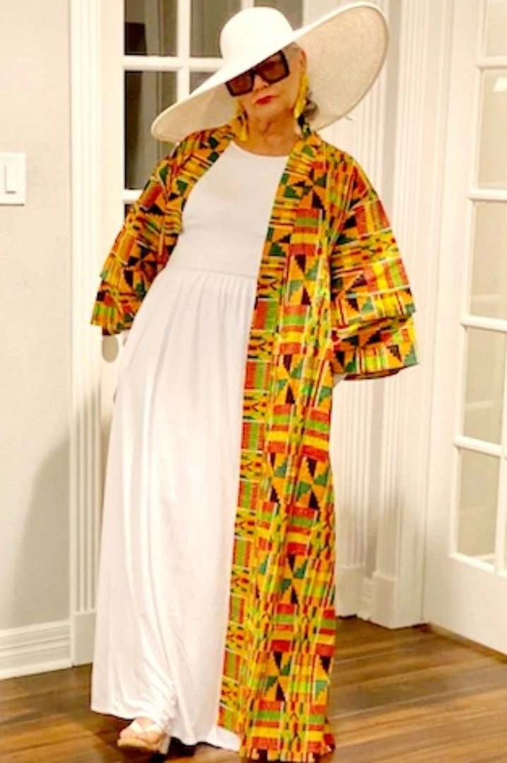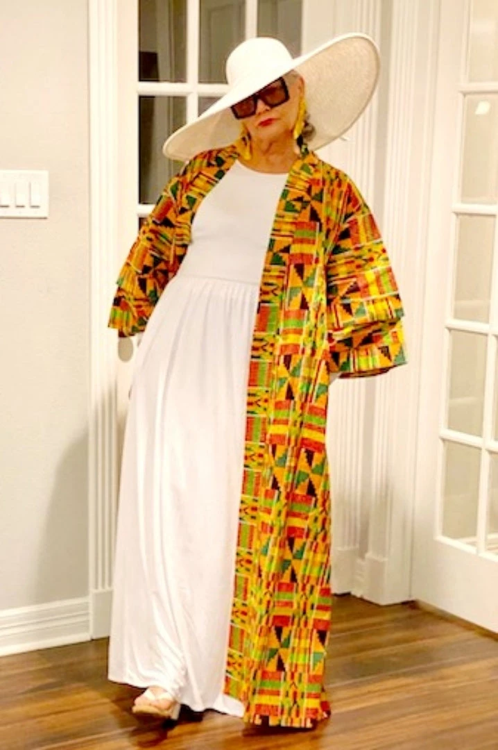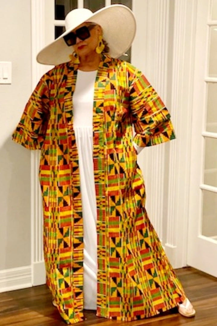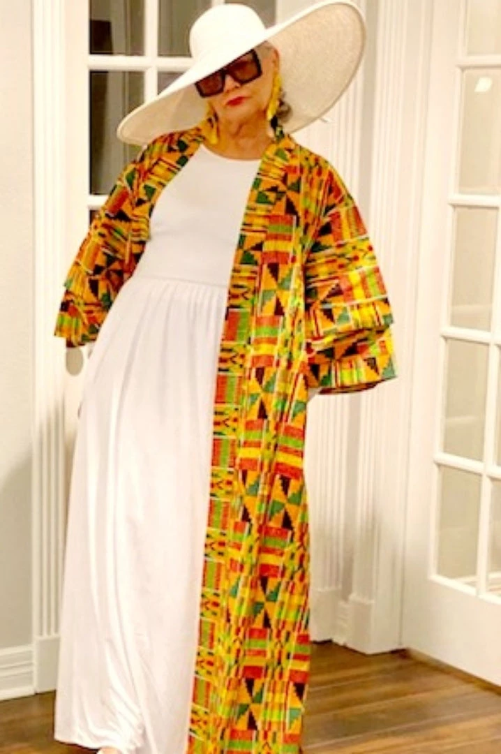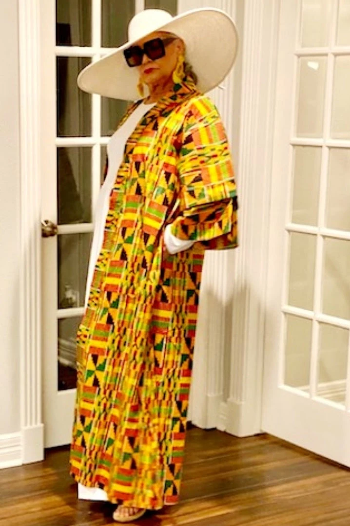 Social Butterfly Collection Yellow Orange African Print Kimono Duster